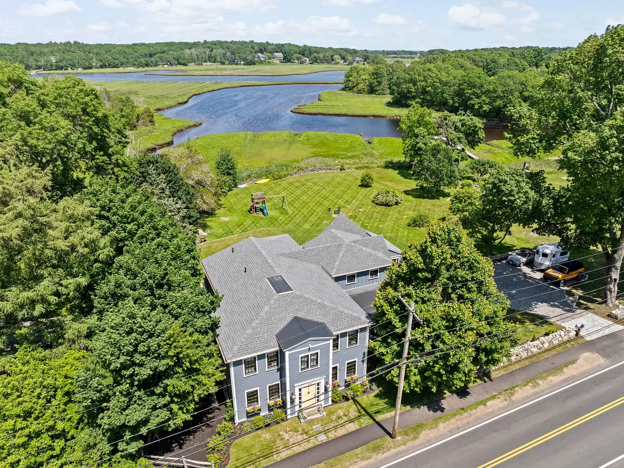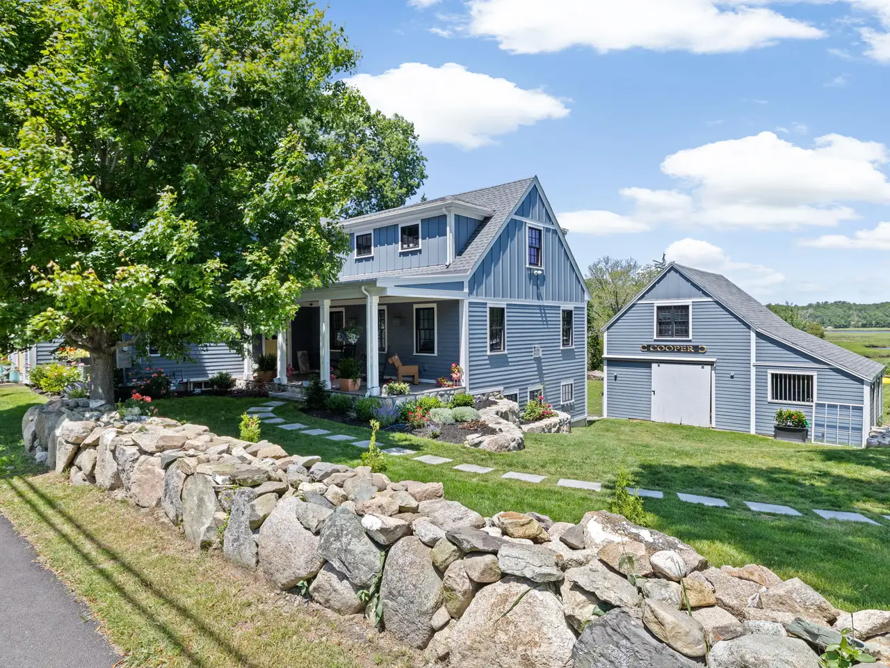 Absolute perfection on 1.55 acres with Gulph River views and direct water access. This custom home underwent a meticulous renovation blending original charm with modern luxury. Offering 5,700 sq. ft. of refined living, walls of glass frame the estuary and sunlit spaces invite entertaining. The chef’s kitchen features Viking appliances, leathered quartzite, butler’s pantry, fireplaced family room, and French doors to a waterside deck. The primary suite boasts a walk-in closet, spa bath, and private balcony. Three ensuite bedrooms complete the second floor. The lower level offers a gym, office, rec room, bedroom, full bath, patio, and sweeping lawn with pool and dock potential—just minutes to Cohasset Village.