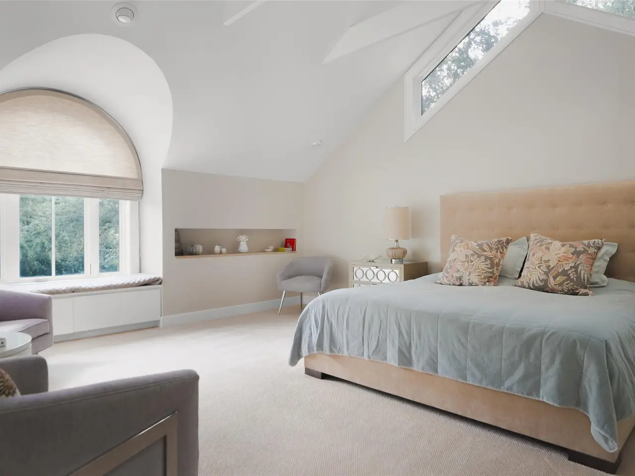 • Floor-to-ceiling glass with panoramic pool and lake views
