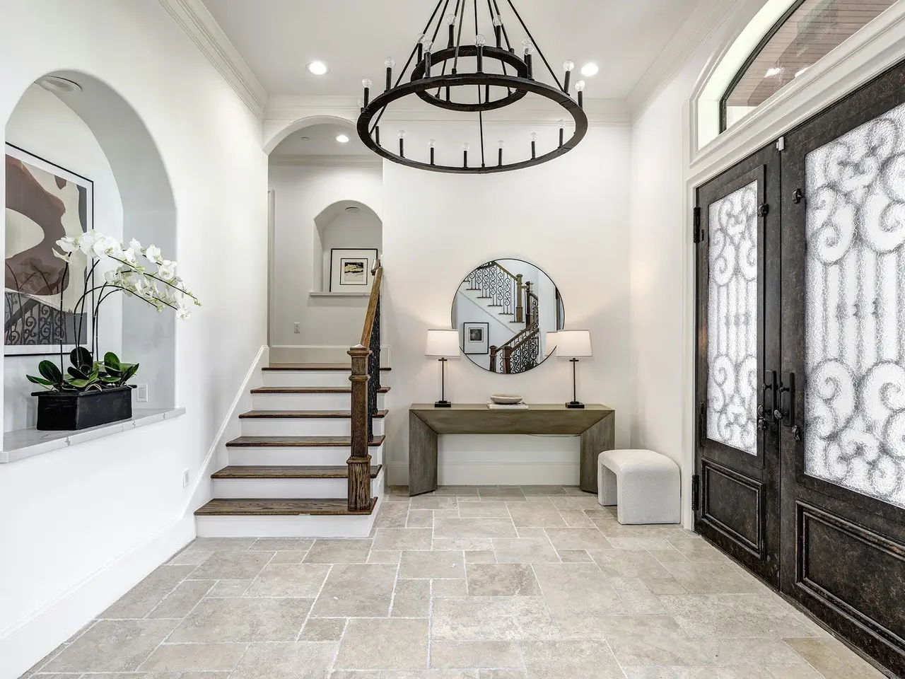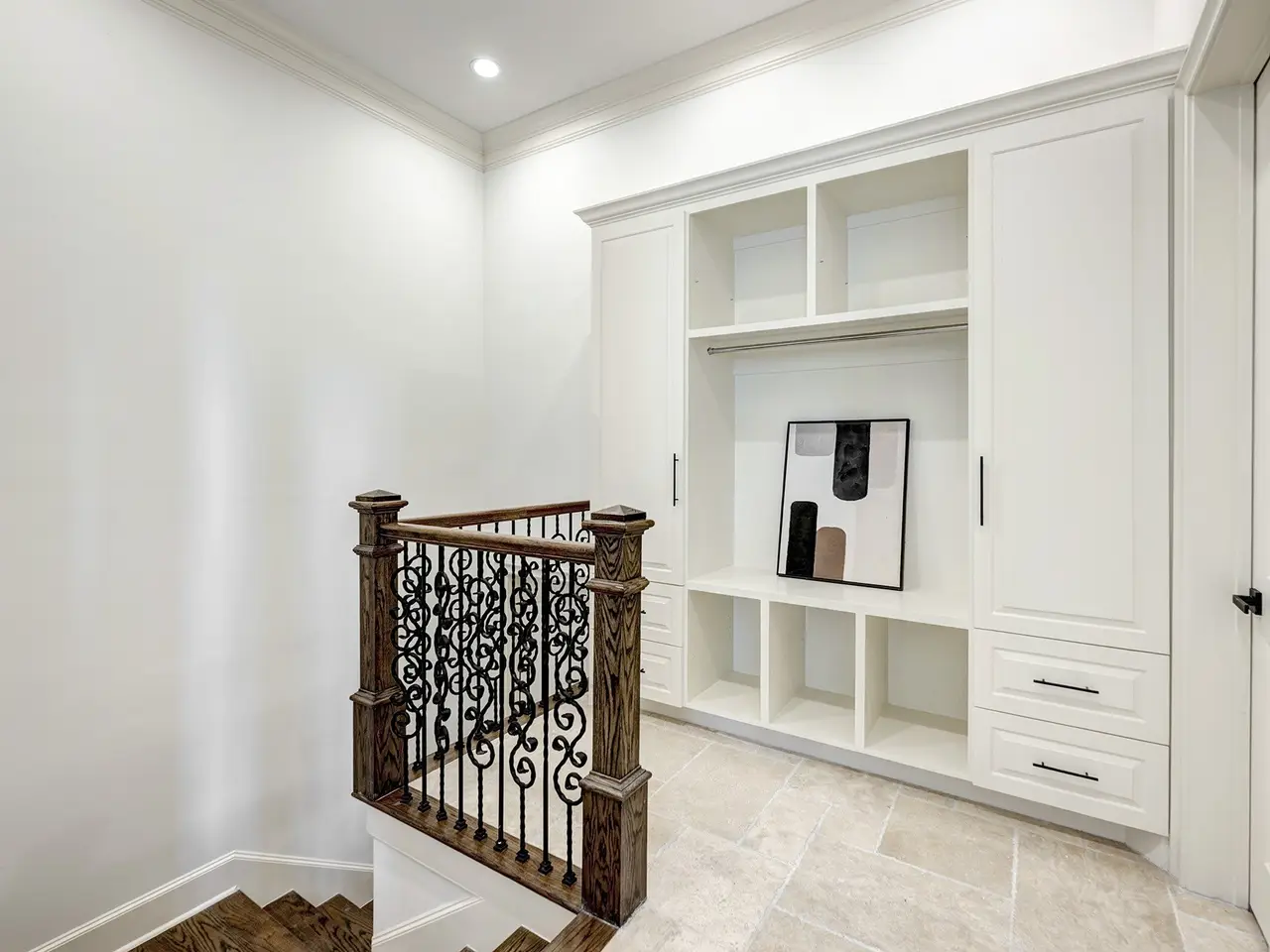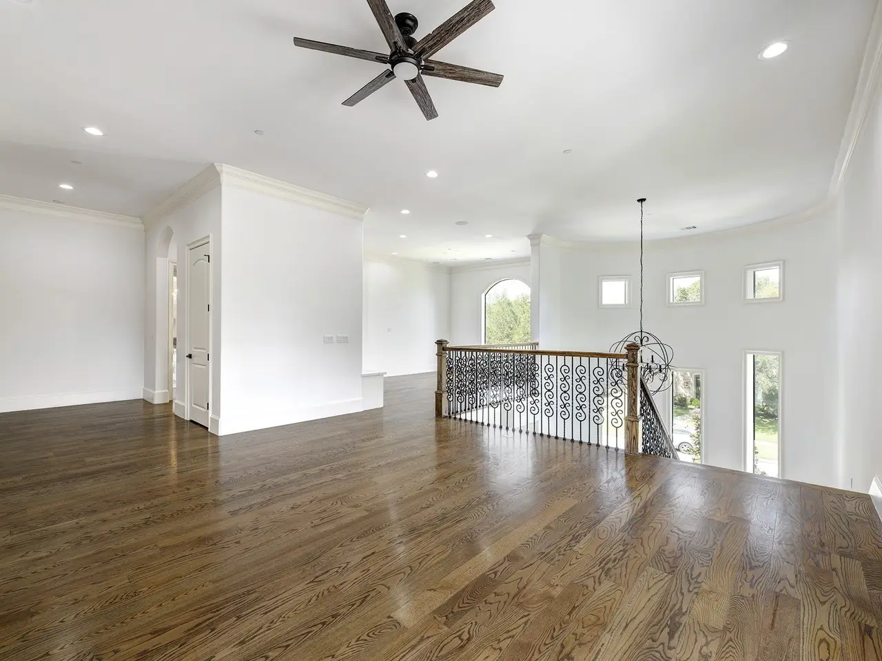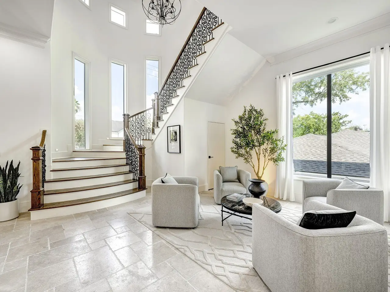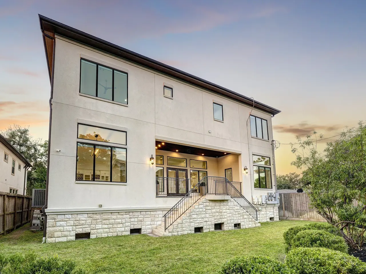 Welcome to this architecturally inspired masterpiece in the heart of Bellaire. Completed in 2019, this stunning spacious home has 5 bedrooms and 6 ½ baths on a large beautifully landscaped lot inside the Loop. The stately elevated façade is composed of stucco, stone and cast stone. A porte-cochere leads to an oversized garage with an exceptional storage area. Inside, the grand foyer with piano alcove/sitting area has access to a guest suite, study and the sweeping staircase. The island kitchen boasts Viking appliances, quartz counters and adjacent breakfast room, and flows to the great room with fireplace, bar area and formal dining room. A covered porch with fireplace overlooks the lushly landscaped back yard. Upstairs find a spacious den/game room, elegant primary suite and 4 additional ensuite bedrooms plus third level flex room with bath. Solar panels, 2 utility rooms, water softener and elevator closets, all per Seller.