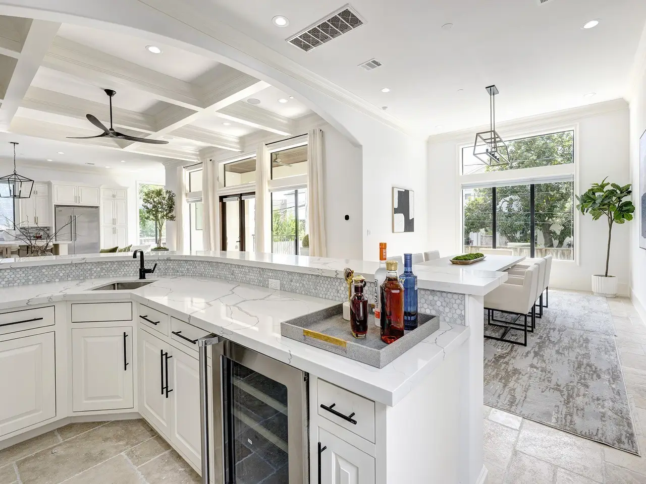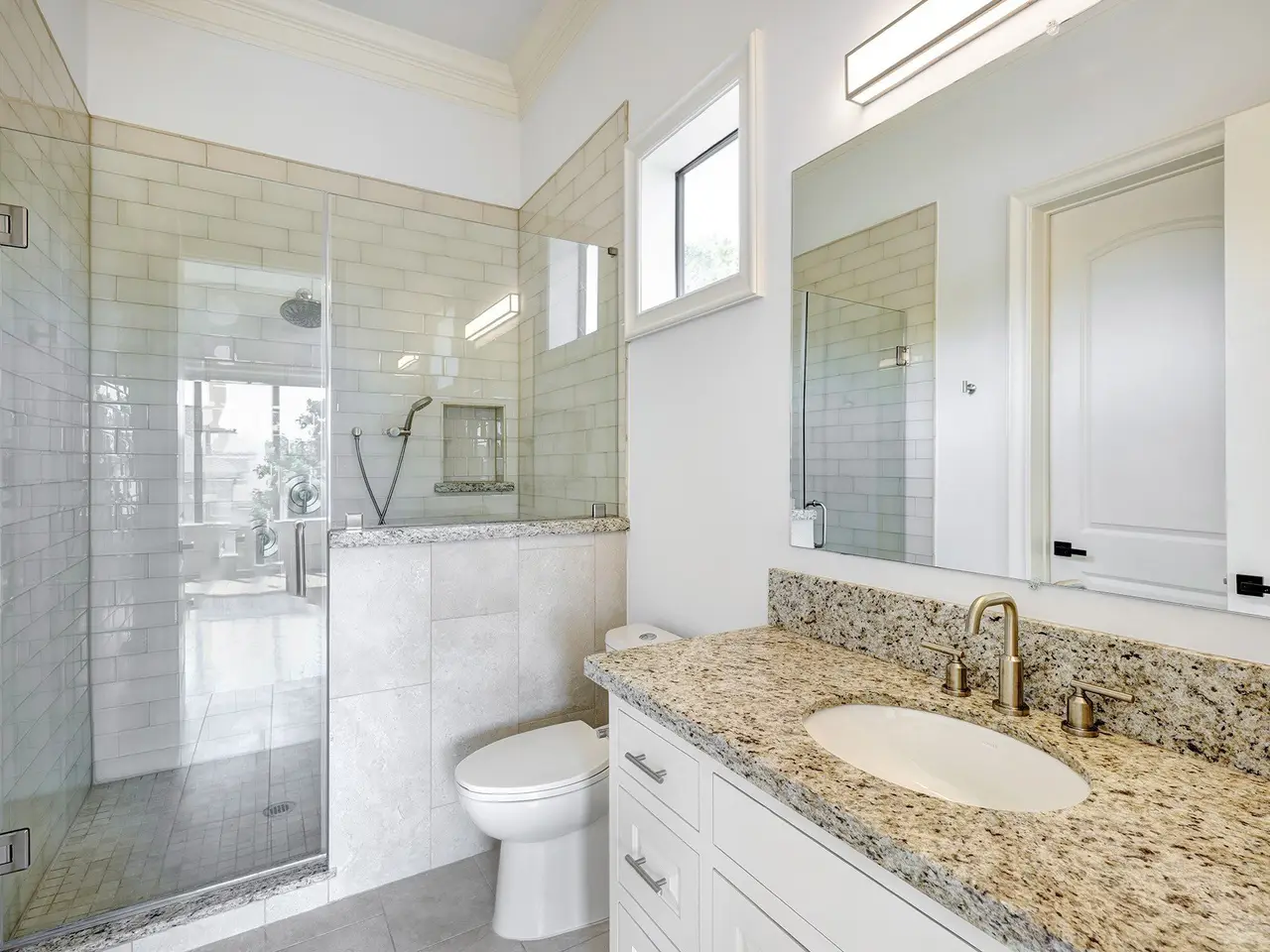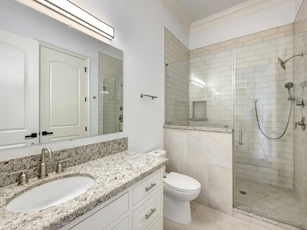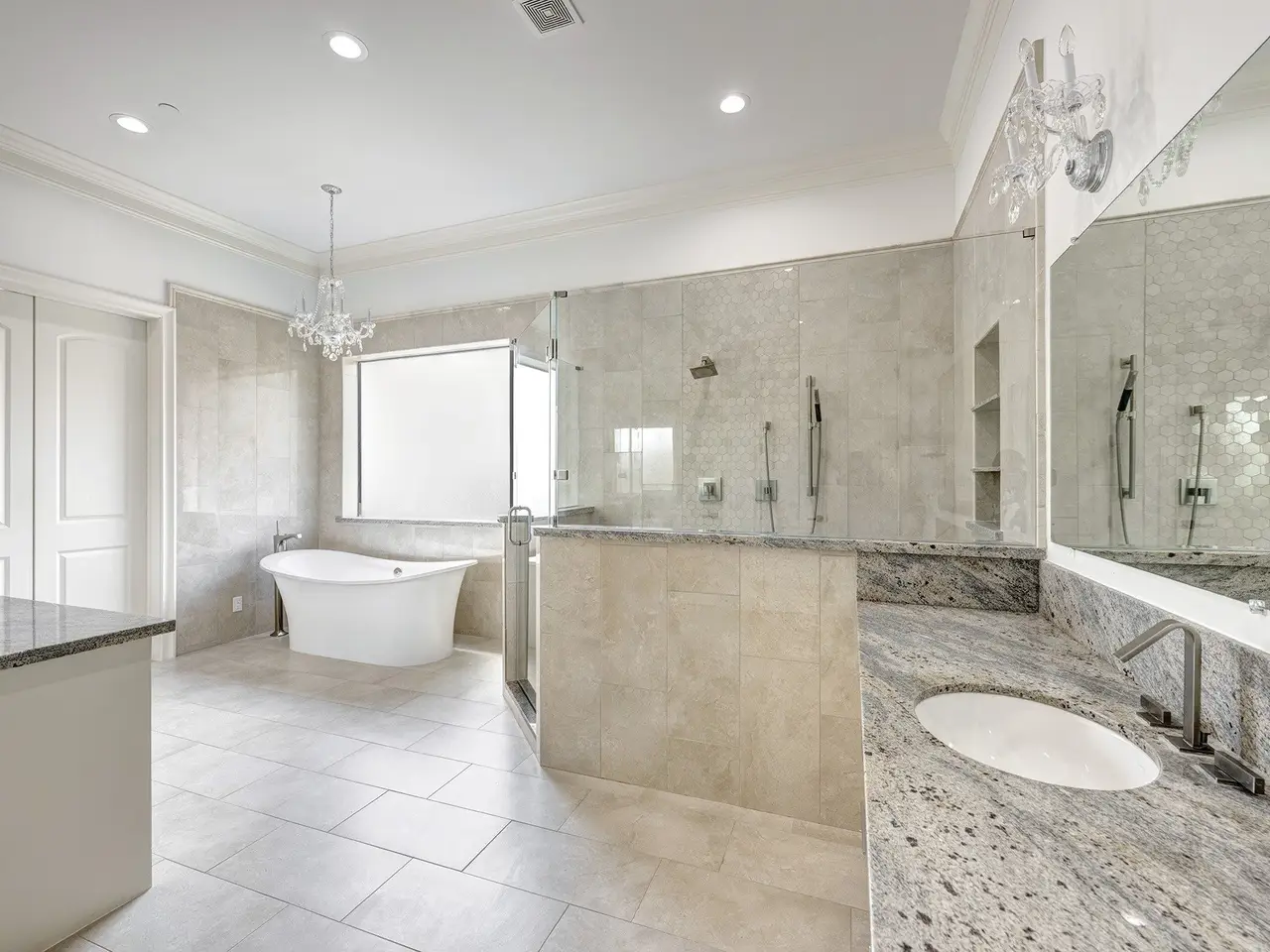 Welcome to this architecturally inspired masterpiece in the heart of Bellaire. Completed in 2019, this stunning spacious home has 5 bedrooms and 6 ½ baths on a large beautifully landscaped lot inside the Loop. The stately elevated façade is composed of stucco, stone and cast stone. A porte-cochere leads to an oversized garage with an exceptional storage area. Inside, the grand foyer with piano alcove/sitting area has access to a guest suite, study and the sweeping staircase. The island kitchen boasts Viking appliances, quartz counters and adjacent breakfast room, and flows to the great room with fireplace, bar area and formal dining room. A covered porch with fireplace overlooks the lushly landscaped back yard. Upstairs find a spacious den/game room, elegant primary suite and 4 additional ensuite bedrooms plus third level flex room with bath. Solar panels, 2 utility rooms, water softener and elevator closets, all per Seller.