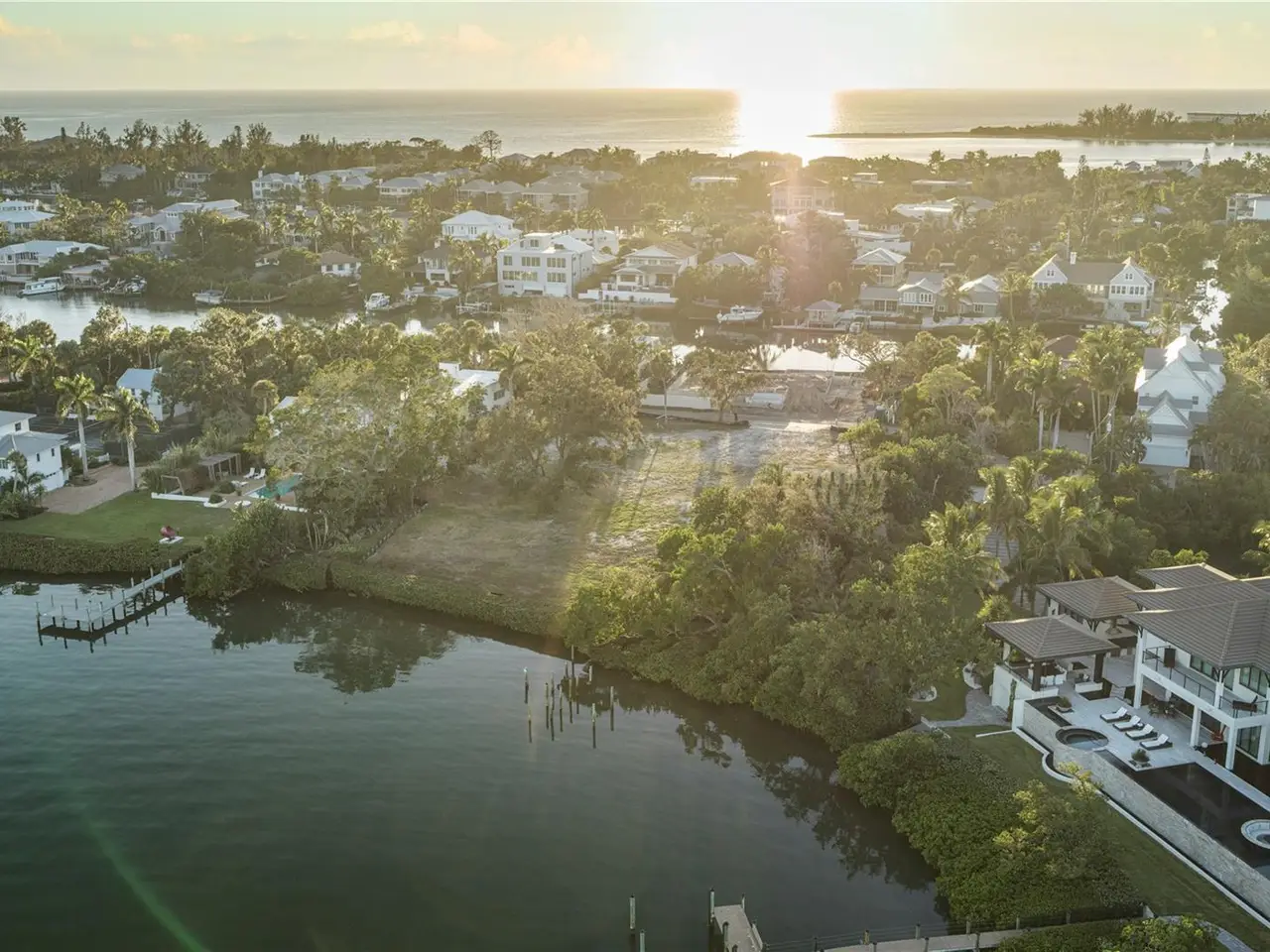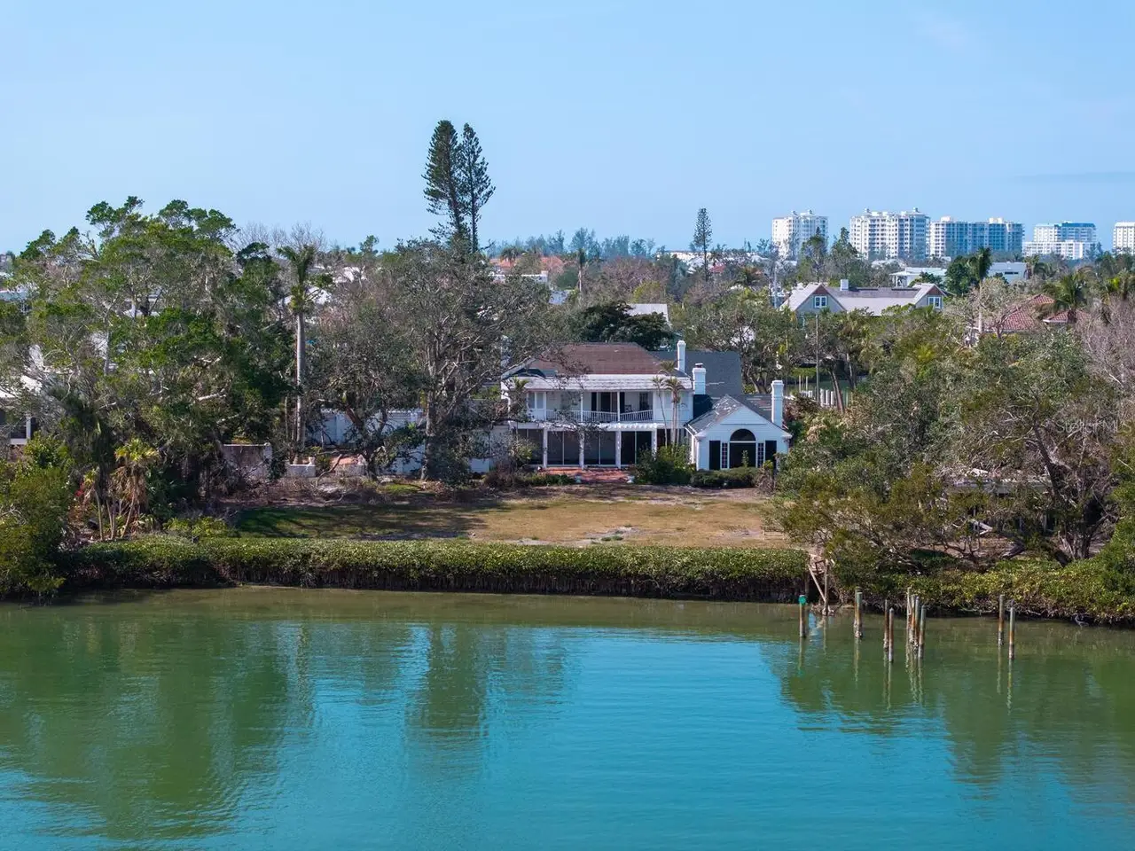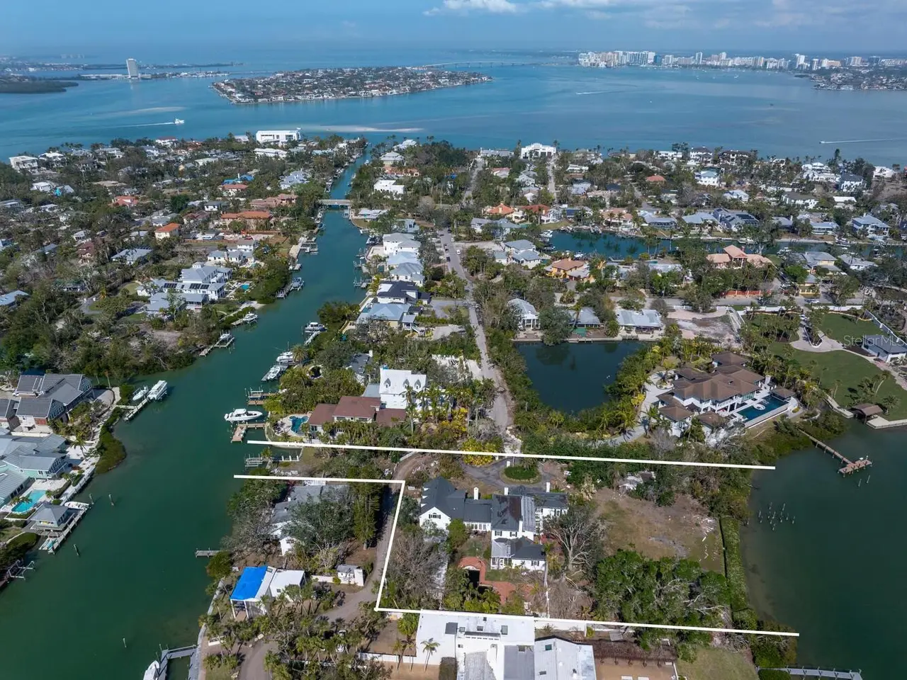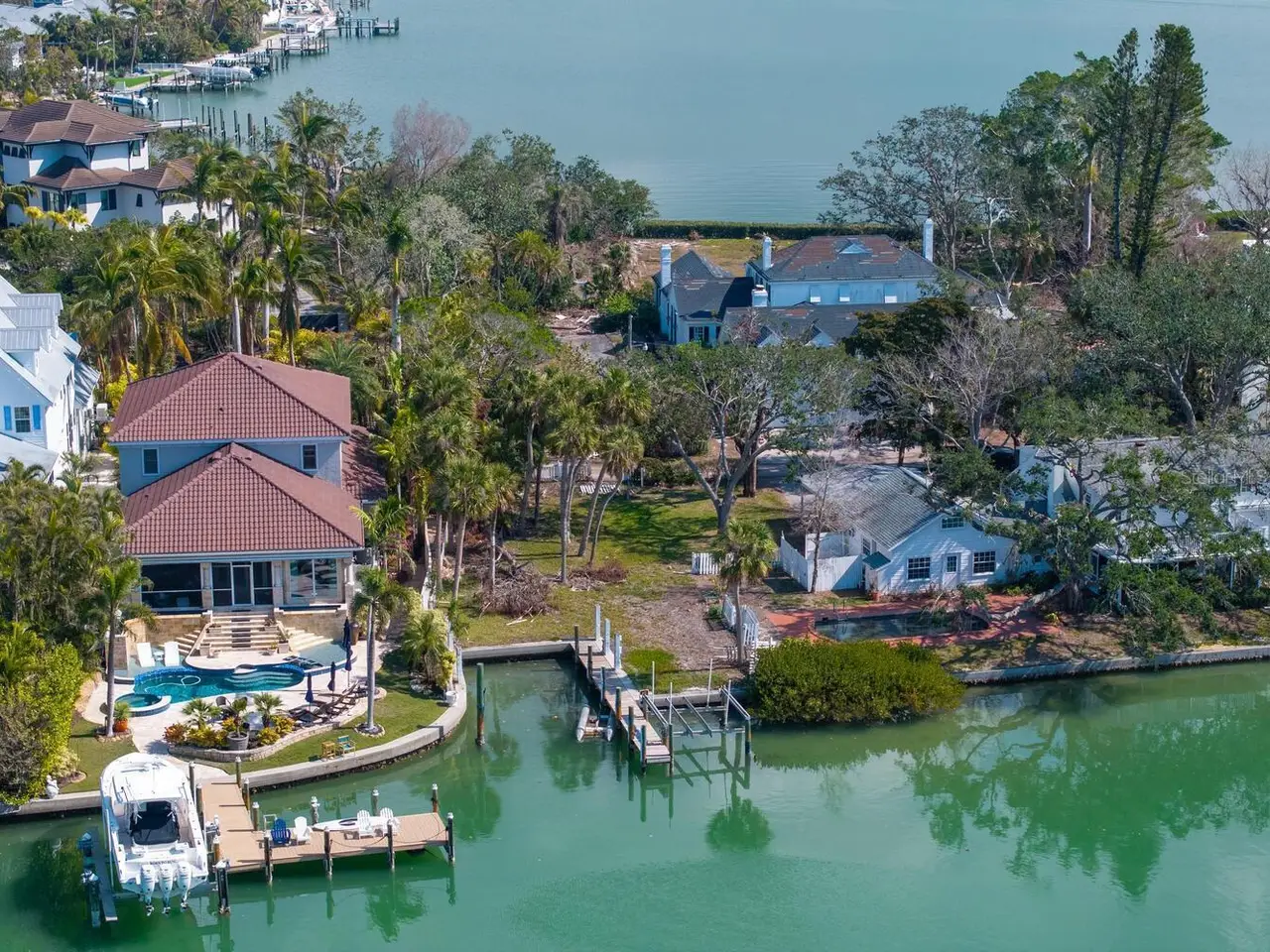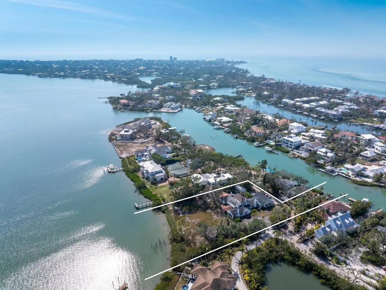 Exquisite Bay Island Estate Parcel Available. Build your dream waterfront estate on this exceptional 1.52-acre bayfront estate lot, offering both open bay access and a protected deep-water slip on Hansen Bayou. The east side of this extremely private lot boasts 212 feet of bayfront with expansive views to the East and South down the Bay. On the west side, is a large 54-foot waterfront parcel with a seawall cut-out area allowing for a 50-foot protected boat basin area with a private dock on deep water Hansen Bayou. Enjoy serene views of Edward's Islands and Little Sarasota Bay, as well as stunning sunsets across Hansen Bayou to the west. The existing home is currently in the permitting process for demolition, allowing you to create a custom estate tailored to your vision. This one-of-a-kind opportunity will not last long. Due to hurricane damage the property is being sold "as is".