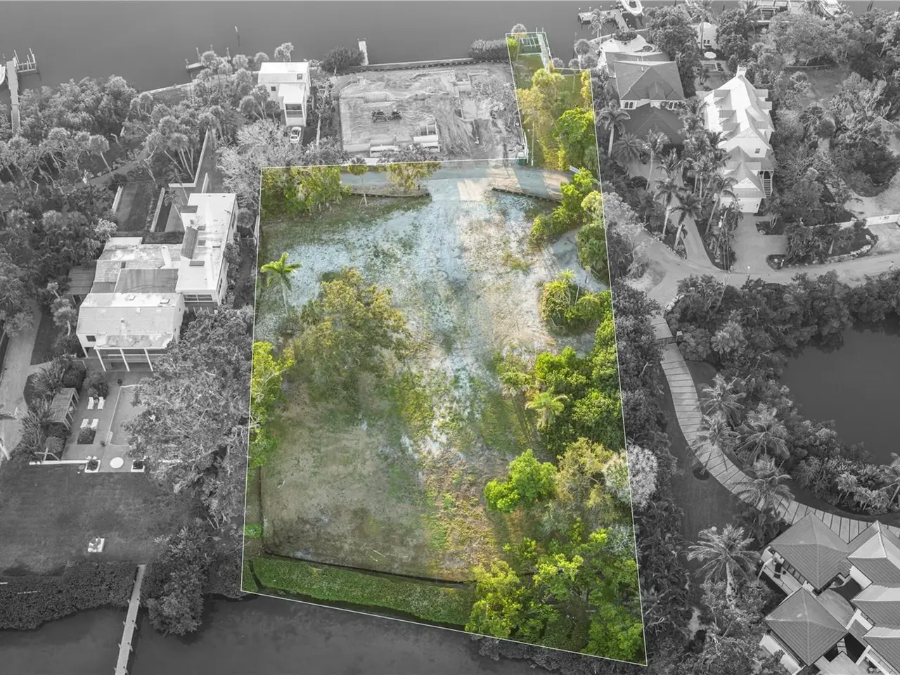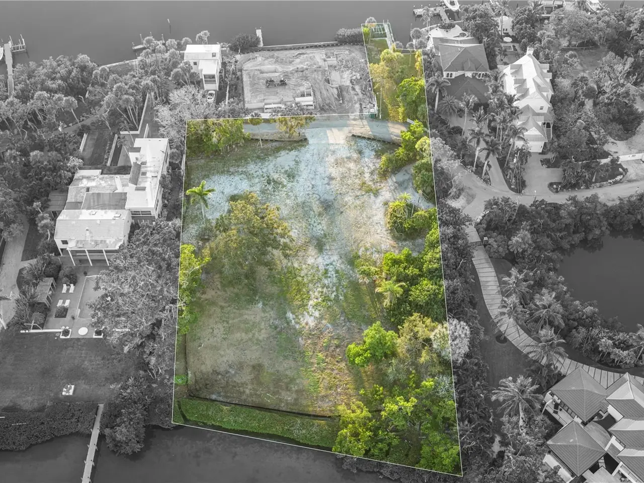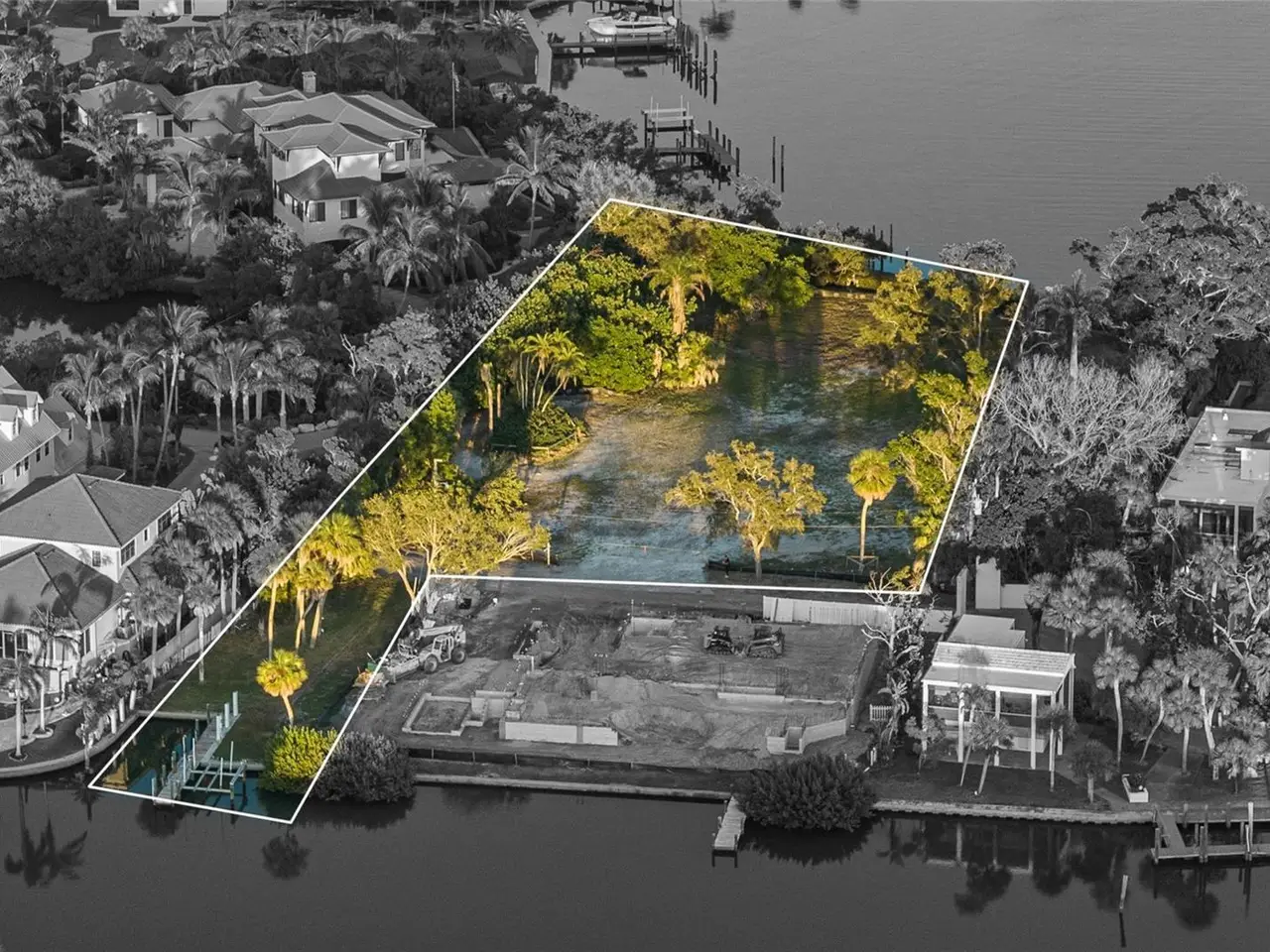 • Seawall cut-out area for protected boat basin