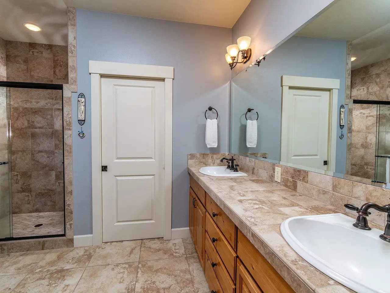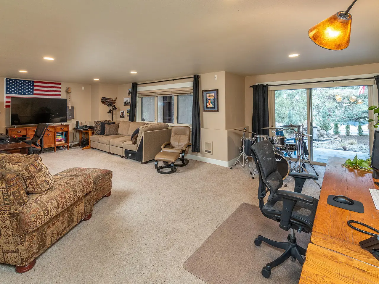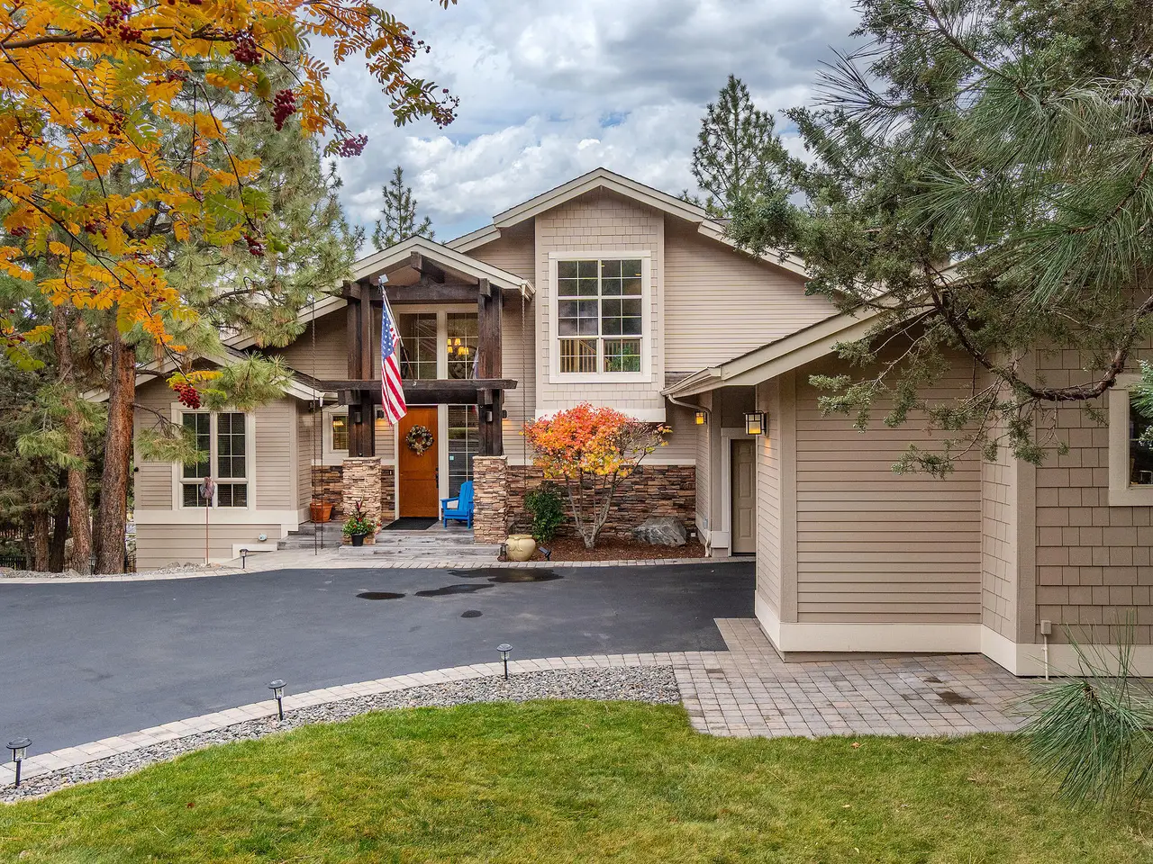 Beautiful 4-bedroom, 3-bath home in Bend's sought-after Awbrey Butte community. The great room features a 14-foot chiseled marble fireplace as the focal point. The kitchen offers granite countertops, an 8-foot island, stainless appliances, and a walk-in pantry. The main-level primary suite includes a dual vanity and soaking tub. A second bedroom or office is also on the main level. Upstairs are two additional bedrooms for family or guests. The finished basement is wired for surround sound, has extra storage rooms, and opens to a patio with a water feature and a fire pit. A 700 sq. ft. deck is perfect for entertaining and is reinforced and wired for a hot tub. A flat driveway leads to an oversized two-car garage which includes ample storage, a two-year-old furnace, and a 30-amp RV plug just outside the garage door. Enjoy luxury living and beautiful surroundings in Awbrey Butte.