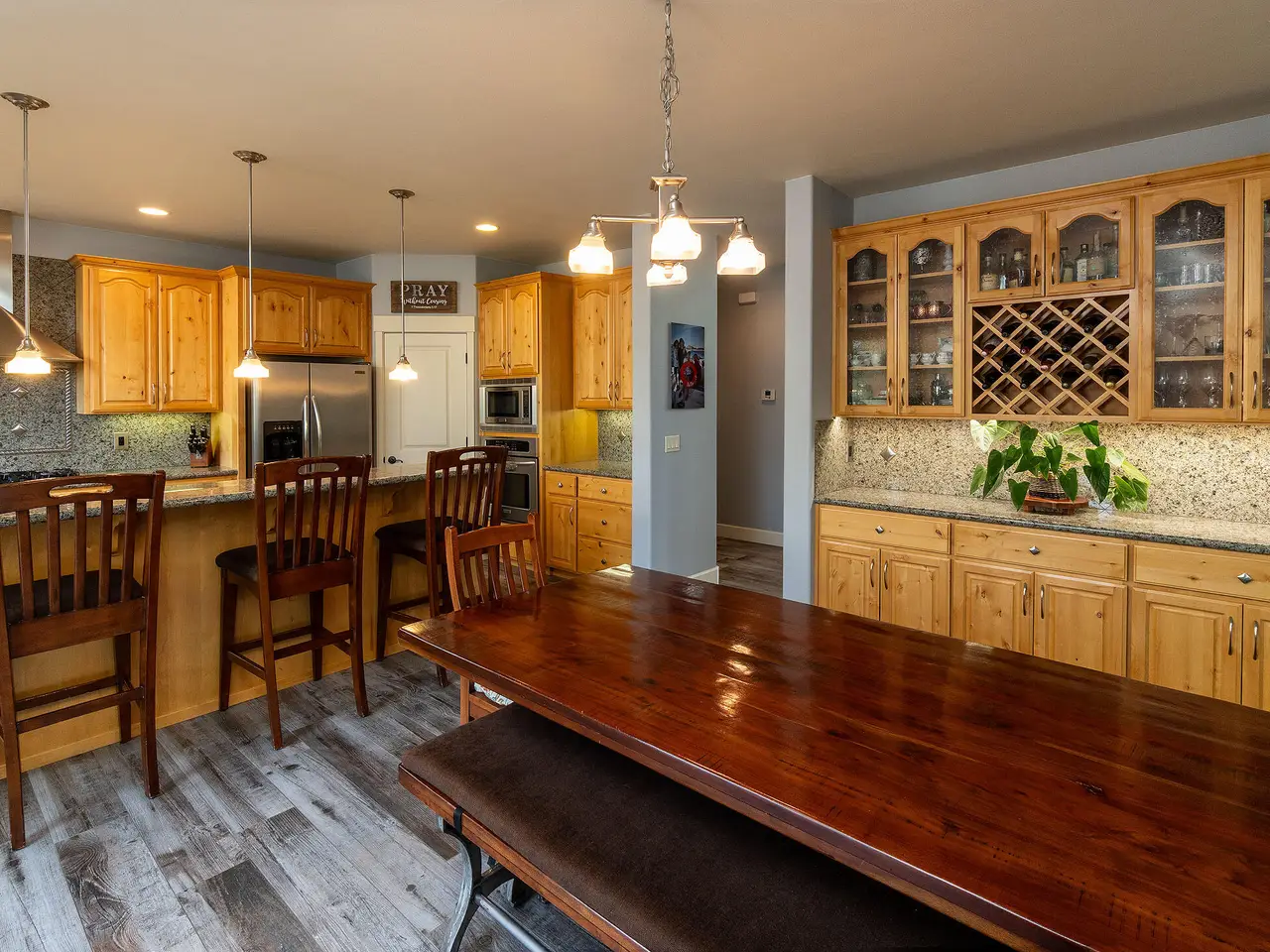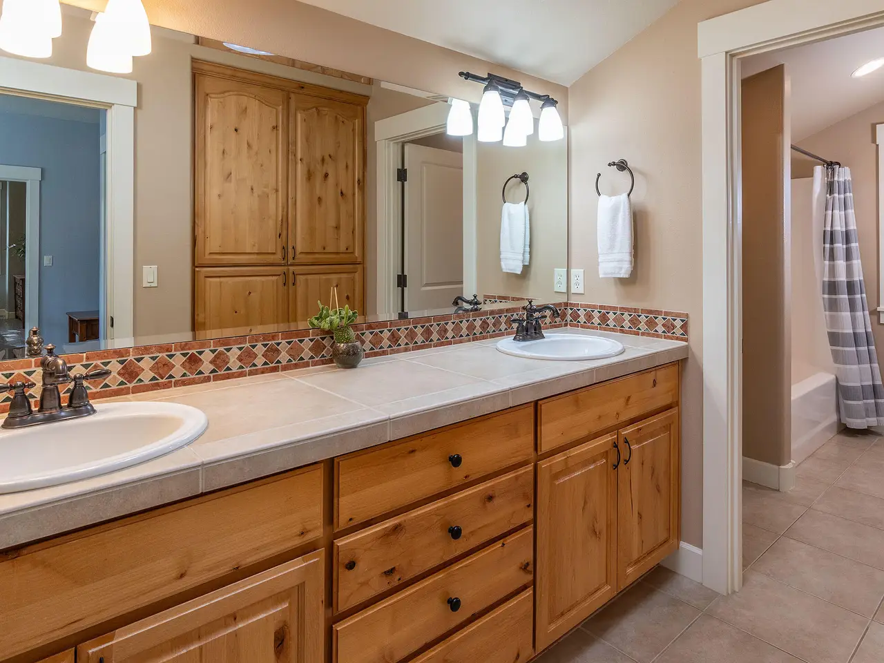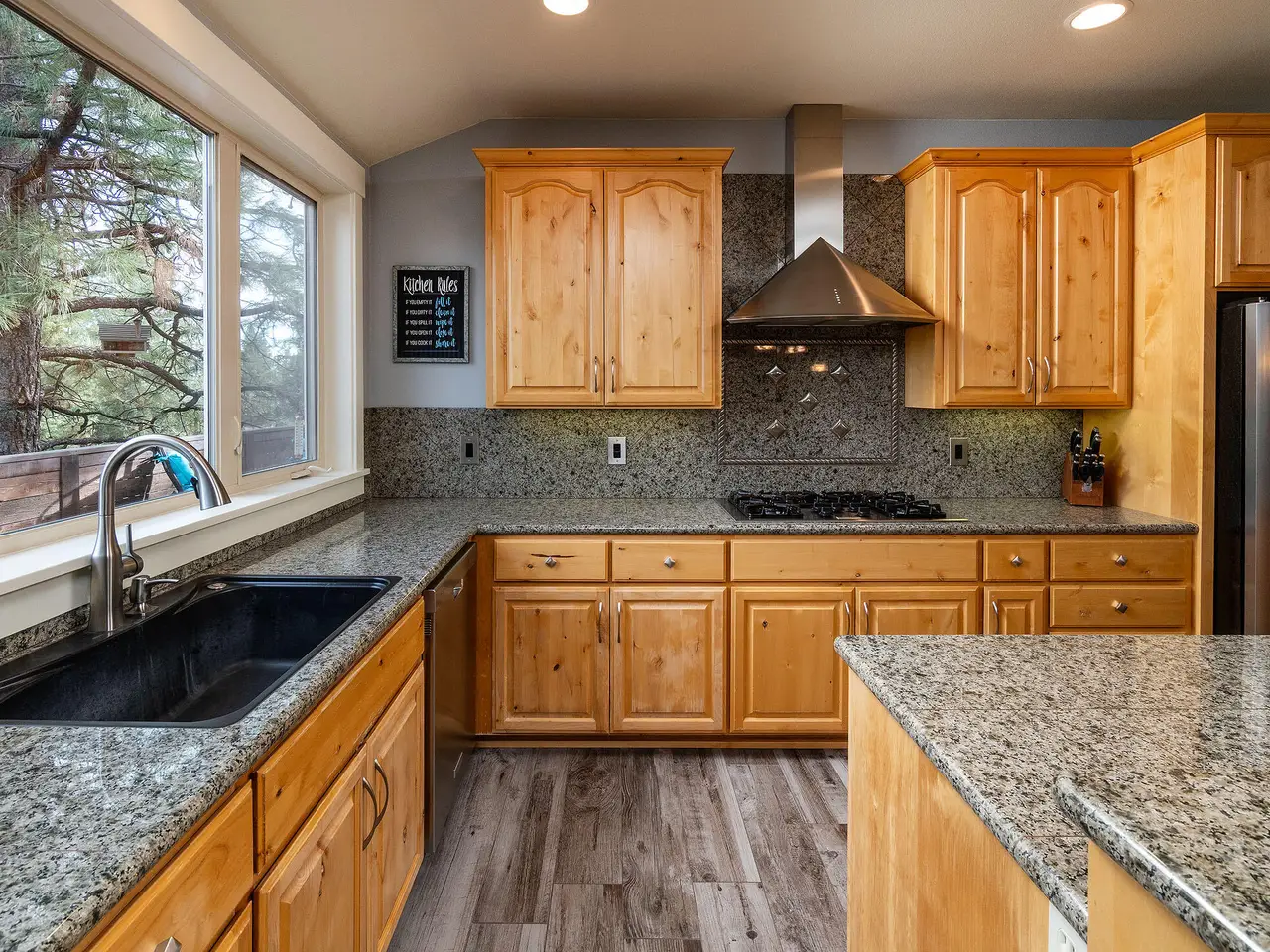 Beautiful 4-bedroom, 3-bath home in Bend's sought-after Awbrey Butte community. The great room features a 14-foot chiseled marble fireplace as the focal point. The kitchen offers granite countertops, an 8-foot island, stainless appliances, and a walk-in pantry. The main-level primary suite includes a dual vanity and soaking tub. A second bedroom or office is also on the main level. Upstairs are two additional bedrooms for family or guests. The finished basement is wired for surround sound, has extra storage rooms, and opens to a patio with a water feature and a fire pit. A 700 sq. ft. deck is perfect for entertaining and is reinforced and wired for a hot tub. A flat driveway leads to an oversized two-car garage which includes ample storage, a two-year-old furnace, and a 30-amp RV plug just outside the garage door. Enjoy luxury living and beautiful surroundings in Awbrey Butte.