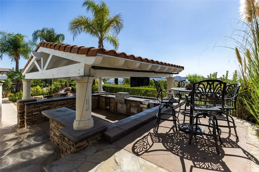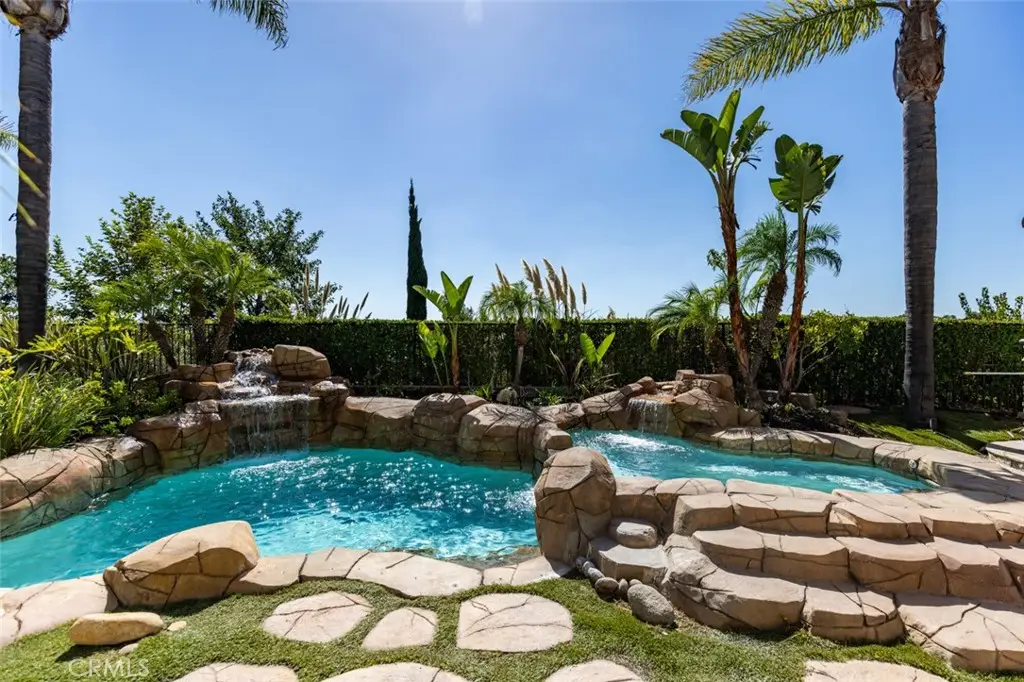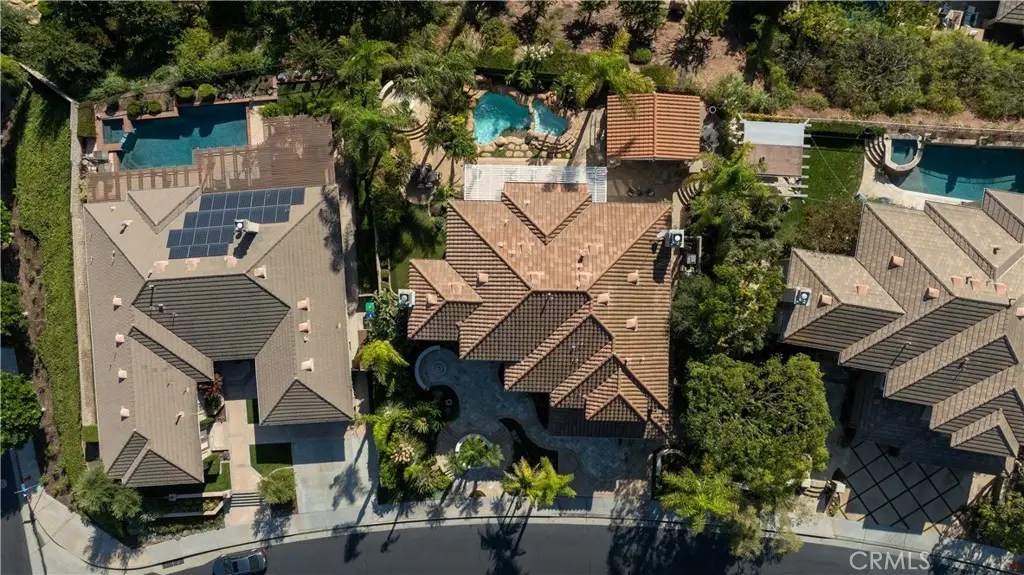 RENOVATED LUXURY HOME | PANORAMIC VIEWS | SPARKLING POOL & SPA | EN-SUITE BEDROOMS | GATED PARKRIDGE COMMUNITY | Welcome to 6336 E Cedarbrooks Avenue, a stunningly updated home located in the prestigious gated community of Parkridge in Orange. With five spacious bedrooms, five and a half bathrooms, and a separate office, this expansive two story property offers the perfect combination of elegance, comfort, and functionality, ideal for modern living and entertaining. Completely renovated with a designer's touch, the home features fresh interior and exterior paint, brand new luxury vinyl plank flooring, plush new carpet, custom countertops, and beautifully remodeled bathrooms. From the dramatic curved staircase to the soaring ceilings and abundant natural light, every space has been thoughtfully refreshed with timeless style and quality. At the heart of the home is the oversized chef's kitchen, complete with quartz countertops, rich wood cabinetry, a center island, and stainless steel appliances. It opens directly to a spacious family room with built-in speakers and walls of windows that showcase the lush backyard and hillside views. A formal living room with two story ceilings and a separate dining room provide even more space to gather. The flexible floor plan includes a downstairs en-suite bedroom, perfect for guests or multi generational living. Upstairs, each of the four additional bedrooms has its own private bathroom, offering privacy and convenience for every member of the household. The expansive primary suite features a wall of windows with panoramic views, a spa-inspired bathroom with dual vanities, soaking tub, walk-in shower, and two generous walk-in closets. Step outside to your private oasis, complete with a lagoon-style pool and spa, rock waterfalls, built-in BBQ bar, and multiple seating areas all surrounded by tropical landscaping and sunset views. Residents of Parkridge enjoy two private gates, a community pool and spa, sport court, BBQ areas, and access to nearby hiking and biking trails, shops, dining, and top rated schools. 6336 E Cedarbrooks Avenue is move-in ready and offers resort style living in one of Orange's most coveted neighborhoods.