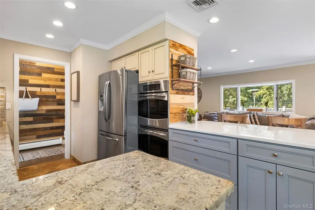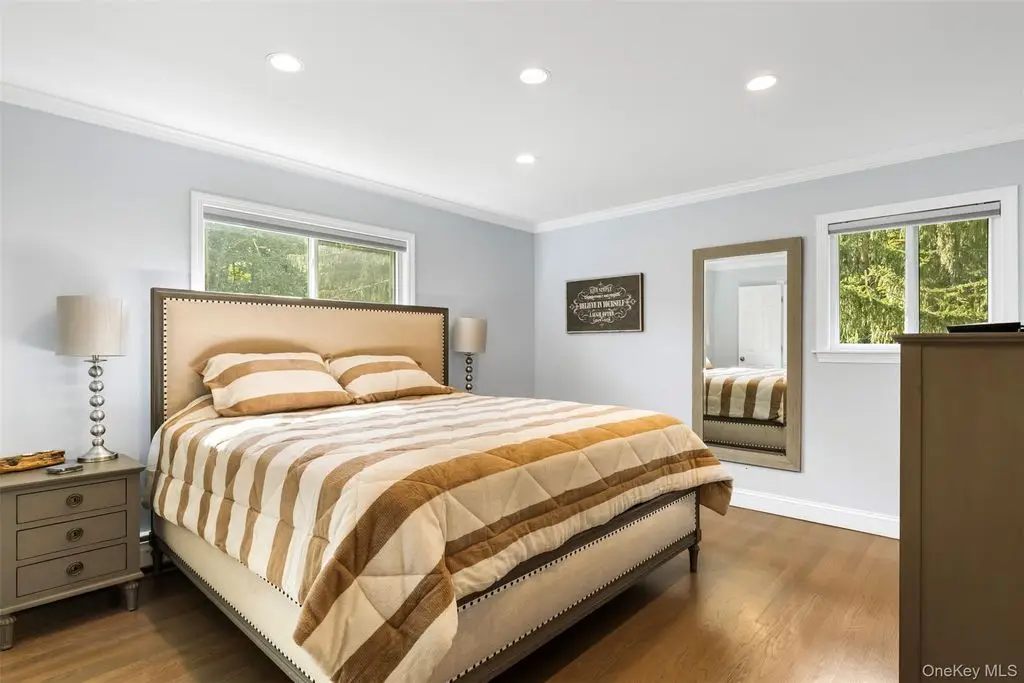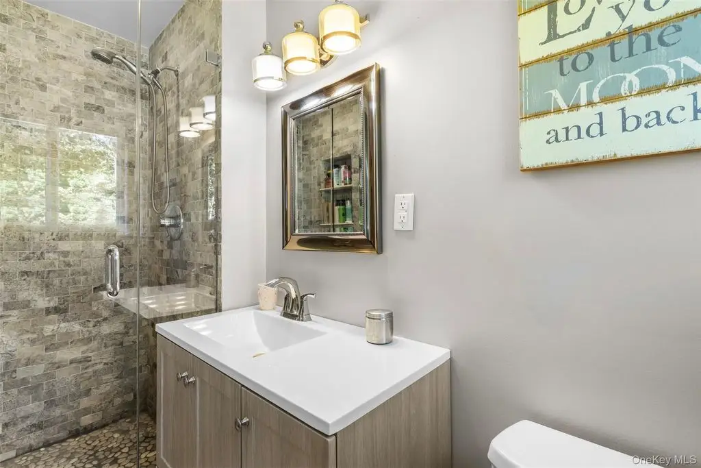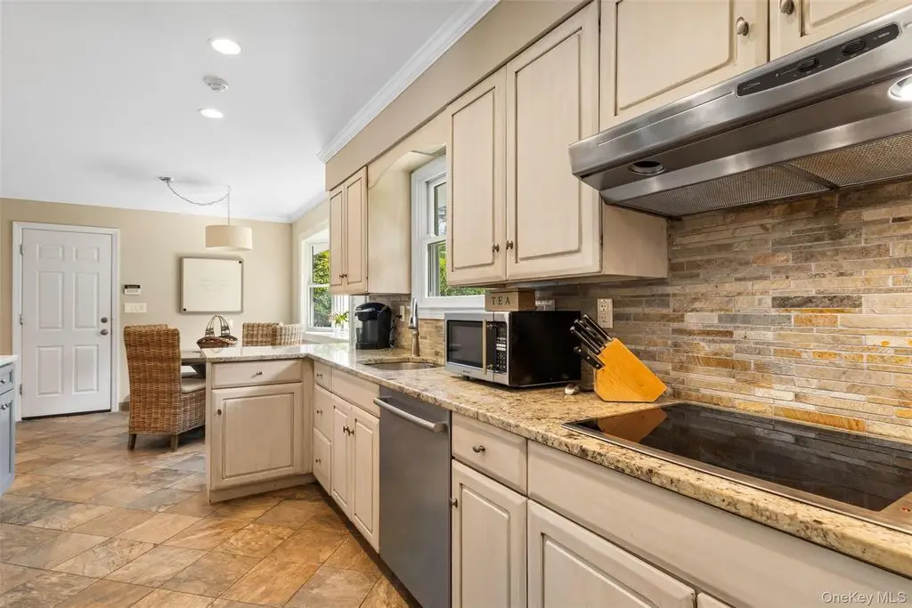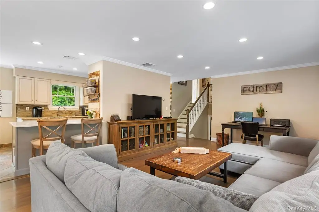 Exceptional Split-Level Oasis in Mount Pleasant's Prestigious Rolling Hills. Set on over an acre of lush, park-like grounds, this exquisitely updated split-level residence is tucked away in the sought-after Rolling Hills of Mount Pleasant. Thoughtfully reimagined and impeccably renovated, the home harmonizes timeless architectural charm with refined modern living, a true private sanctuary nestled in nature, yet just minutes from schools, shopping, parks, and commuter routes.A striking whitewashed brick facade, clean elegant lines, and an expansive attached two-car garage lend the property a commanding curb presence. A sweeping driveway accommodates six or more vehicles, offering both practicality and an ideal setting for effortless entertaining. Step through the inviting entryway into a foyer rich in character, where elegant wood accents offer a warm welcome and hint at the thoughtful design found throughout the home. At the heart of the residence lies the beautifully appointed kitchen, a culinary haven featuring gleaming granite countertops, premium stainless steel appliances, a custom bar area, rustic terracotta tile flooring, a striking stone backsplash, and tasteful dual-tone cabinetry in soft cream and serene blue. A charming breakfast nook adds to the kitchen's inviting ambiance. The open-concept living and dining area is tailor-made for entertaining, seamlessly blending comfort and style. Rich hardwood floors flow throughout the space, while twin pillar-style candle chandeliers lend a touch of timeless elegance. Sliding glass doors lead to a showstopping composite deck, an idyllic setting for alfresco dining, summer barbecues, or simply unwinding while taking in the tranquility of the surrounding landscape. Upstairs, the serene primary suite offers a spa-like ensuite bath with a modern vanity and stone-tiled walk-in shower. Two additional spacious bedrooms and a well-appointed hall bath complete the upper level. The lower level presents a spacious and dynamic family room, ideal for immersive movie nights, spirited game days, or effortless entertaining. This level also features a versatile fourth bedroom, a thoughtfully designed laundry room, and sliding glass doors that provide seamless access to the expansive backyard, effortlessly blending indoor comfort with outdoor enjoyment. Outdoors, the sprawling, beautifully landscaped backyard offers a private oasis for recreation and relaxation. Whether gathering around the fire pit under the stars, enjoying the dedicated children's play area, or engaging in friendly competition at the custom Gaga pit, this expansive space invites endless moments of fun and connection in a serene natural setting. Perfectly situated just moments from parks, top-rated schools, vibrant shopping and dining, the town pool, library, Metro-North, and major highways, this home offers the rare combination of peaceful seclusion and unbeatable convenience, the ideal balance for modern living. Don't miss this rare opportunity to own a move-in ready gem in one of Mount Pleasant's most sought-after neighborhoods!
