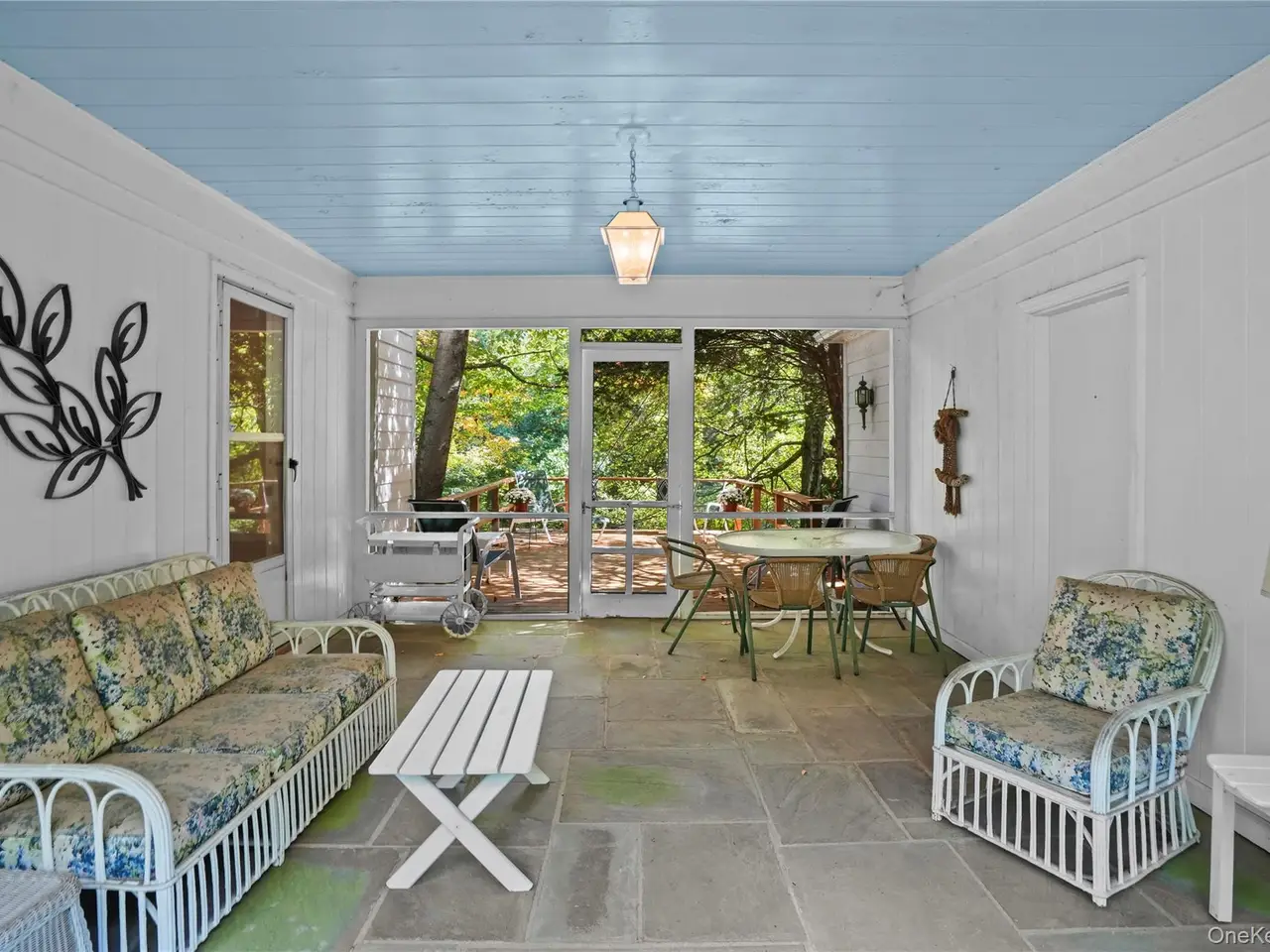 This classic center hall colonial set on 3 plus acres with a gunite pool in the Bedford Central school district has superb curb appeal & charm. Perfectly positioned away from the road behind mature trees, this home offers sensational privacy. This gracious 3500 sq ft (inclusive of the 700 sq ft finished walk-out lower level) home lives like a four bedroom. A welcoming foyer leads you to the living room with a wood burning fireplace and large windows allowing for incredible sunlight to flow. The expansive formal dining room is adjacent to the kitchen. The second level boasts a primary bedroom with en suite bathroom, full hall bathroom and two bedrooms. .Hardwood floors flow throughout (except in the kitchen) and thoughtful features such as a main-level office, a spectacular three season enclosed porch, one step entry from the 2 car garage to the house, and a whole-house generator provide both convenience and comfort. The layout is ideal for everyday living and the property offers plenty of room for outdoor play and entertainment. A freshly painted exterior, newer mechanicals and a newly stained deck overlooking the property. Located just 4 miles to the Mt Kisco train station, shopping, and dining and 2 miles to the Saw Mill. This home with an outdoor oasis has an unbeatable location whether this is your full time home or weekend retreat away from the city. Bring your vision - the possibilities for renovation and redesign of this home are limitless!