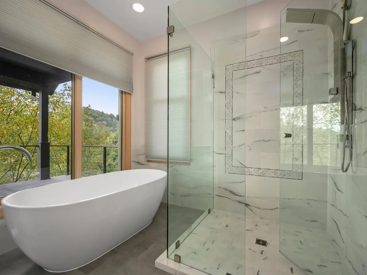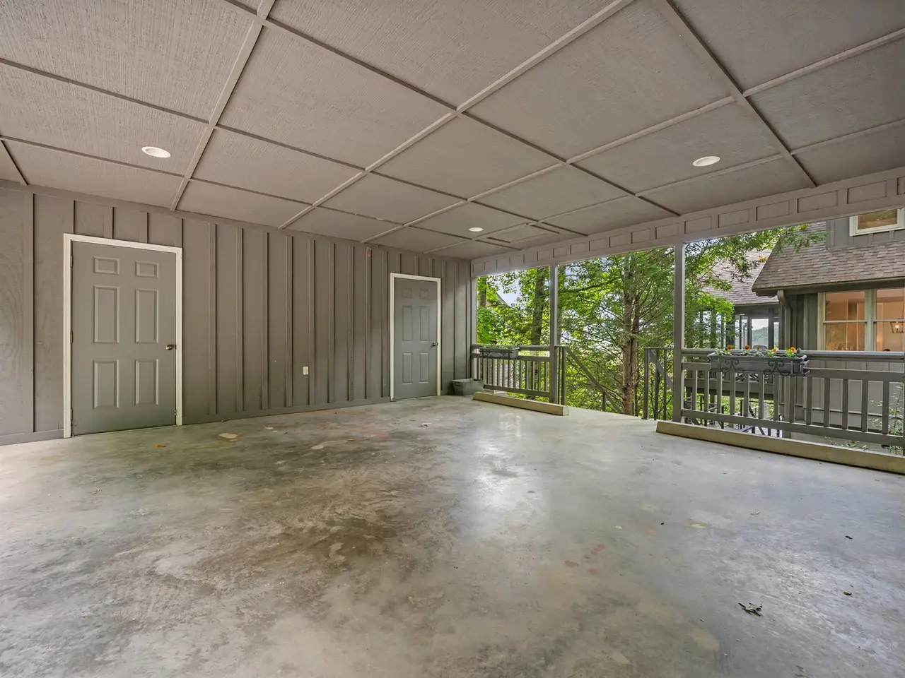 • Expansive screened porch with modern cable railing