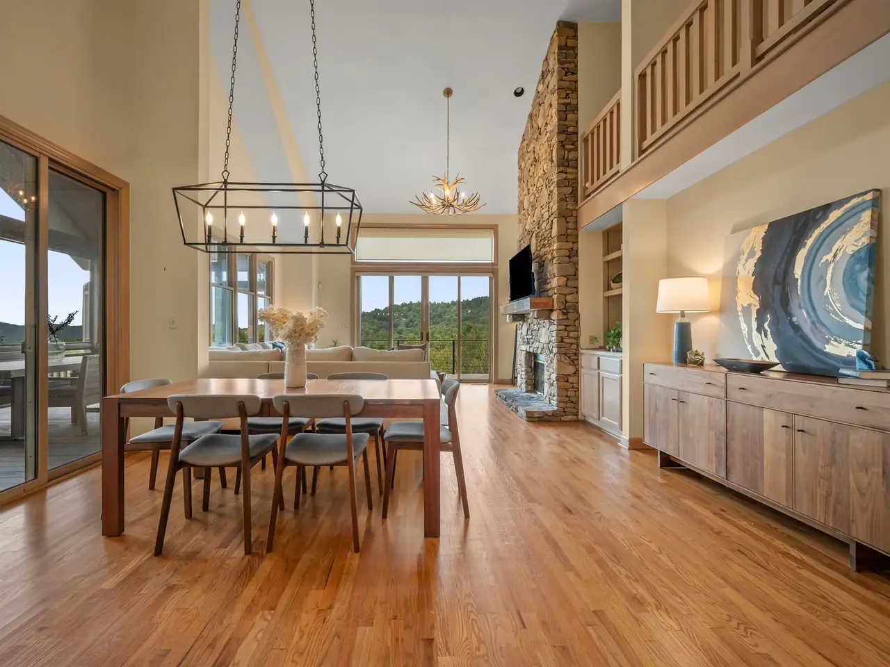 Welcome to your stunning mountain retreat in the prestigious Champion Hills community, home to Tom Fazio's renowned "Mountain Masterpiece" golf course. This beautifully designed residence offers the best of mountain living, featuring an open-concept main level with two bedrooms and two full baths, all thoughtfully arranged for effortless one-level living plus two additional levels for family and guests. Step onto the expansive screened porch or one of the multiple decks?complete with modern cable railing - and take in the breathtaking, long-range western views of the Blue Ridge Mountains. Whether it's a vibrant sunset or the serene fog rolling through the peaks, the scenery is spectacular all year round. The upstairs guest suite provides privacy and comfort, complemented by a loft space perfect for a home office, reading nook, or creative retreat. The spacious lower level features a large family room with two sliding glass doors that open to a wrap-around deck, ideal for entertaining or simply enjoying the crisp mountain air. A fourth bedroom and full bath complete this level, offering the perfect space for company. Nestled in a resort-style community just 8 minutes from downtown Hendersonville, this home is a true blend of comfort and natural beauty. Don't miss the opportunity to live in one of Western North Carolina's most sought-after communities.