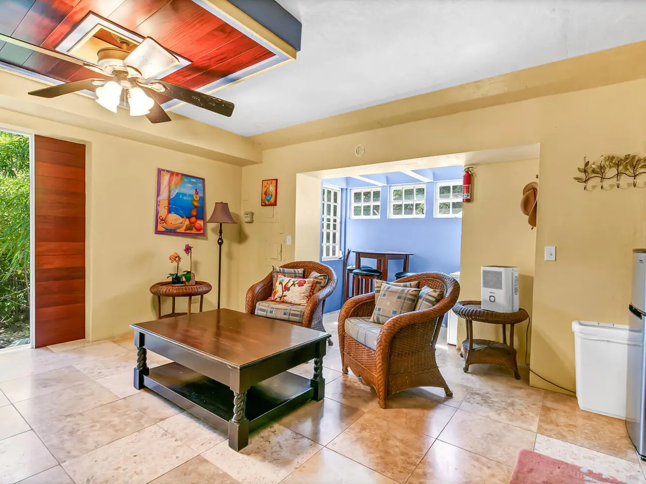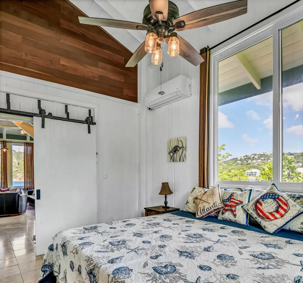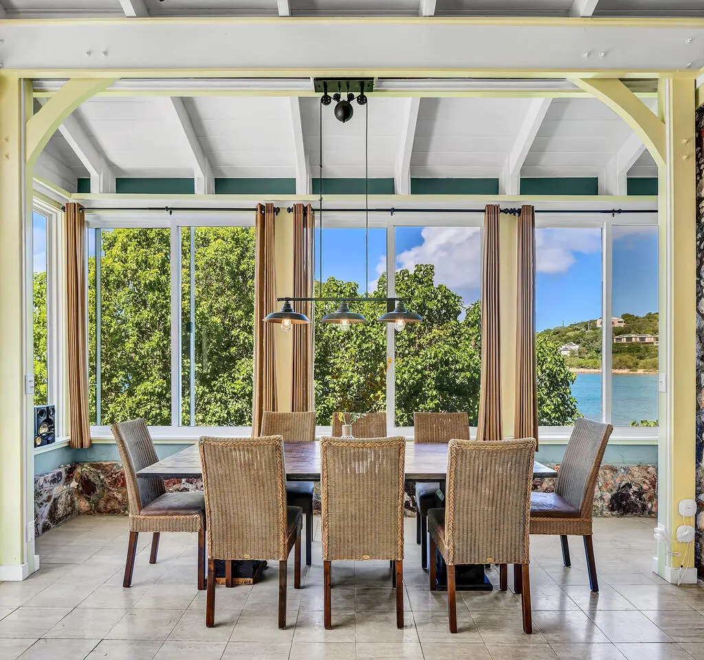 The name Beach Walk sums up the allure of this unique 5 bedroom - 5.5 bath home. Swim, paddle, kayak, snorkel & explore a magnificent tropical reef in the aquamarine waters of pristine Chocolate Hole Bay right from your door. The seaward facing wall of picture windows highlights extraordinary bay and Caribbean Sea views and with full AC; pool; easy, paved access; minutes to Cruz Bay restaurants & shopping, this home has it all. Guests absolutely love this property. A magical island home to share with family and friends; Beach Walk will not disappoint.