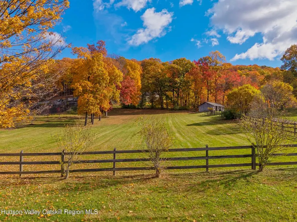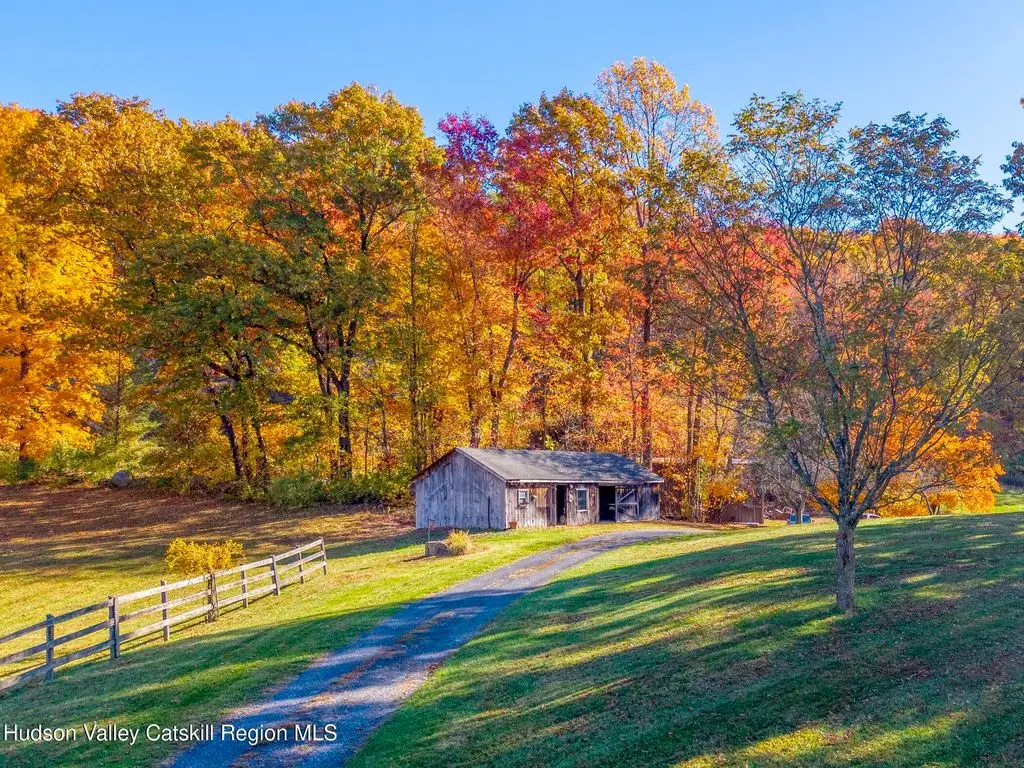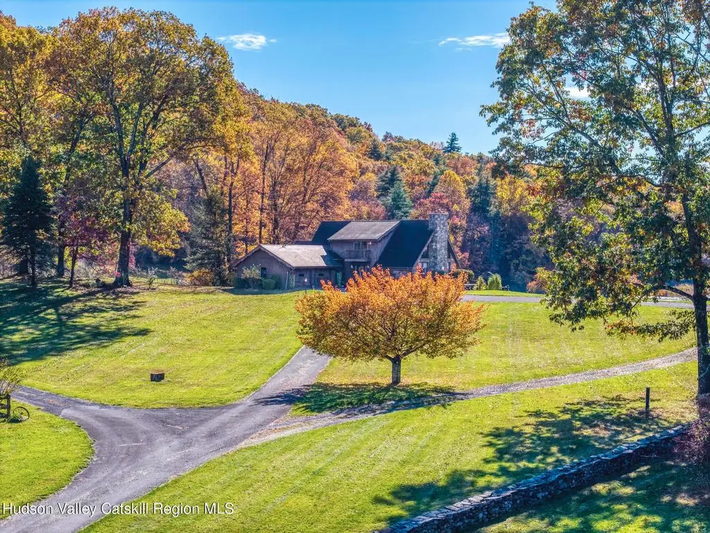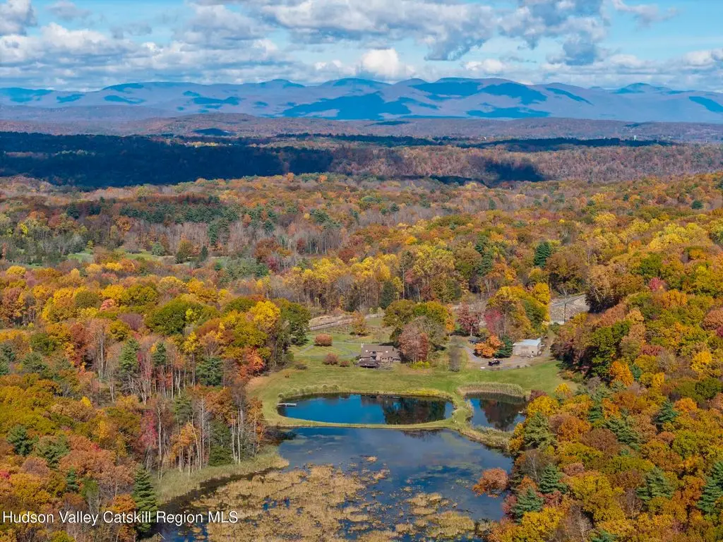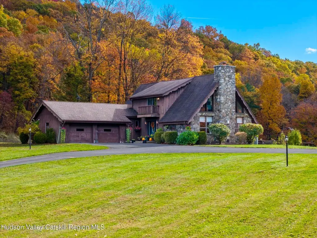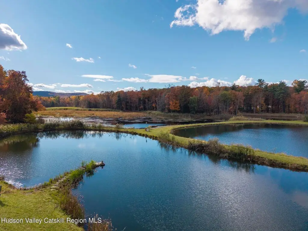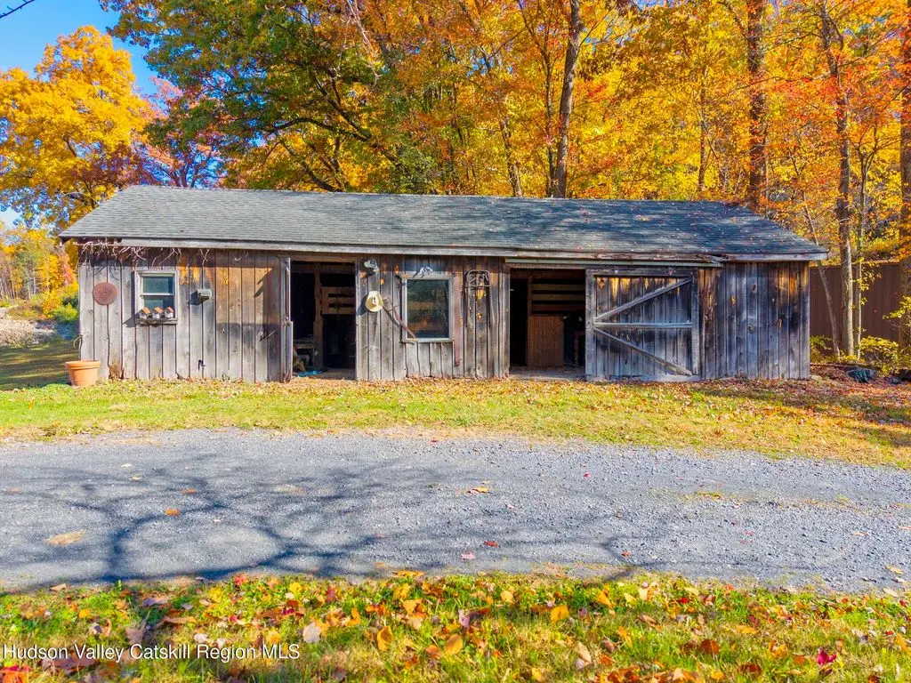Escape to your own private retreat nestled in the woods! This 3-bedroom, 1.5 bath home offers the perfect blend of comfort and country charm. The spacious kitchen is designed for entertaining, with ample counter space and room for gathering both indoors as well as flowing out onto the two tiered deck overlooking the ponds and a waterfall that can be turned on simply by a switch in the home. Work from home or host extended family or friends with an additional flex room on the first floor. Unwind by the cozy fireplace in the living room on crisp winter evenings, or step outside and experience the serenity of the forest, open meadows, and water views. Upstairs, you will find 3 spacious bedrooms and an open sitting area complete with gorgeous views. Enjoy 18.3 secluded acres featuring 4 stocked ponds, ideal for fishing, reflection, and quiet afternoons outdoors. A 3-stall barn with tack room electric and water provides space for horses, hobbies, or storage, while the large detached garage adds even more room for vehicles and equipment. Whether you're looking for a peaceful year-round residence or a secluded getaway, this hidden gem is perfect for those seeking privacy, adventure, and a connection to the outdoors. Located 80 miles from NYC and close and convenient to historic Kingston, your peaceful retreat awaits in the heart of the Hudson Valley.