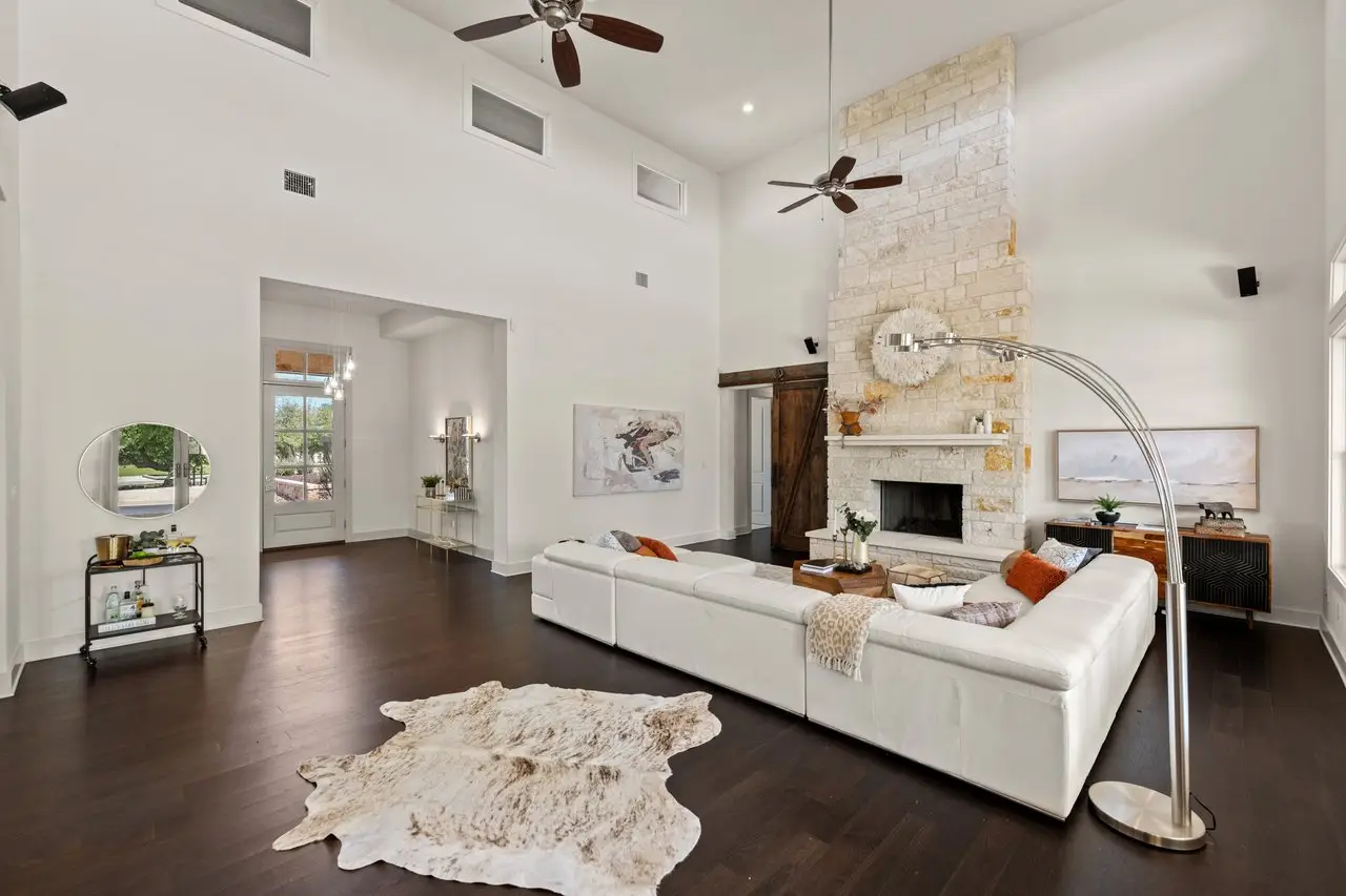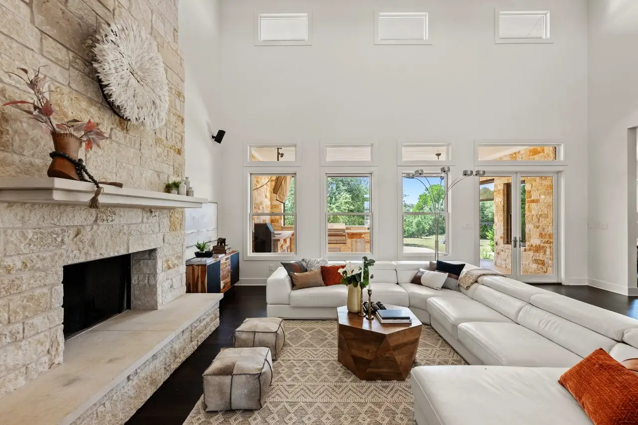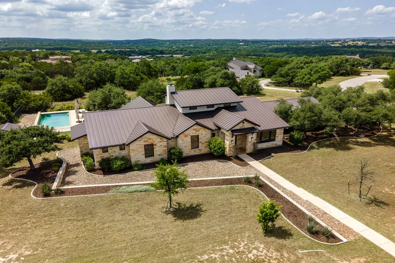 Situated on 2.4 acres in the serene Vineyard neighborhood, this stunning one-story Texas limestone home with a sleek metal roof exudes curb appeal on a corner lot. An oversized driveway leads to a three-car garage, complemented by a practical Generac generator, tankless water heater, well, and water storage tank. The backyard oasis features a sparkling pool and spa, outdoor kitchen, pizza oven, bocci ball pad, basketball court, and playground—perfect for entertaining. Overlooking the picturesque Texas Hill Country and Driftwood Winery, this home offers tranquility with easy access to Austin and San Antonio. Inside, a grand limestone fireplace anchors the open living area with soaring vaulted ceilings and huge windows flooding the space with light. The private master suite boasts a spa-like bath with a soaking tub, sparkling shower, and backlit mirrors. Each bedroom includes an en-suite bath and walk-in closet. The gourmet kitchen shines with a coffee bar and oversized pantry. Automated lighting, both interior and exterior, can be controlled from home or remotely. Located in the acclaimed Dripping Springs ISD, this home sits between the quaint towns of Dripping Springs and Wimberley, known for their charming downtowns, boutique shops, and vibrant community events. Enjoy the best of Hill Country living with urban amenities just a short drive away. www.3400tuscany.com