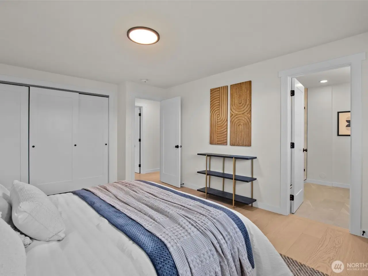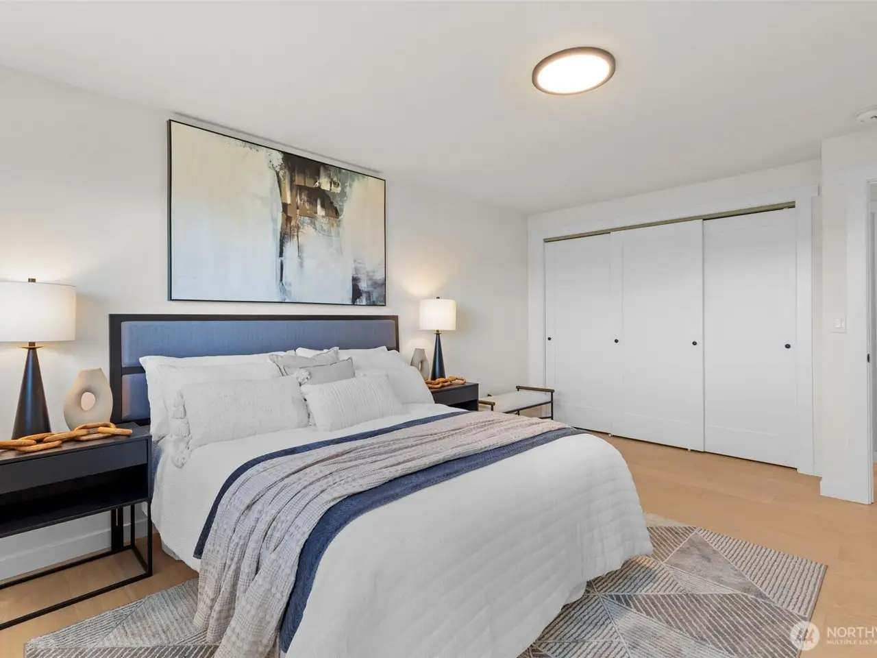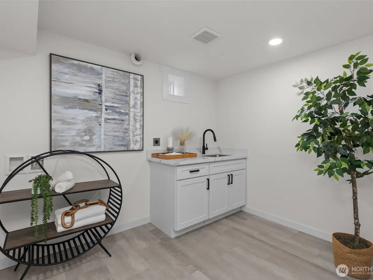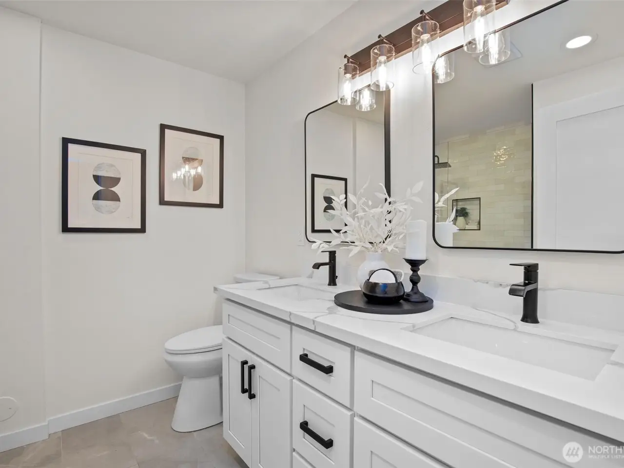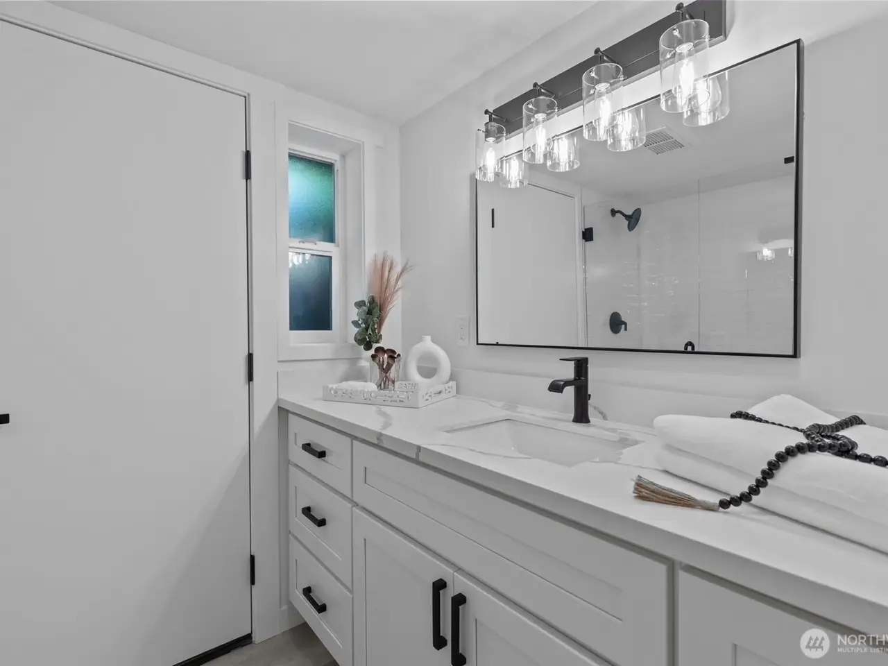 Sit on the new entertainment sized deck & enjoy views of the lake from this remodeled 4br 3ba home. Home has new wiring & plumbing. All new baths. Kitchen w/new cabinets, counter & appliances open to great room w/vaulted ceilings & gas frplc. New floors throughout. New lighting, windows, doors, millwork & trim. Primary br with private bath & door to deck. Finished room down could be study/art room. 2nd finished rm down could easily have clst added for 5th BR. Large finished storage/wine room? HUGE rec room w/gas fireplace w/room for pool table. New interior & exterior paint. New garage door. Large private fenced backyard with fruit tree. Community beach access. Close to freeways, shopping, etc. Great Bellevue schools. Highly desired location.