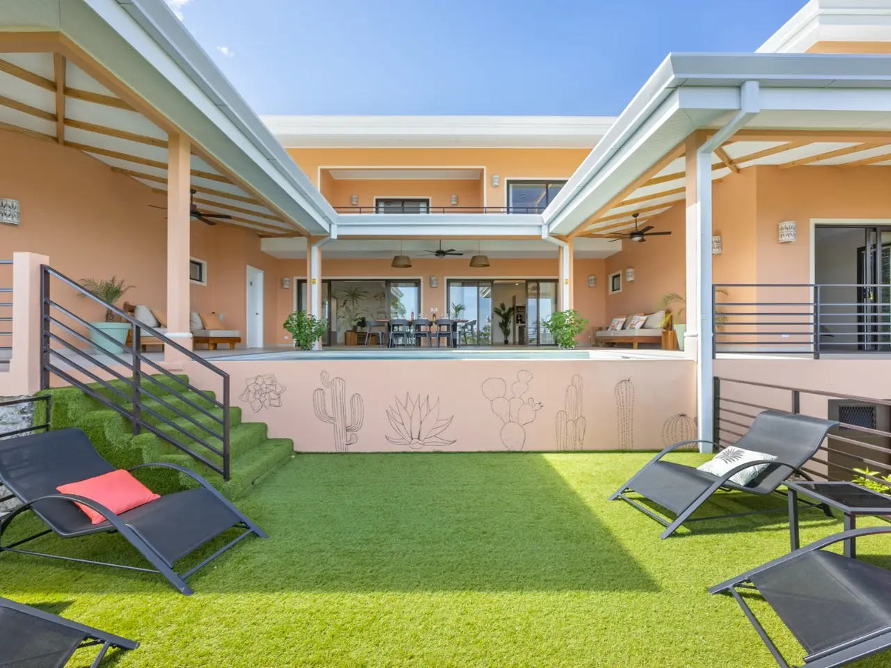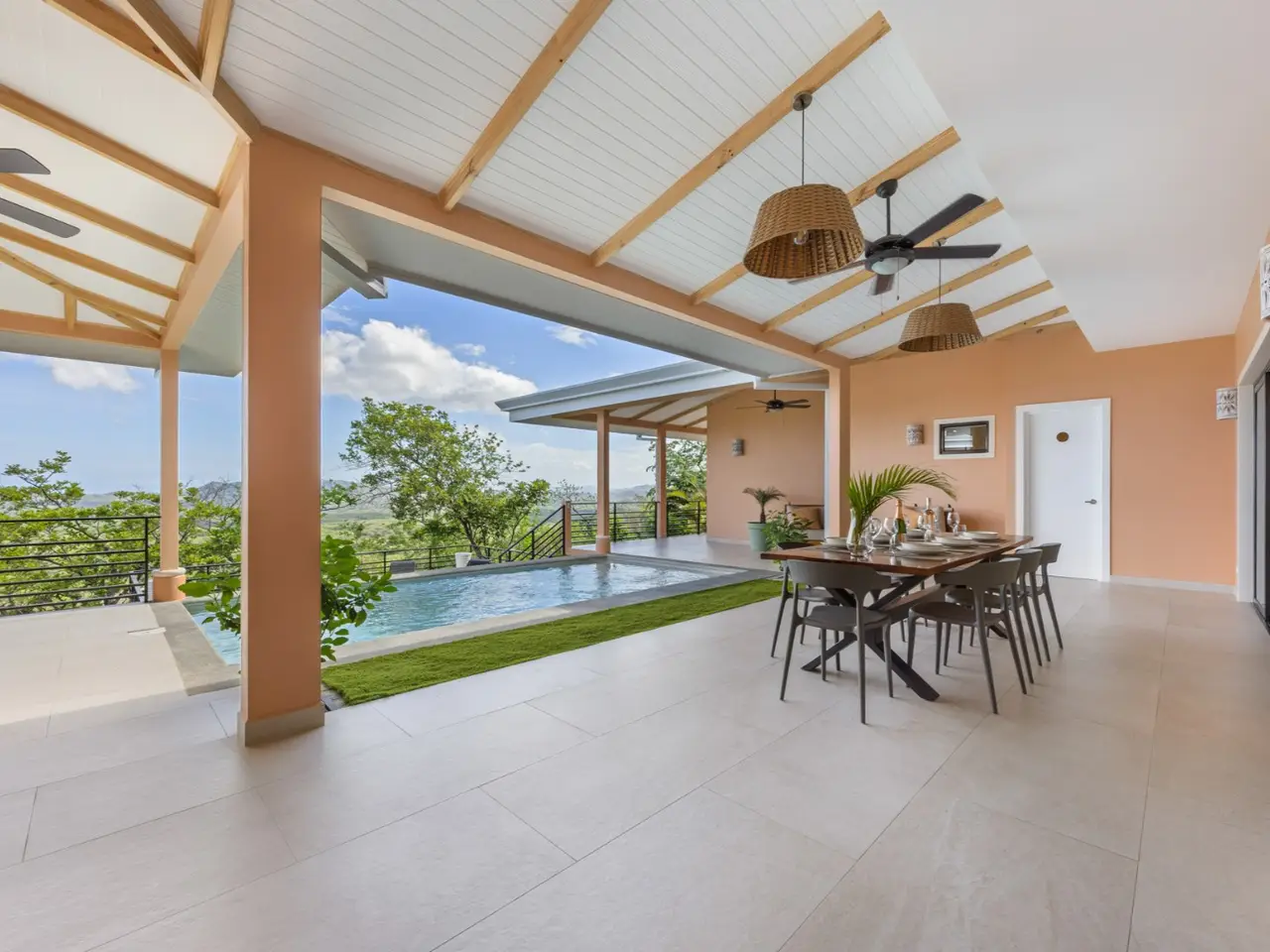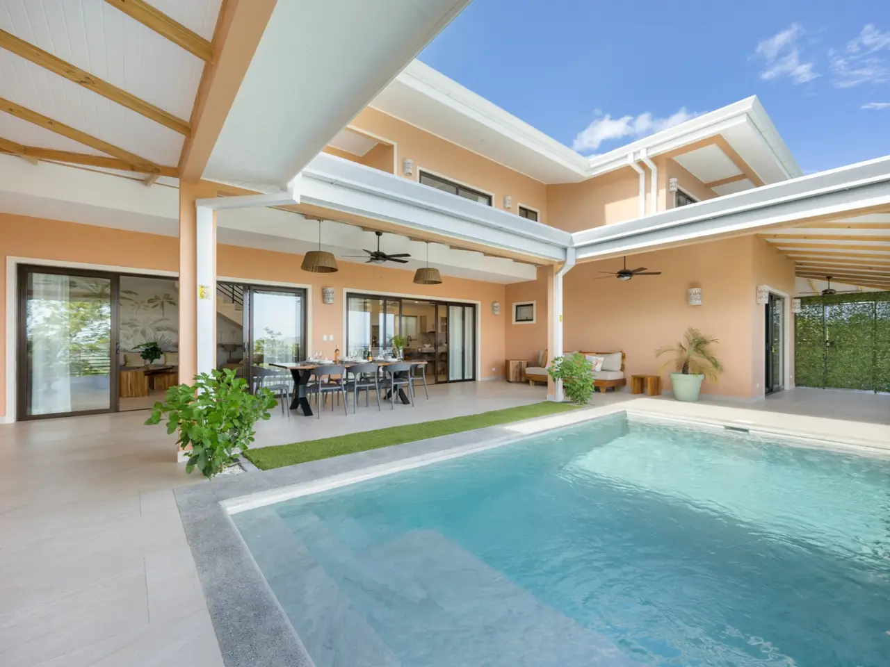 Villa Chiric – Luxury Hilltop Villa with Breathtaking Ocean Views Welcome to Villa Chiric, a stunning hilltop estate with panoramic views of Tamarindo and Playa Grande. This luxurious retreat offers the perfect balance of elegance, comfort, and tropical charm, making it ideal for family vacations, romantic getaways, or a private escape with friends. Featuring a beautifully designed main home with 4 bedrooms and 4.5 bathrooms, along with an attached but separate 2-bedroom, 2-bathroom guest casita, Villa Chiric provides ample space and privacy for all. The main villa has been decorated with care by a French interior designer, giving each room a stylish and welcoming atmosphere. All four bedrooms are spacious and have large floor to ceiling patio doors that showcase the ocean and jungle views. Each bathroom is thoughtfully finished with walk-in showers, modern fixtures, and elegant touches to create a spa-like experience. The open-concept living area flows naturally onto the outdoor terrace, with cozy seating, a flat-screen TV, and high-speed internet, making it a perfect space to unwind after a day in the sun. At the heart of the home is a fully equipped gourmet kitchen with modern appliances, ideal for cooking your favorite meals. Just a short drive away, you'll find a shopping center and the popular Automercado grocery store, offering a wide selection of international products to meet your needs. Step outside and enjoy the breathtaking infinity pool that overlooks the coastline of Playa Grande and the estuary. The large terrace is perfect for relaxing under the sun or enjoying a cocktail at sunset, with shaded areas, sun loungers, and multiple cozy seating spots. An outdoor dining area and barbecue setup make it easy to enjoy meals al fresco while taking in the views and ocean breeze. The private guest casita includes 2 additional bedrooms, 2 bathrooms, a comfortable living space, and its own kitchen. It's the perfect spot for visiting guests, extended family, or even as a rental opportunity to generate extra income. Villa Chiric is just minutes from the vibrant town of Tamarindo, famous for its surf-friendly beaches, beautiful scenery, and lively restaurants and shops. Playa Grande and nearby nature reserves are also close by, offering even more ways to explore the best of Costa Rica’s Pacific coast. With its unbeatable views, luxurious design, and prime location, Villa Chiric is a rare find in Tamarindo. Whether you’re looking for a peaceful retreat, a family home, or a smart investment, this villa delivers it all in style. Reach out today for a private showing!