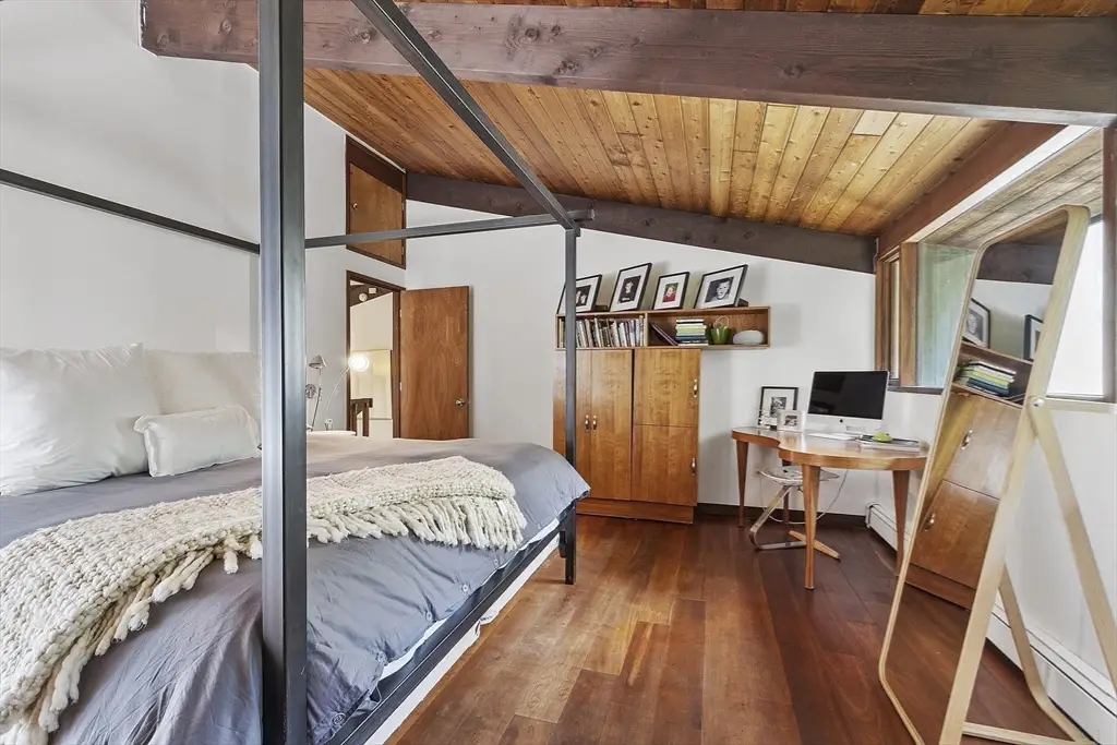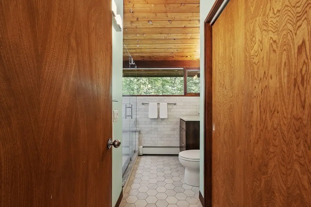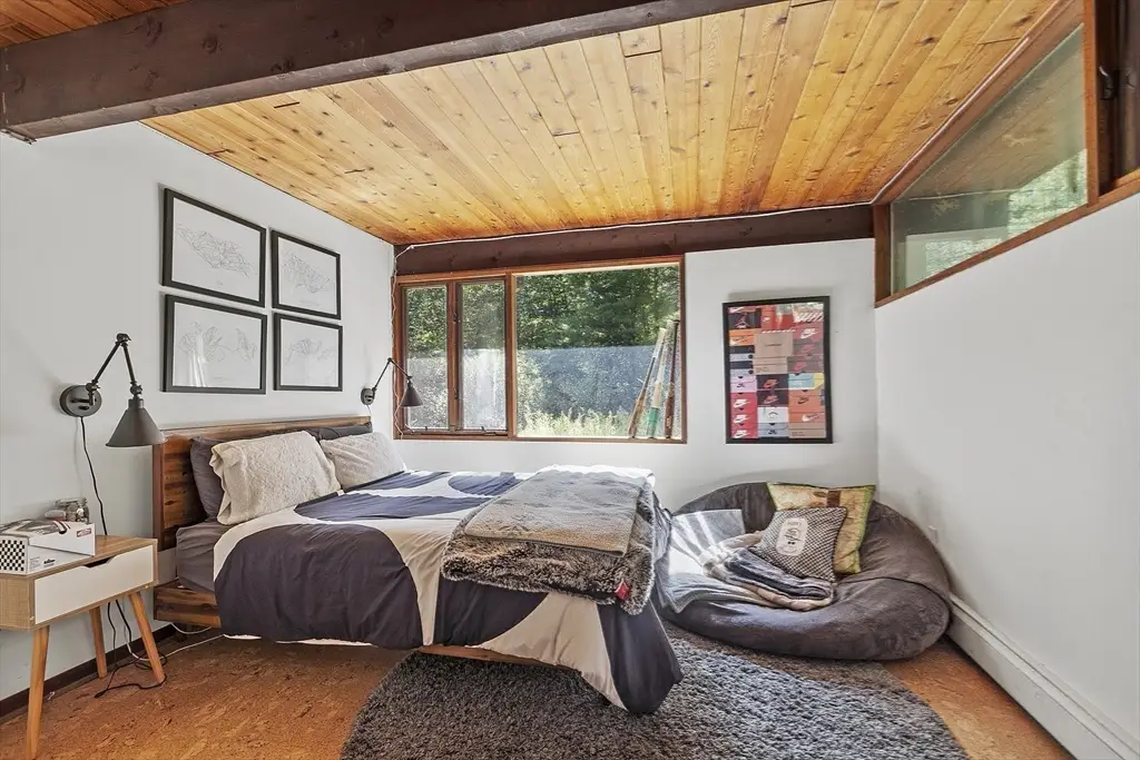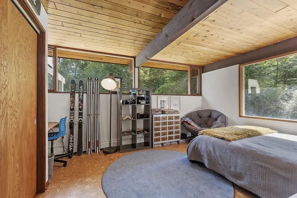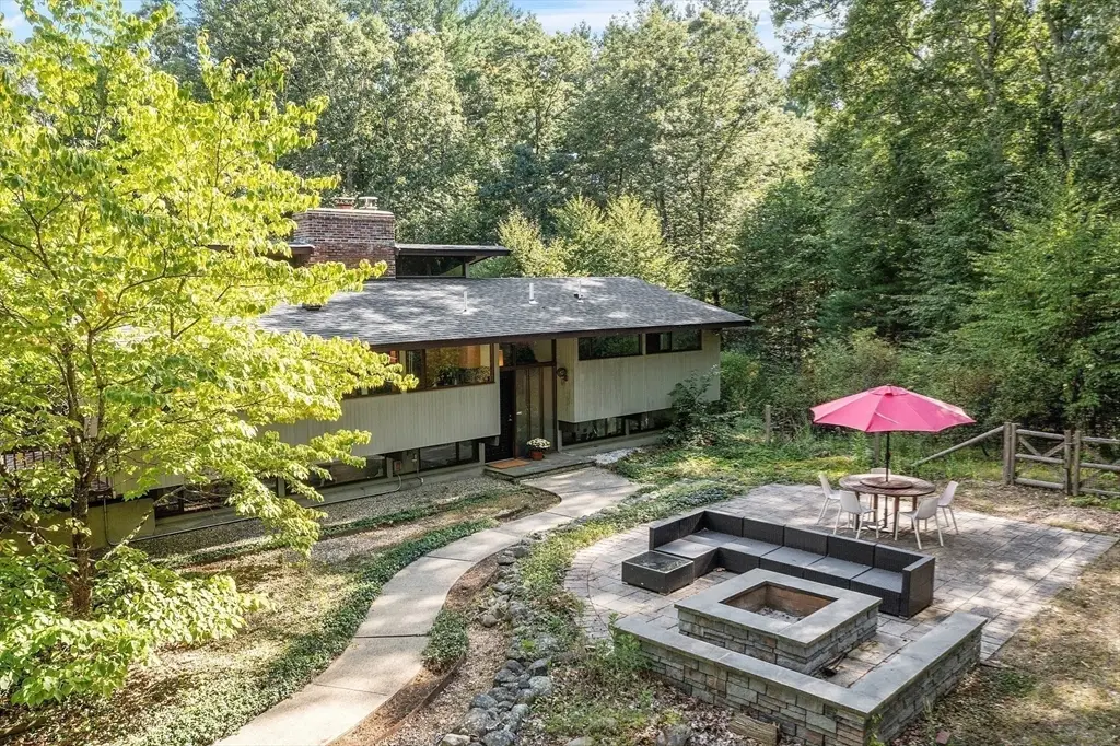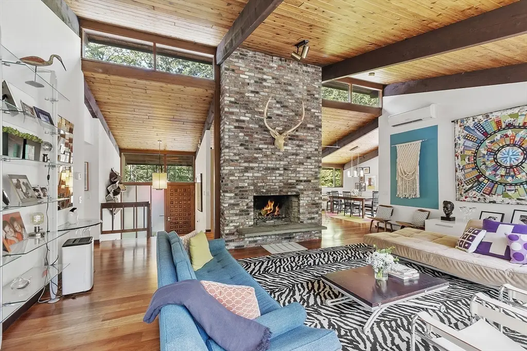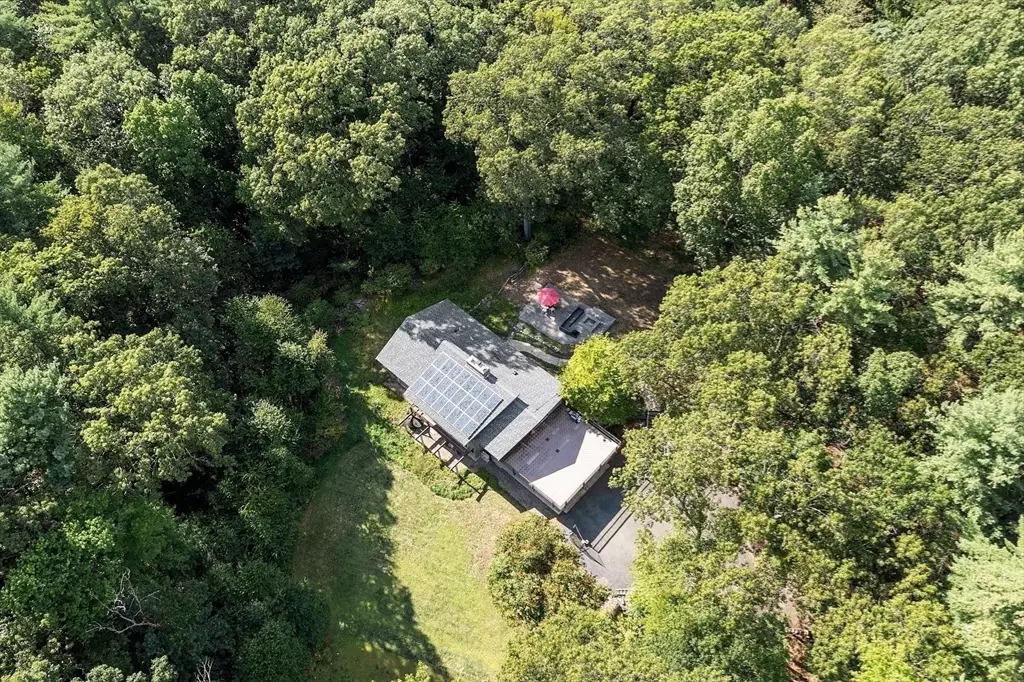 Tucked away in a serene natural setting, this contemporary 4-bedroom, 2-bath deck house is privately set on over 6 acres offers the perfect blend of modern design and tranquil living. Flooded with natural light, the open-concept first floor showcases soaring ceilings, warm wood accents, and expansive windows. A sunroom off the oversized deck provides a seamless space for entertaining, while the balcony offers peaceful views of the lush yard belowùperfect for morning coffee or quiet evenings. The chef's kitchen is a true centerpiece, featuring high-end Jenn-Air stainless steel appliances, sleek cabinetry, and ample prep space to inspire your culinary creations. With privacy, space, and style all in one, this home is a rare retreat where contemporary living meets nature's calm.