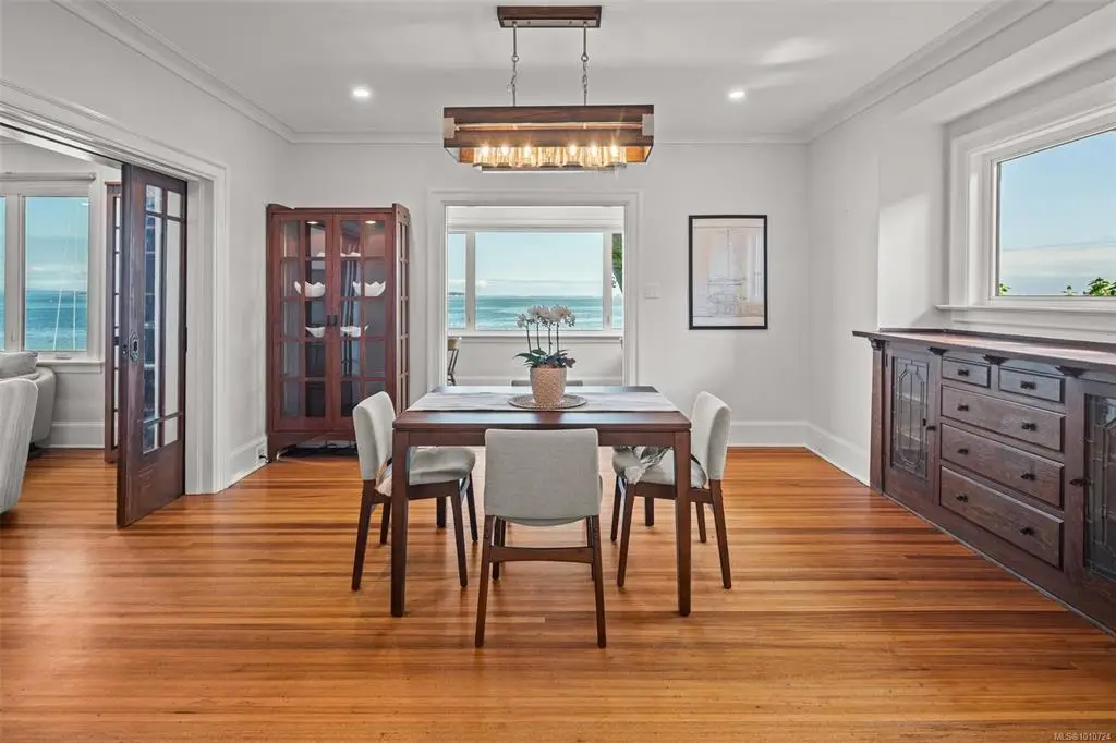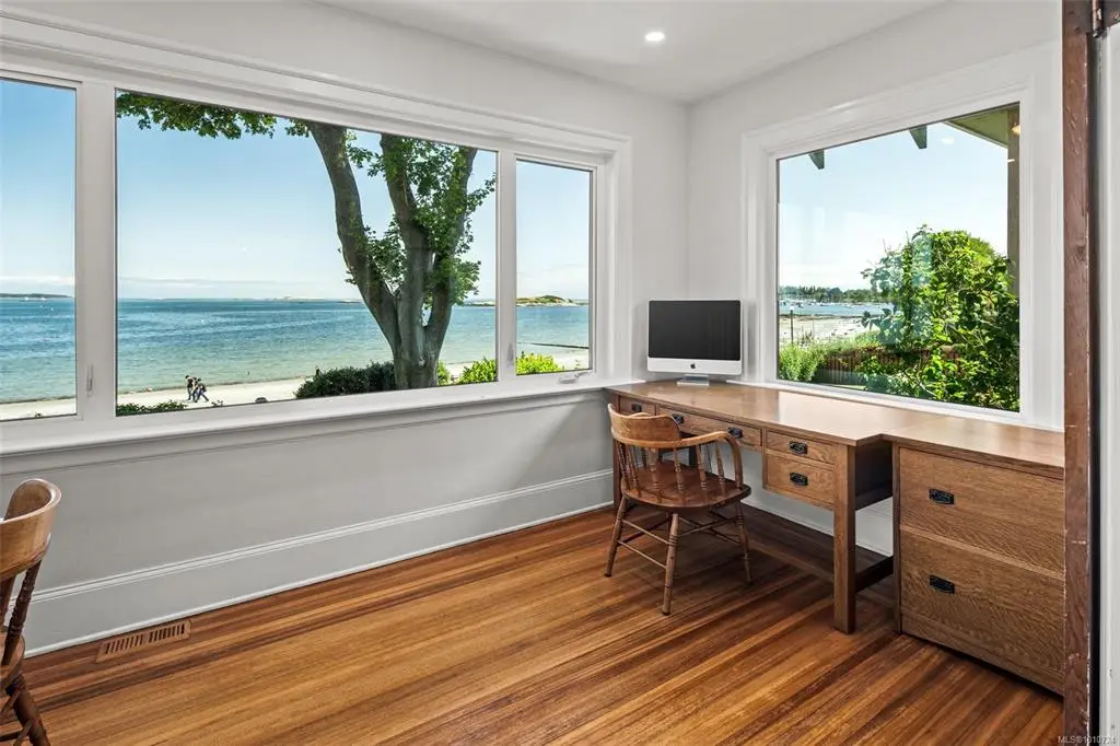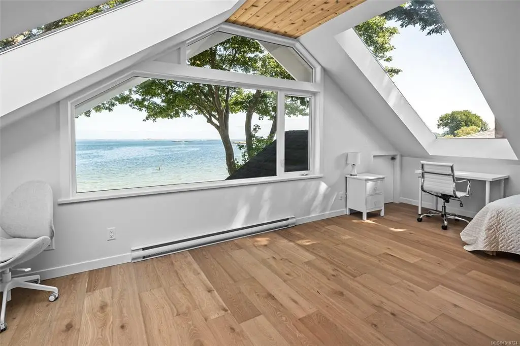 Welcome to The Esplanade – Victoria’s most beloved beachfront community. Tucked along the quiet, tree-lined side of sandy Willows Beach, this charming, fully renovated character home sits on an expansive 11,500-plus square foot lot. The primary residence offers three bedrooms, one bathroom, a custom kitchen with handcrafted rift-cut oak cabinetry, Sub-Zero appliances, in-line dining and a cozy home office with breathtaking 180° ocean views. Upstairs, the dramatic one bedroom loft suite features soaring 8-foot skylights, panoramic views and a 650 square foot rooftop patio made for sunsets. The walk-out basement includes two access points and provides room to expand or create two additional one bedroom suites. The versatile floorplan makes this an ideal multi-generational living opportunity. A private backyard filled with mature fruit trees and two separate driveways opens the door to future development. Rarely do homes come up for sale in this magical seaside setting on Willows Beach.
