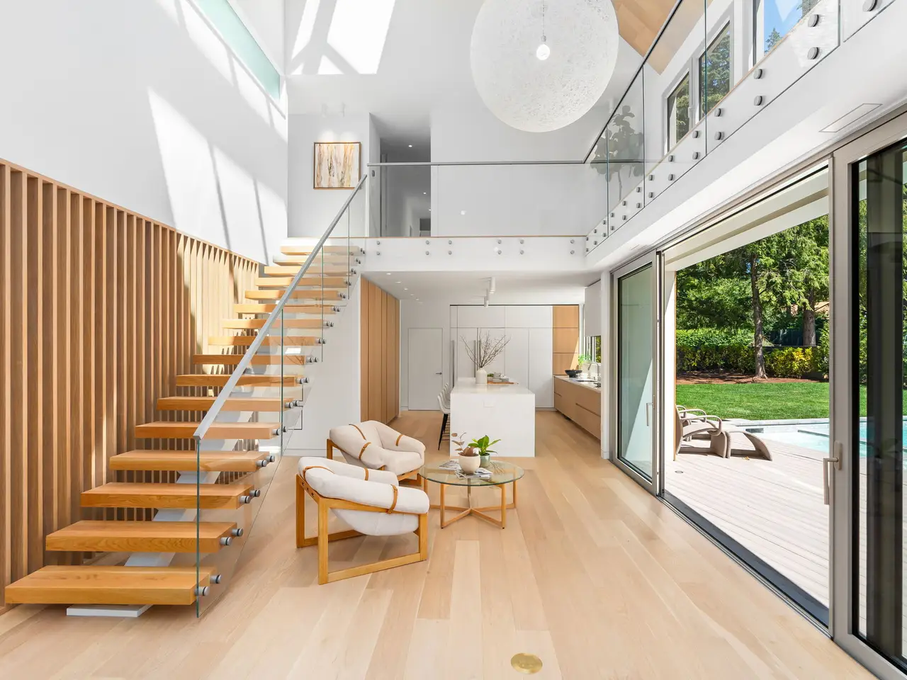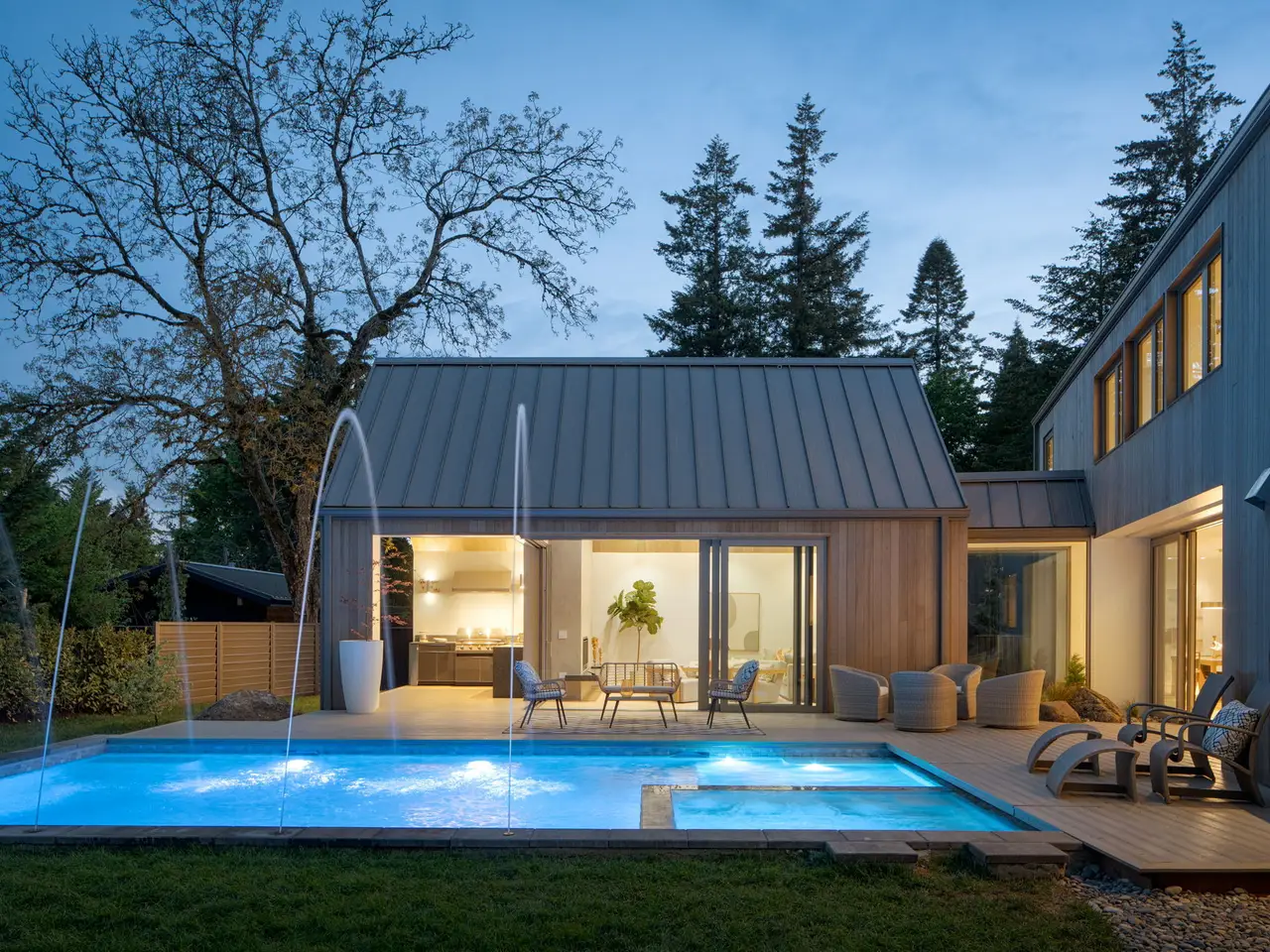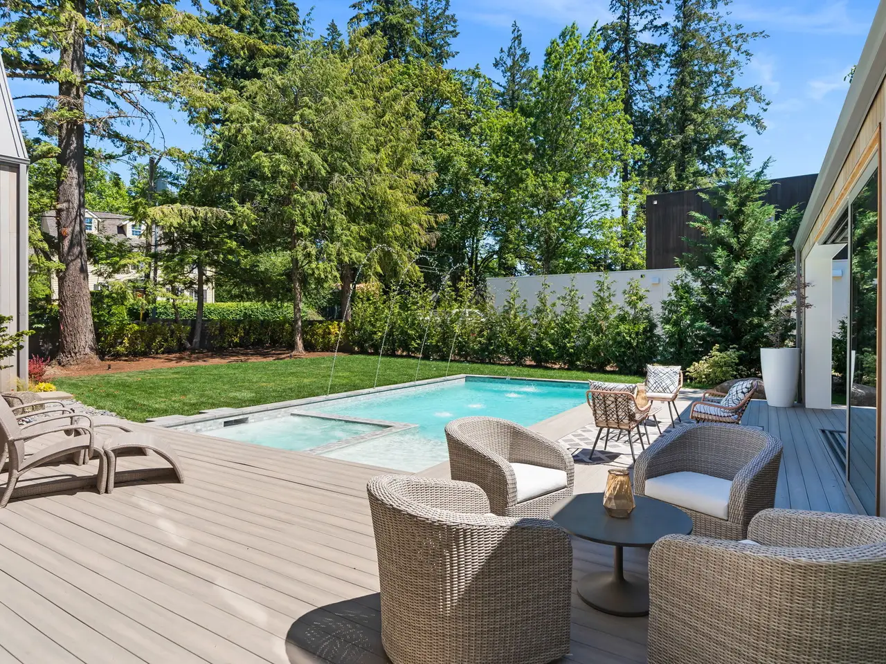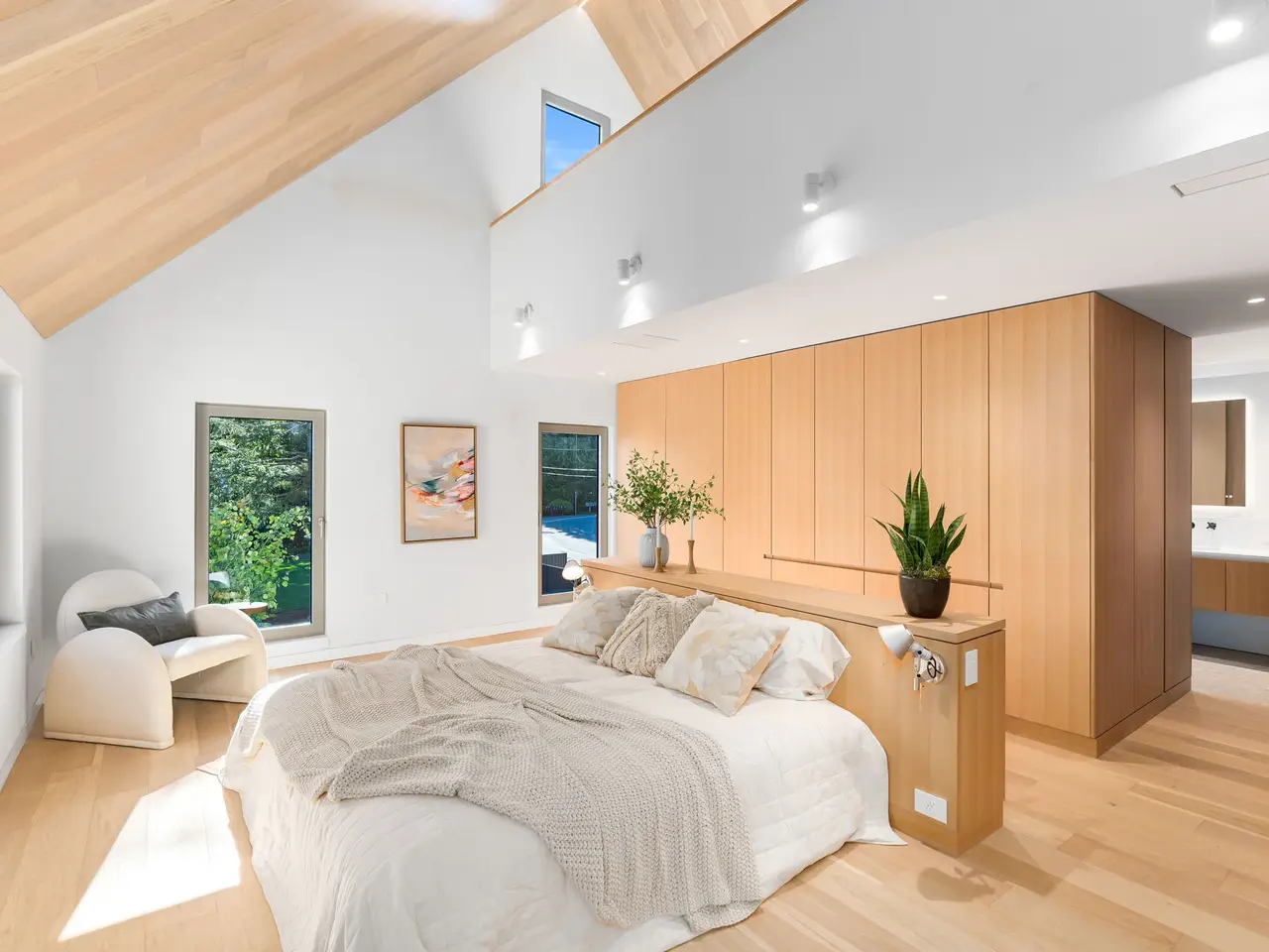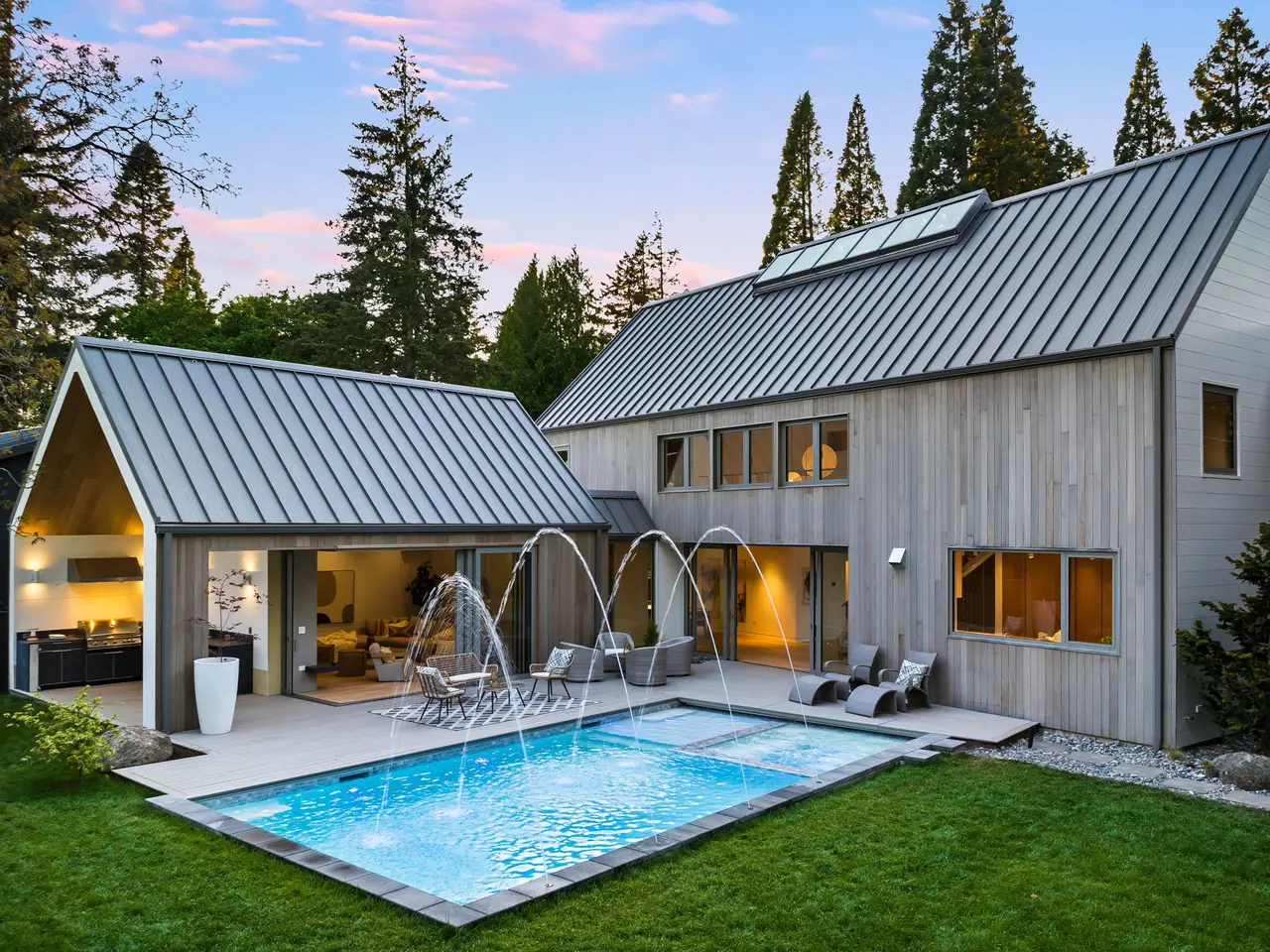 Villa M A Truly Custom Built Contemporary Scandinavian Farmhouse located in the sought-after Dunthorpe neighborhood. Stunning new construction, soaring 30-foot ceilings capped by glass, creating a light-filled living experience. Extensive use of custom white oak cabinetry throughout home, craftsmanship of a bygone era. High-end European windows and doors the pinnacle of form and function blurring the lines between interior and exterior. Transverse a glass hallway to the large living room where you're greeted by vaulted ceilings and a grand fireplace. Walls of glass part to open to the pool deck, and outdoor kitchen. Pool and spa with fountains, lighting, and automatic pool cover. Chef's kitchen with oversized island, waterfall edge, slab backsplash and high-end appliance package. Upper-level bedrooms with built-in closets and functional loft spaces, taking advantage of the opportunity presented by the voluminous vaulted ceilings. Primary suite with expansive built-in closet system, walls wrapped in white oak, primary bath with spacious wet room. Main level study with adjoining full bath and zero edge shower entry provide flexibility with accessibility. Sleek clean finishes, lighting choices, museum reveal baseboards, and zero trim doorways all flawlessly crafted and executed to compliment the refreshingly high-end modern aesthetic. Why wait to build? When you can have it all today!