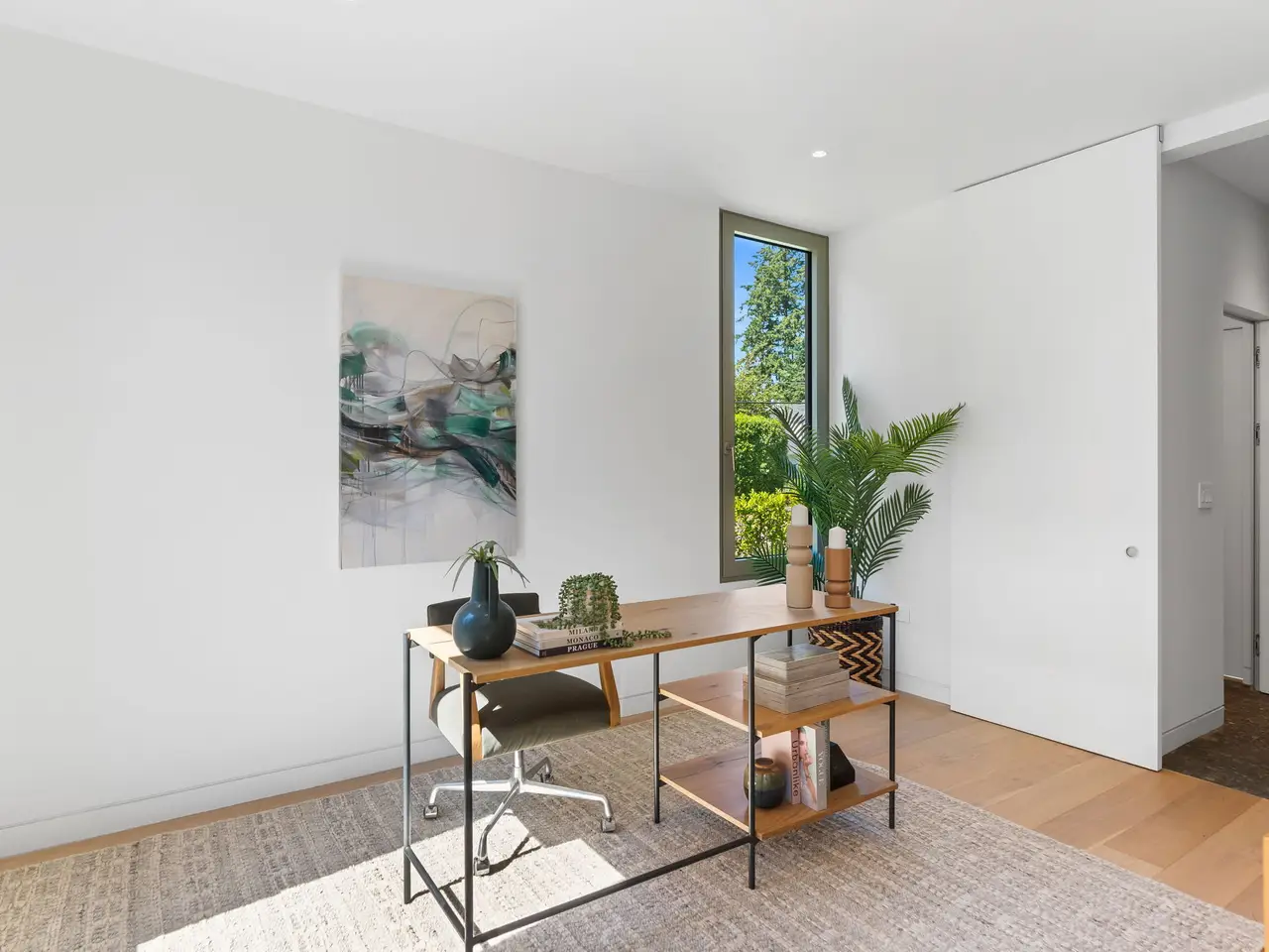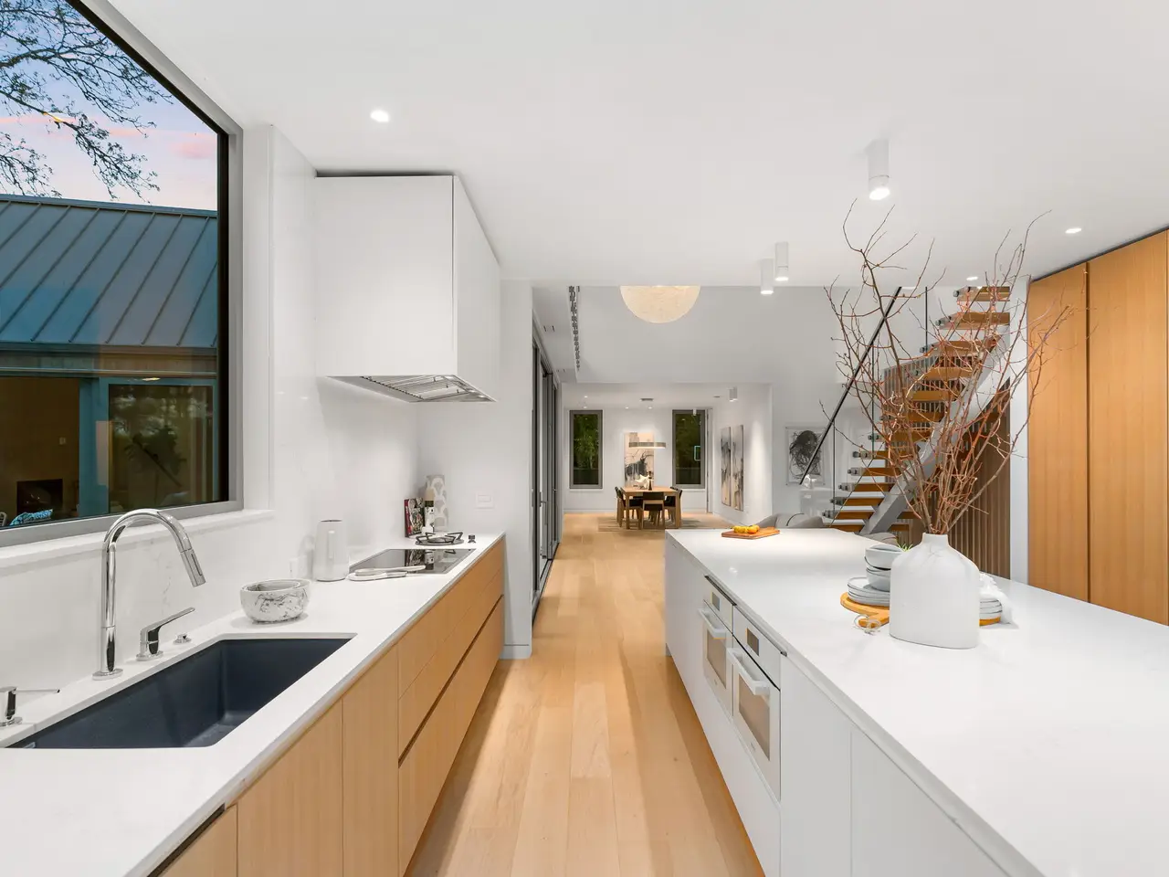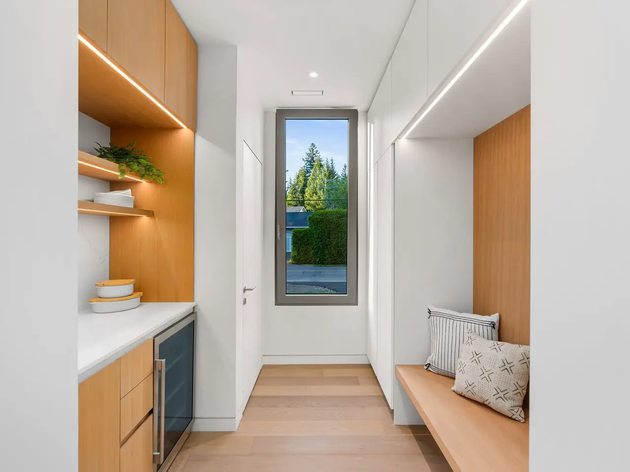 • Custom white oak cabinetry