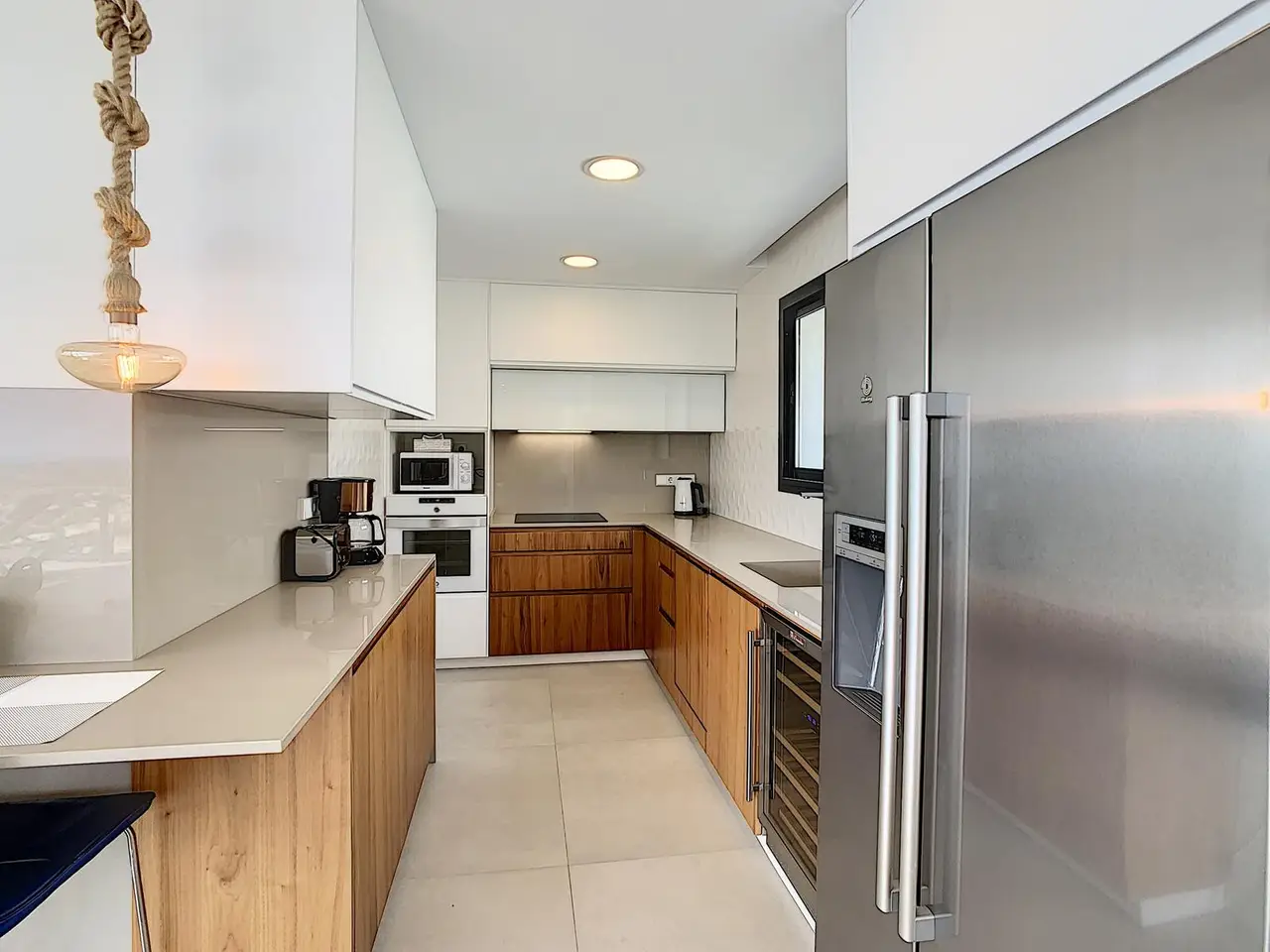 This impressive villa is located in the Cumbre del Sol development, in Benitachell, Alicante, offering a privileged setting with sea views and a design that combines comfort and elegance. This property stands out for its functionality and attention to detail. The main floor has 3 bedrooms, the main one with a fireplace and en-suite bathroom, 2 double bedrooms, an additional bathroom and a guest toilet, ensuring comfort for the whole family and guests. The kitchen is fully equipped and functionally connects with the common areas, offering an ideal space to enjoy moments in company. On the lower floor there is a spacious studio consisting of a large bedroom with a living area, a bathroom and access to a terrace with sea views, an area that provides privacy and independent accommodation. Among the outstanding features of this property are air conditioning, underfloor heating throughout the house, built-in wardrobes and a fireplace that brings warmth to the main living room. It also has a laundry room and a storage room. Fiber optic internet connection is another element that makes this villa a modern and practical option. A private garden surrounding the exclusively designed pool, ideal for enjoying the Mediterranean climate. Although it does not have a garage, the outdoor space offers parking options. This well-maintained property is perfect for those looking for a home that combines luxury, comfort and a privileged location with sea views.