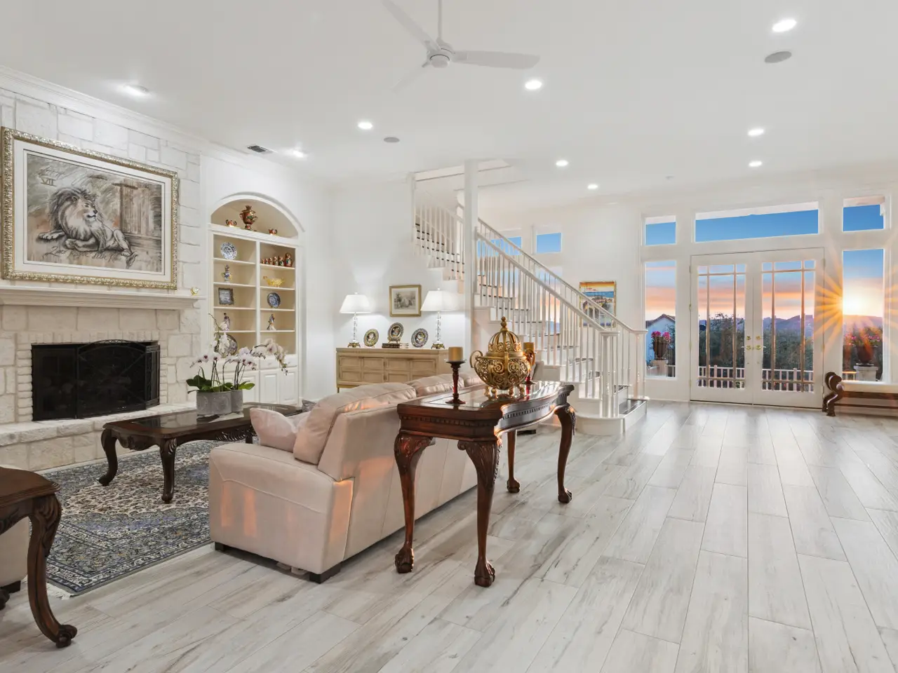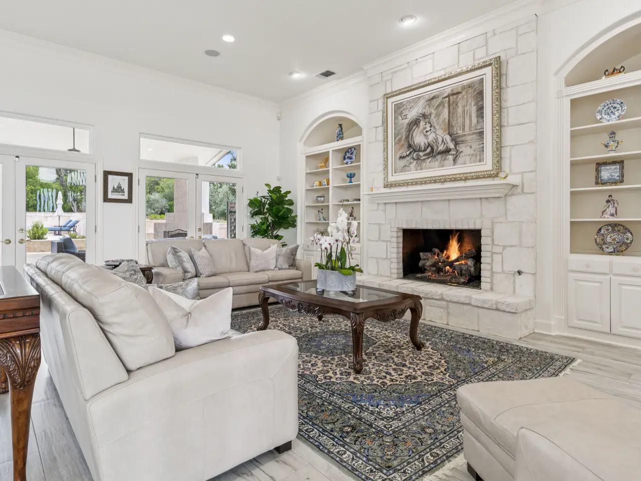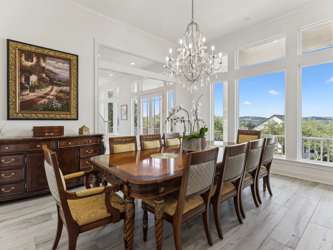 Welcome to this meticulously transformed home, perfectly situated in the heart of The Dominion. Designed for both grand entertaining and a private retreat, this residence blends modern sophistication with timeless elegance. Step inside to soaring ceilings, abundant natural light & immediate views of the outdoors. Walls of glass open seamlessly to a resort-style living space featuring an outdoor fireplace, covered patios & panoramic city views. Anchoring the property is an award-nominated 40® x 20® Cody lap pool with elegant travertine decking & dramatic lighting, a true center piece for entertaining day or night. The modern kitchen offers custom cabinetry, granite countertops & updated appliances, while Italian porcelain tile flooring flows throughout. Every bathroom has been elegantly redesigned with timeless finishes. Fresh paint, enhanced architectural lighting inside and out & energy-efficient Low-E Pella windows add comfort and peace of mind. Terraced balconies span over 700 square feet on two levels, providing the perfect setting for phenomenal views for sunset gatherings or quiet morning sunrises. A versatile 705 sq. ft. guest apartment with full bath, set privately above the garage, is ideal for family, an executive office, or an au pair suite. Designed by top-rated landscape architect Bronson Blue, the tree-lined grounds offer fabulous curb appeal and unmatched privacy, with direct adjacency to Camp Bullis & sweeping hilltop views. This is a rare opportunity to own a home that is move-in-ready, balancing prestige, craftsmanship & a lock-and-leave lifestyle in The Dominion. - 10/31/2025 8:00:54 AM