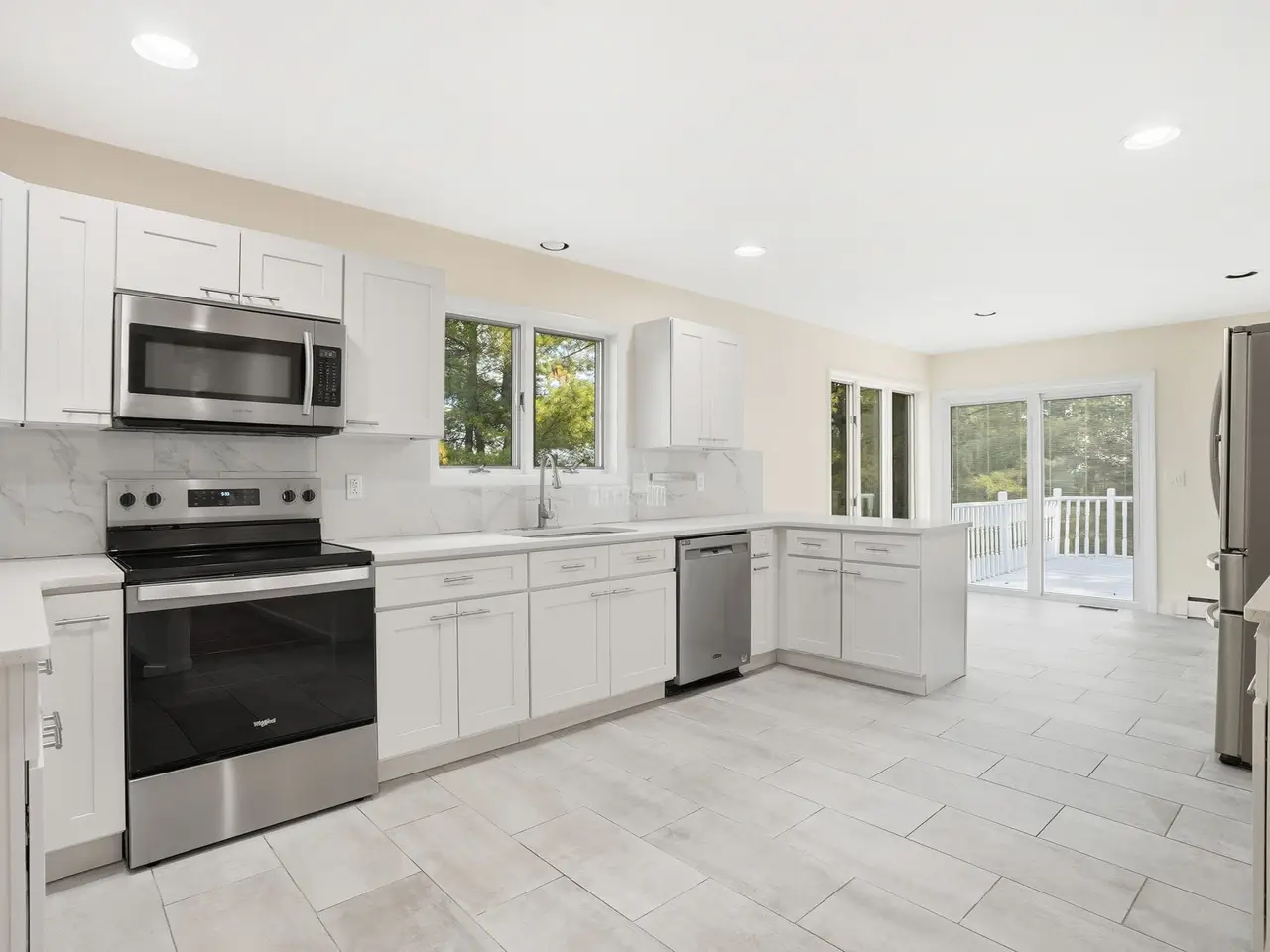 Stunning contemporary home with views! Welcome to this sun-drenched 4 bedroom, 4.5 bath contemporary-style home offering over 3200 square feet of beautifully updated living space with generously proportioned rooms. Set on landscaped property with seasonal reservoir views, this striking home features a two-story entry, soaring ceilings, skylights, and hardwood floors throughout. The fabulous updated kitchen and bathrooms showcase modern finishes, quartz countertops, stainless steel appliances, and thoughtful design. Every detail reflects quality and care, creating a welcoming ambiance. The main level primary suite is a luxurious retreat with a spa-like en-suite bath, while a second en-suite bedroom upstairs offers flexibility as an alternate primary. The heart of the home is a family room with fireplace and sliding glass doors that open to a large deck-perfect for entertaining, dining al fresco, or enjoying peaceful natural surroundings. Additional features include a semi-finished walkout basement with a full bath (approx. 1,000 sq. ft. with CO in place and not included in sq. ft.), ideal for a playroom, guest space, or home office. Brimming with natural light and contemporary charm, this beautiful home offers comfort, style, relaxed living, formal or casual entertaining all in a prime Somers location. Above ground oil tank 2025. Convenient to Metro North train, shops, restaurants and major thoroughfares. Rooms virtually staged.