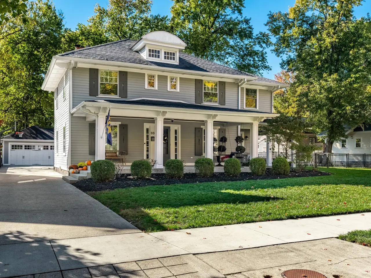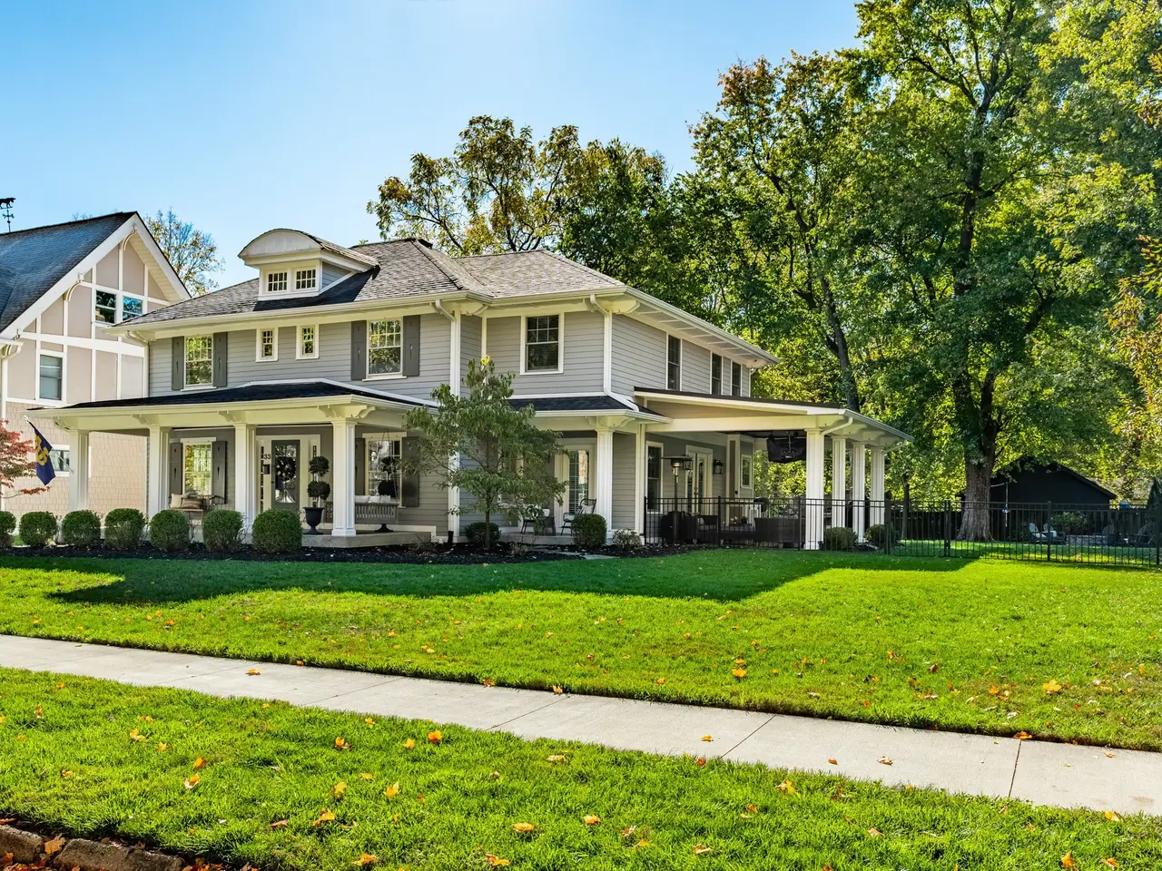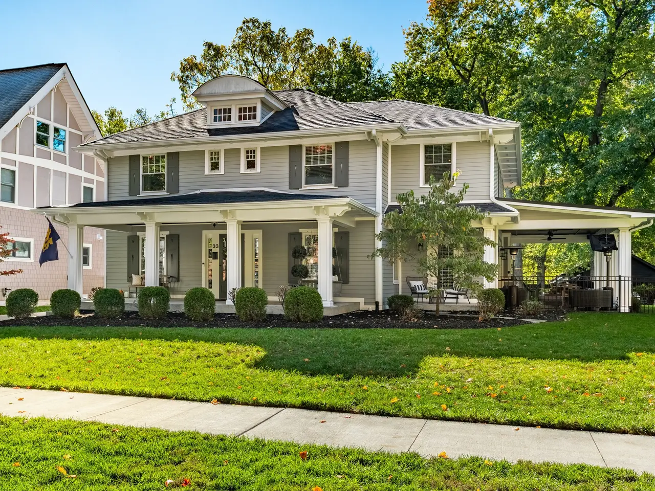 Indulge in this exquisitely renovated residence, a true gem nestled within the prestigious and historic enclave of Butler Tarkington. This exceptional home presides over a serene block characterized by immaculately manicured lawns and the gracious welcome of deep, wide front porches. Step inside to discover a world where history meets contemporary luxury. Original hardwood floors, meticulously preserved, span the main level, leading you through formal living and dining rooms designed for sophisticated entertaining. The handsome living room is a study in refined comfort, anchored by a warm gas fireplace and flanked by bespoke built-ins-a magnificent setting for gatherings both intimate and grand. An inspired architectural transformation has seamlessly opened the kitchen, family, and dining spaces, cultivating a warm, welcoming contemporary flow. This airy design is bathed in natural light, illuminating exquisite details at every turn. The extraordinary gourmet kitchen is the heart of the home, a culinary masterpiece equipped with dual dishwashers, a professional six-burner gas range, and an expansive center island-all featuring high-end appointments tailored for the most discerning chef. Every detail of the main level has been meticulously planned, from the tucked-away family command center to the convenient mudroom and chic half bath by the rear entry. The upper level is crowned by a terrific primary suite, an ensuite bathroom that serves as a private, retreat-like sanctuary, and a large custom closet. This luxurious haven extends its charm to a private balcony offering tranquil views over the spacious rear grounds. Set on a rare one-third acre parcel, the surrounding estate is equally distinctive. Guests are greeted by a large covered front porch, while a private side porch offers an elegant space for al fresco dining or viewing a game in comfort. The detached garage has been thoughtfully renovated to incorporate a dedicated office space. Absolutely flawless!