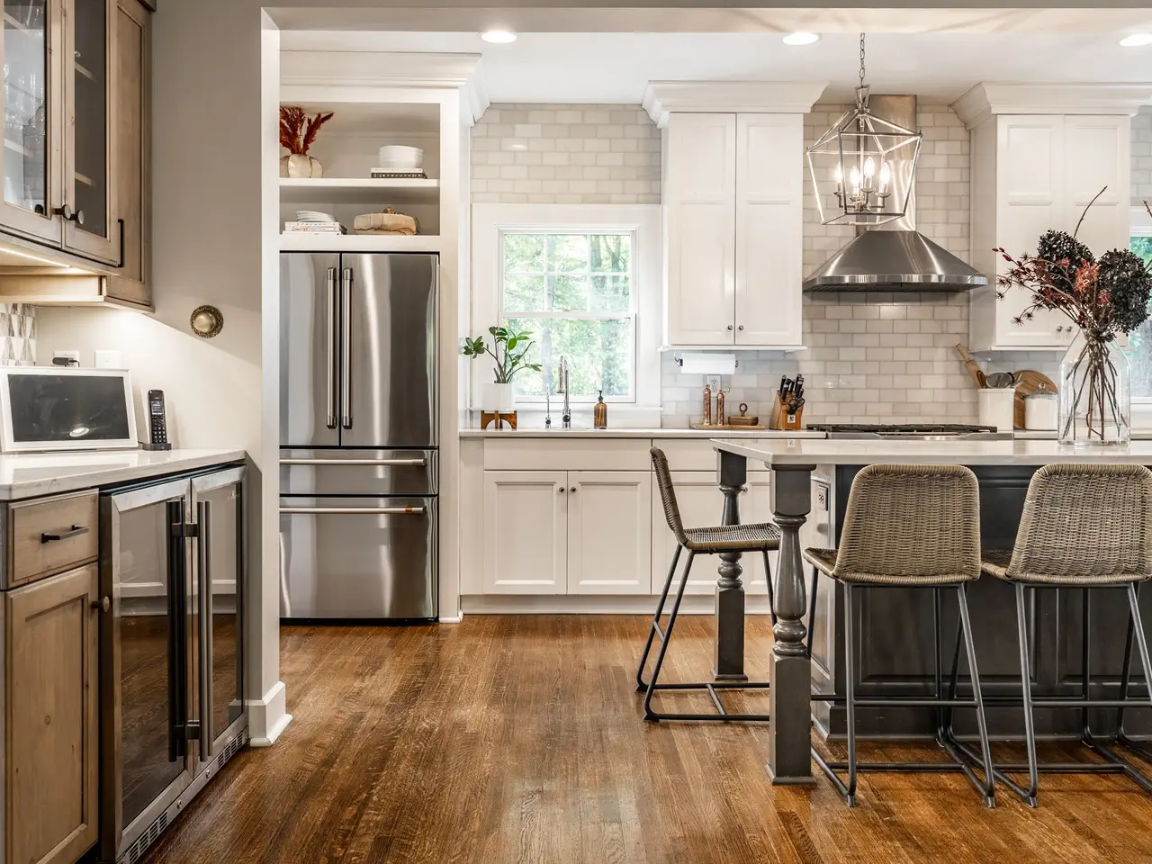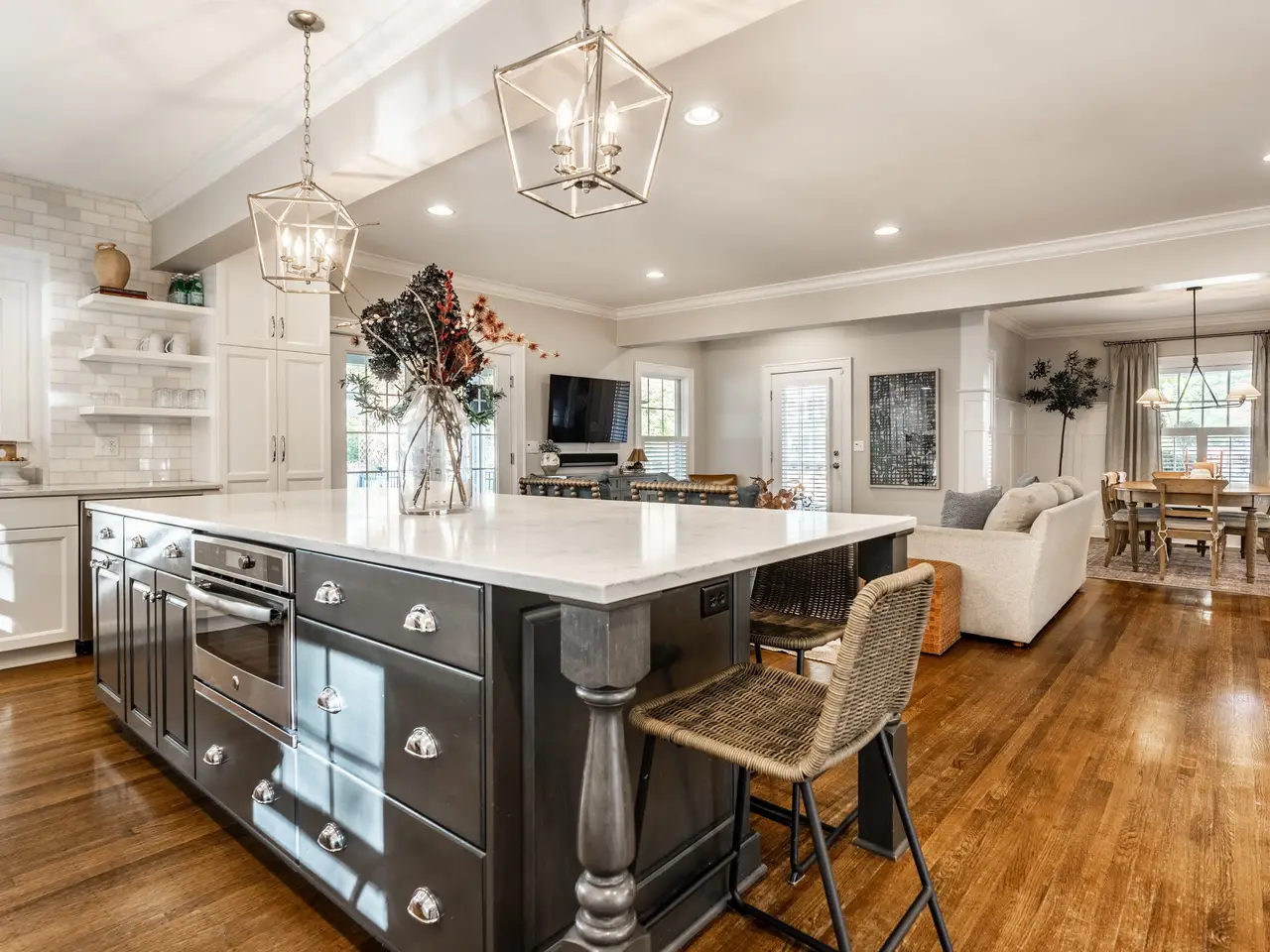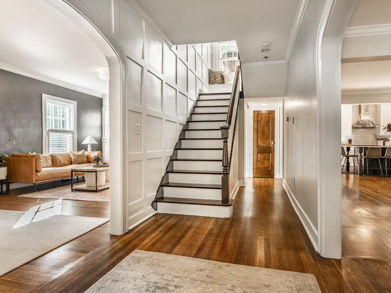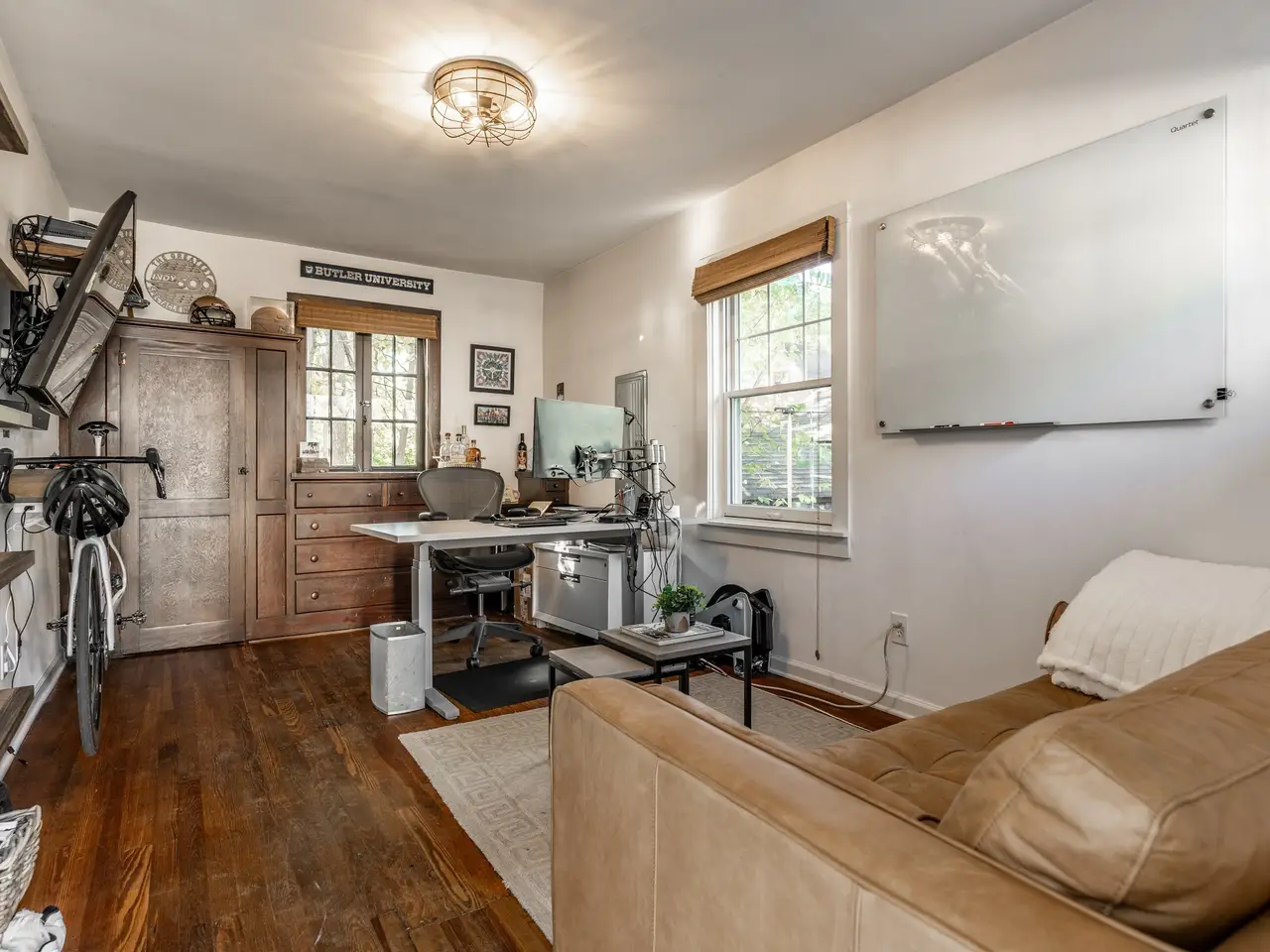 Indulge in this exquisitely renovated residence, a true gem nestled within the prestigious and historic enclave of Butler Tarkington. This exceptional home presides over a serene block characterized by immaculately manicured lawns and the gracious welcome of deep, wide front porches. Step inside to discover a world where history meets contemporary luxury. Original hardwood floors, meticulously preserved, span the main level, leading you through formal living and dining rooms designed for sophisticated entertaining. The handsome living room is a study in refined comfort, anchored by a warm gas fireplace and flanked by bespoke built-ins-a magnificent setting for gatherings both intimate and grand. An inspired architectural transformation has seamlessly opened the kitchen, family, and dining spaces, cultivating a warm, welcoming contemporary flow. This airy design is bathed in natural light, illuminating exquisite details at every turn. The extraordinary gourmet kitchen is the heart of the home, a culinary masterpiece equipped with dual dishwashers, a professional six-burner gas range, and an expansive center island-all featuring high-end appointments tailored for the most discerning chef. Every detail of the main level has been meticulously planned, from the tucked-away family command center to the convenient mudroom and chic half bath by the rear entry. The upper level is crowned by a terrific primary suite, an ensuite bathroom that serves as a private, retreat-like sanctuary, and a large custom closet. This luxurious haven extends its charm to a private balcony offering tranquil views over the spacious rear grounds. Set on a rare one-third acre parcel, the surrounding estate is equally distinctive. Guests are greeted by a large covered front porch, while a private side porch offers an elegant space for al fresco dining or viewing a game in comfort. The detached garage has been thoughtfully renovated to incorporate a dedicated office space. Absolutely flawless!