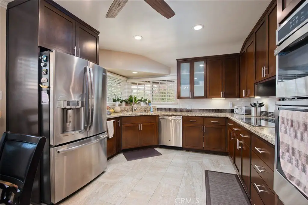 Welcome to this elegant single-level residence, ideally situated South of the Boulevard in one of Encino’s most sought-after locations. Set above the street for added privacy and curb appeal, this home offers an exceptional layout designed for both comfort and entertaining. Step through the formal entry into a grand living room anchored by its central fireplace, flowing seamlessly into the expansive formal dining area—perfect for gatherings and celebrations. Enjoy a culinary experience in the updated contemporary kitchen, complete with custom cabinetry, stainless steel appliances, granite countertops, and a sunlit breakfast area. The warm and inviting family room is enhanced by rich wood-beamed ceilings, cozy fireplace, classic built-in bar, and a versatile office retreat—ideal for working from home or unwinding with family. Outfitted with three generously sized bedrooms, including a sprawling primary suite with a sitting area, dual closets (walk-in and wardrobe), dressing area, and a luxurious spa-inspired bath showcasing a freestanding soaking tub, seamless glass two-person shower, and private commode room. Step outside to enjoy an ultra-private backyard oasis, featuring expansive open and covered patio areas, updated pavers, stacked stone accents, and a true swimmer’s pool surrounded by lush mature landscaping—creating the perfect space for relaxation and entertaining. Located just moments from Lanai Road Elementary School, along with convenient Westside access. Dont miss your opportunity to call this exceptional Encino residence home!