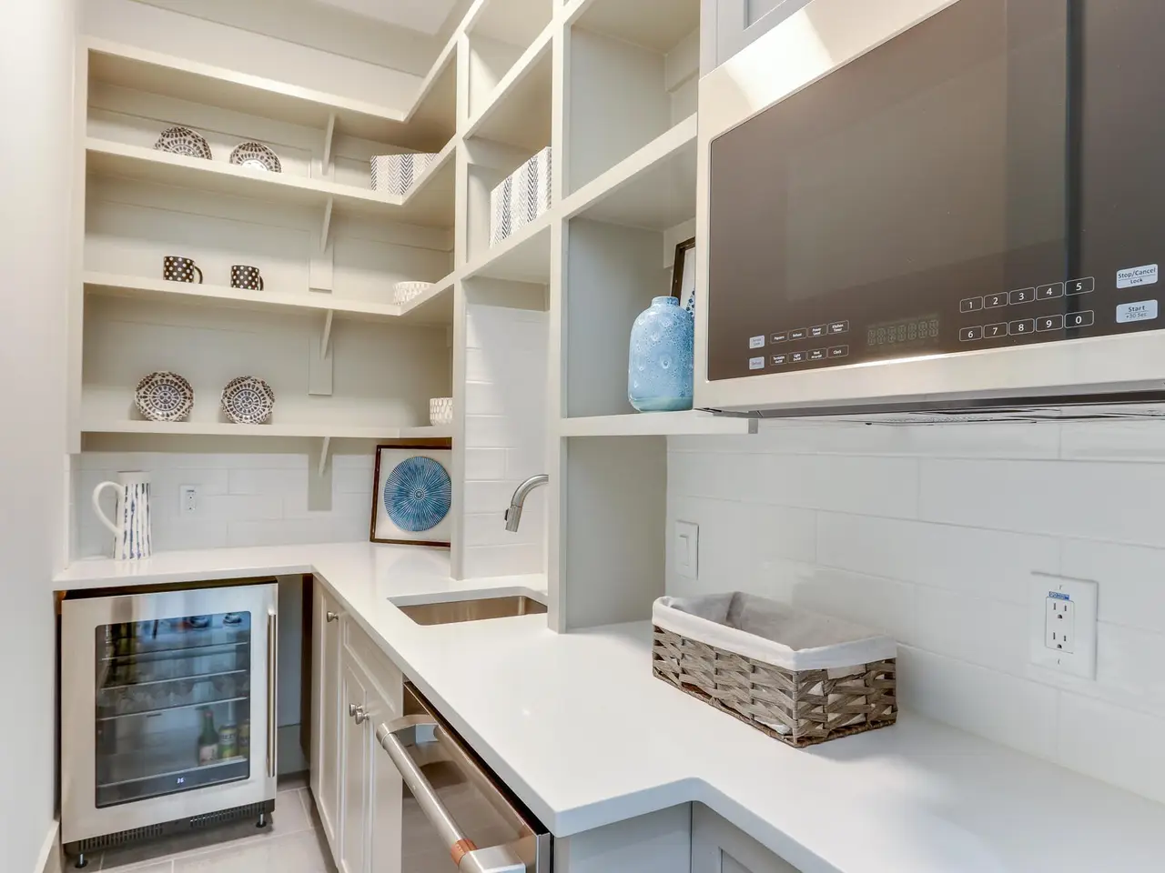 Hidden scullery with double-drawer dishwasher and beverage fridge