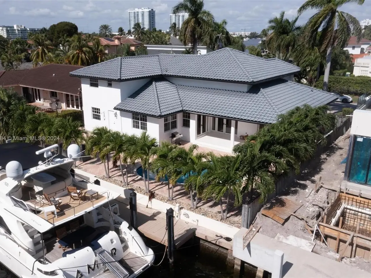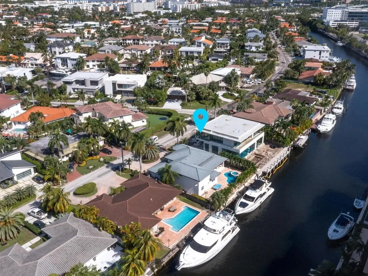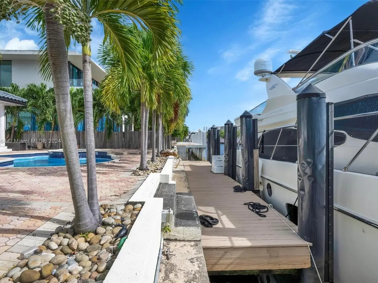 Welcome to this stunning 5-bedroom, 4-bathroom waterfront masterpiece in the prestigious, guard-gated community of Eastern Shores. With direct ocean access and no fixed bridges, this property offers the ultimate in luxury and convenience for boating enthusiasts, featuring a private dock capable of accommodating an 80-foot yacht and a Wave runner elevator lift for added water sport enjoyment. Designed with modern elegance, this home boasts soaring high ceilings, exquisite marble flooring, and premium granite countertops throughout. Hurricane-impact windows ensure safety and peace of mind, while the home is also equipped with 4 separate A/C zones, a heated pool, and a relaxing spa to elevate your living experience.