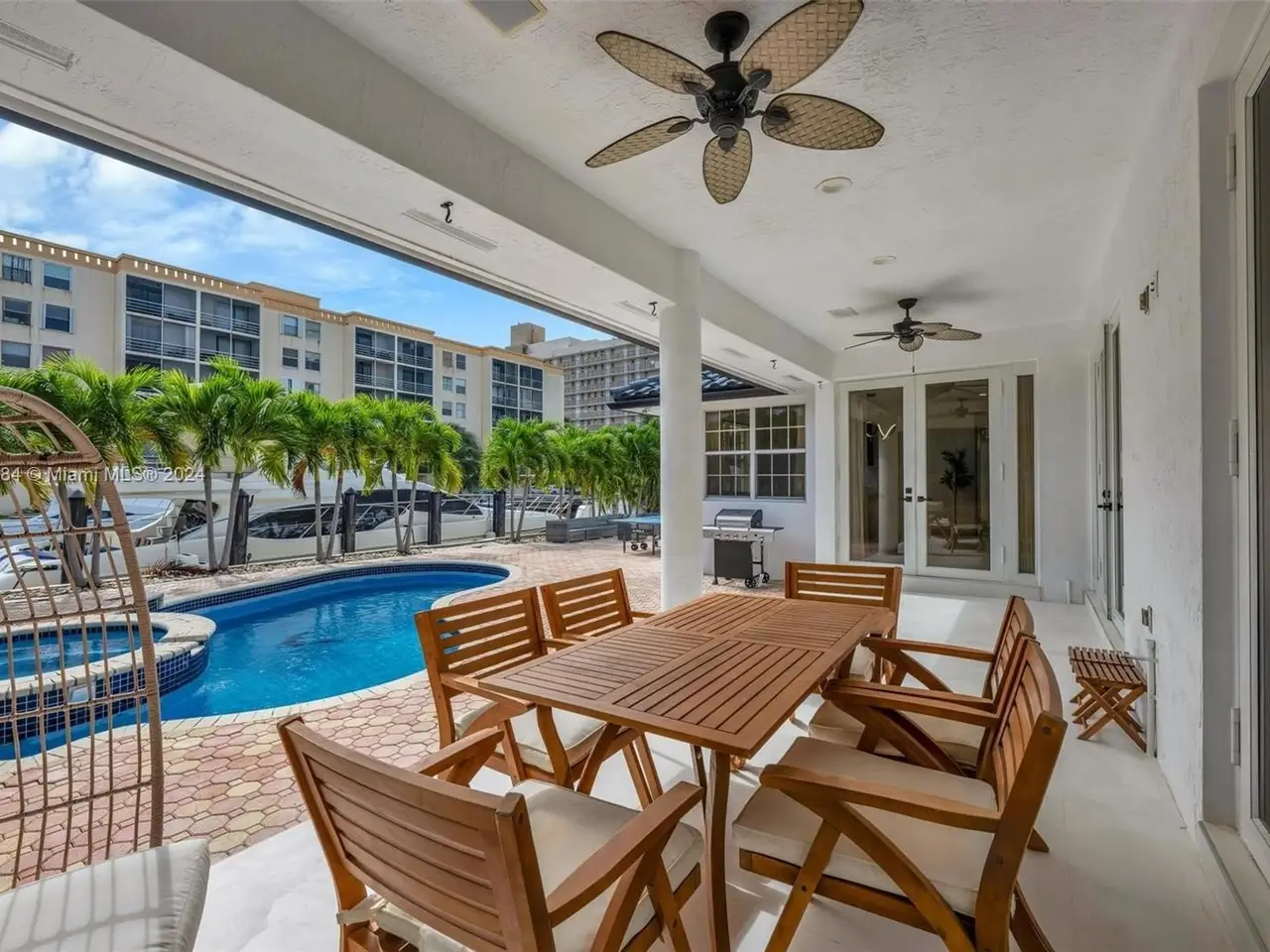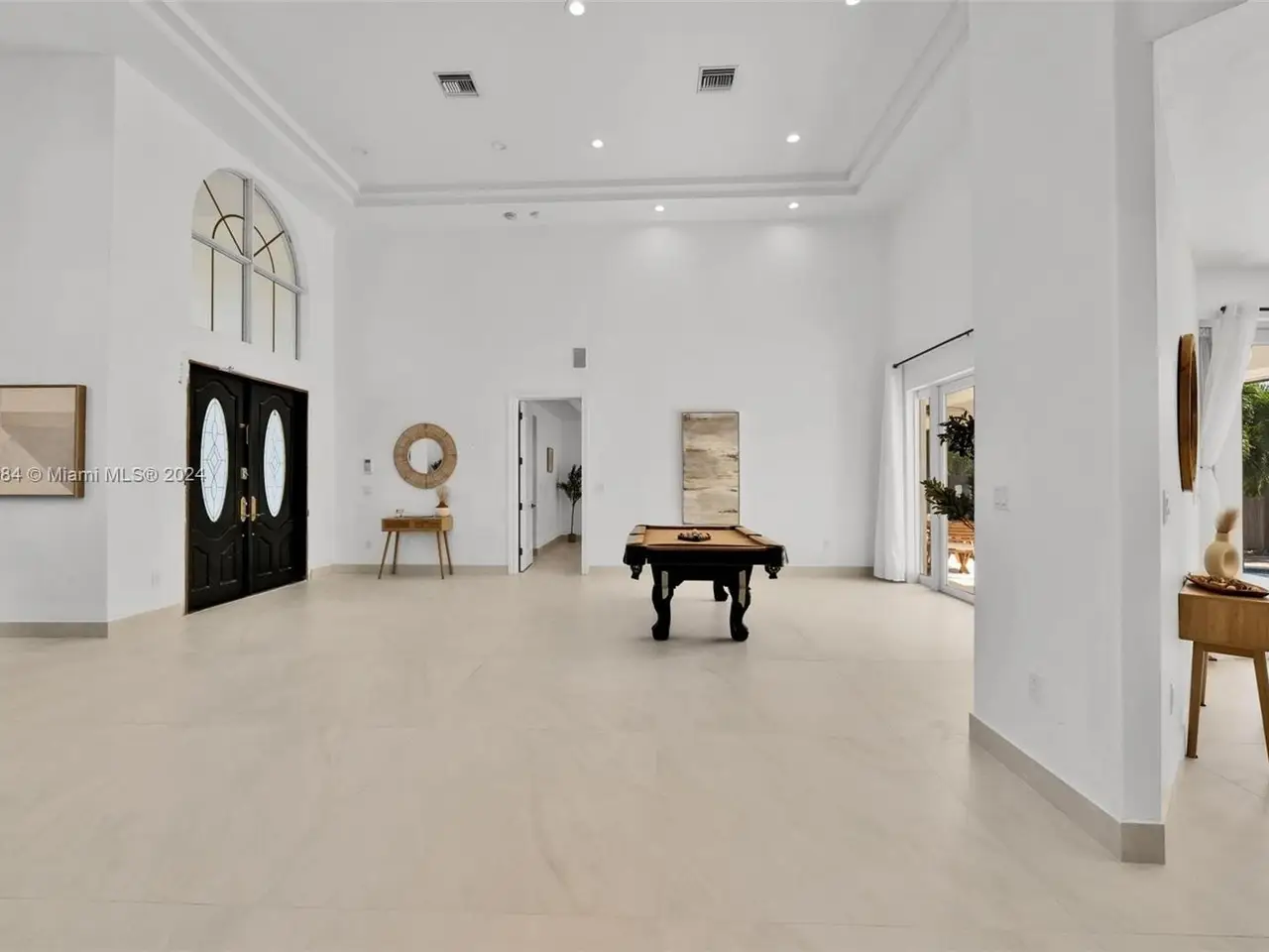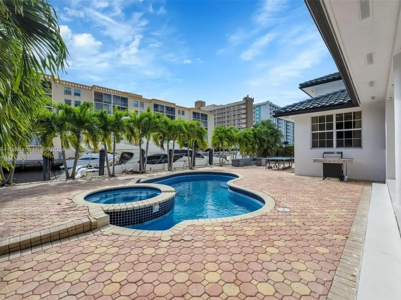 Welcome to this stunning 5-bedroom, 4-bathroom waterfront masterpiece in the prestigious, guard-gated community of Eastern Shores. With direct ocean access and no fixed bridges, this property offers the ultimate in luxury and convenience for boating enthusiasts, featuring a private dock capable of accommodating an 80-foot yacht and a Wave runner elevator lift for added water sport enjoyment. Designed with modern elegance, this home boasts soaring high ceilings, exquisite marble flooring, and premium granite countertops throughout. Hurricane-impact windows ensure safety and peace of mind, while the home is also equipped with 4 separate A/C zones, a heated pool, and a relaxing spa to elevate your living experience.
