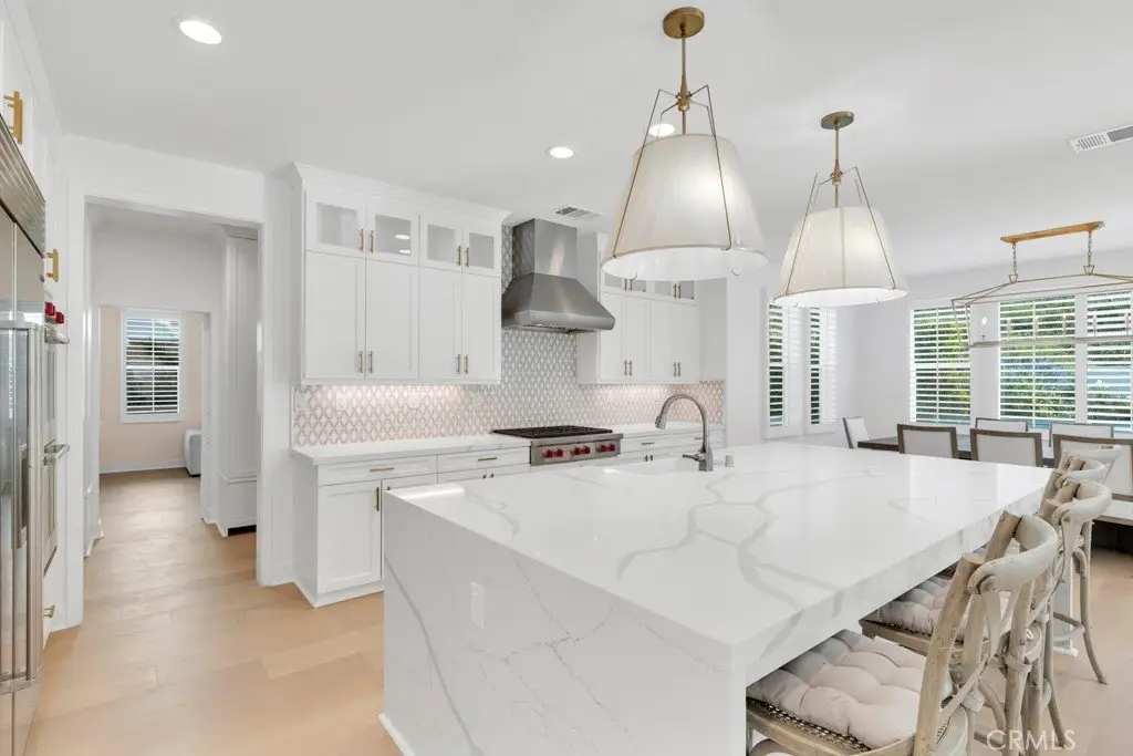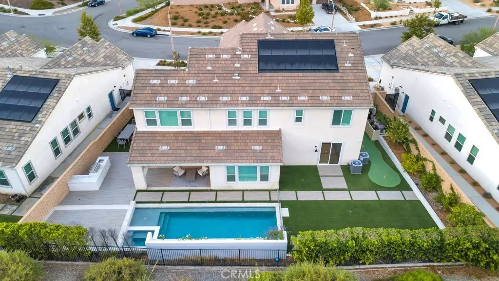Absolutely stunning home located on a charming street within the highly desirable, gated Aliento community in Canyon Country. This expansive 4,023 square foot residence sits on a large lot and offers 5 bedrooms and 4.5 bathrooms. Recently, the owner invested over $300,000 in a stunning new pool and surrounding hardscape, creating a true backyard oasis. Brand new engineered wood floors were also installed throughout the home, both upgrades completed in 2025. The chef’s kitchen is a dream come true, featuring upgraded stainless steel appliances, a massive quartz island, and a spacious walk-in pantry — ideal for all your culinary endeavors. The first floor offers flexible living options, including a bedroom with an en-suite bathroom perfect for guests or multi-generational living, plus a dedicated office and a guest powder room. Upstairs, the luxurious primary suite boasts breathtaking mountain views, a generous walk-in closet with custom built-ins, and a spa-inspired bathroom complete with a soaking tub, frameless glass shower, and dual quartz vanities. The second floor also includes three additional bedrooms, a shared hallway bathroom, and a convenient laundry room. Additional highlights include a 220V outlet in the garage for electric vehicle charging and fully owned solar panels. Residents of Aliento enjoy resort-style amenities including a pool, hot tub, splash pad, BBQ area, wading pool, gym, clubhouse, bocce ball courts, cabana area, and green spaces — all with panoramic valley views. The community also features a dog park and scenic walking trails, with easy access to the 14 freeway, shops, and restaurants.
