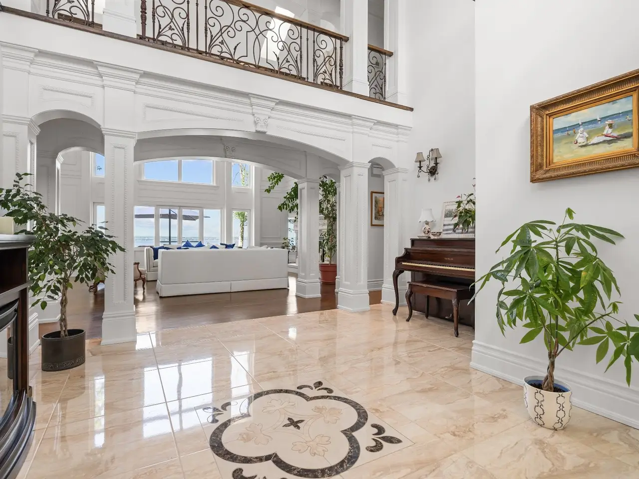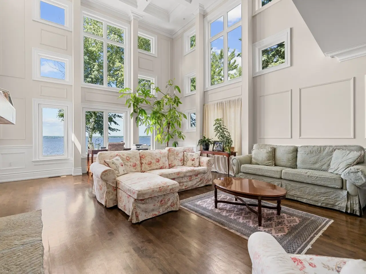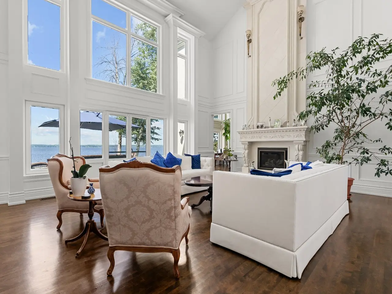 This private cul-de-sac waterfront estate offers 5,000-plus square feet of luxury living with balconies throughout and water views from nearly every room. The grand main living area boasts soaring 20-foot-plus ceilings, complemented by three family rooms, a stunning chef's kitchen, and hand-crafted finishes executed with precision. Relax in the finished basement or savor breathtaking sunsets from your private dock or from your primary bedroom! Take advantage of being a part of the exclusive Hudson Club amenities such as a private beach, gorgeous pool, and tennis courts. A rare chance to own elegant waterfront living at finest! You will not be disappointed!