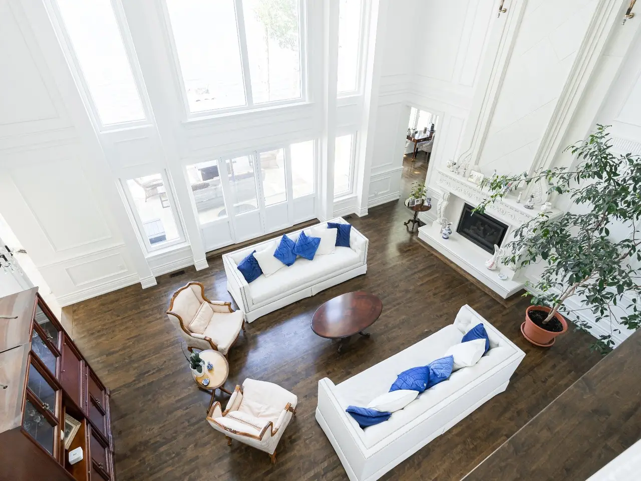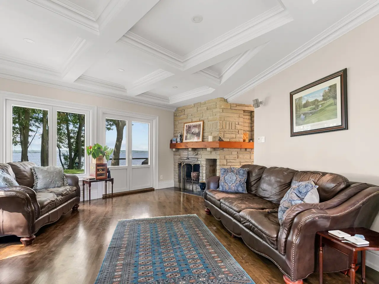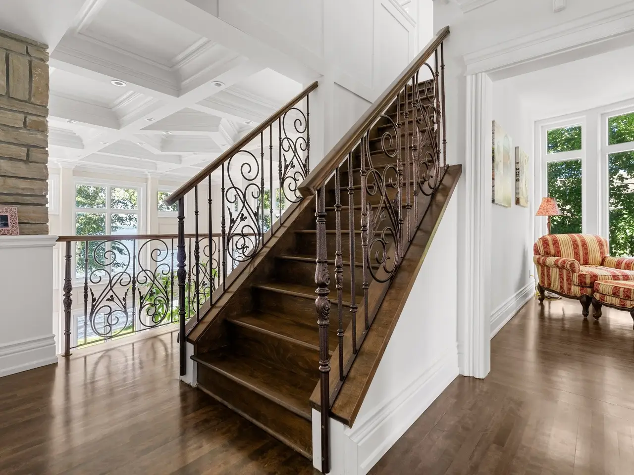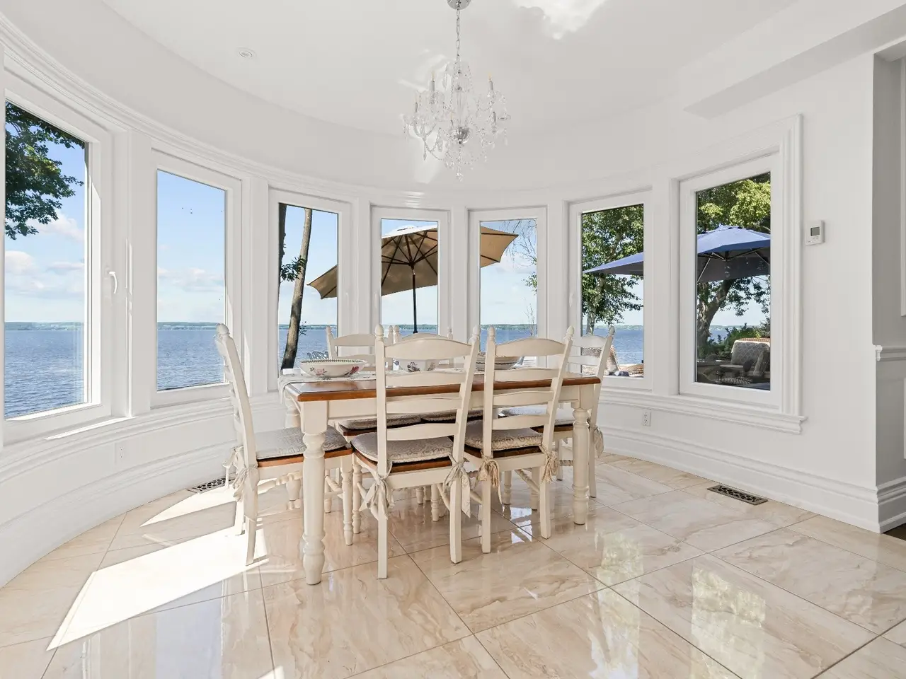 This private cul-de-sac waterfront estate offers 5,000-plus square feet of luxury living with balconies throughout and water views from nearly every room. The grand main living area boasts soaring 20-foot-plus ceilings, complemented by three family rooms, a stunning chef's kitchen, and hand-crafted finishes executed with precision. Relax in the finished basement or savor breathtaking sunsets from your private dock or from your primary bedroom! Take advantage of being a part of the exclusive Hudson Club amenities such as a private beach, gorgeous pool, and tennis courts. A rare chance to own elegant waterfront living at finest! You will not be disappointed!