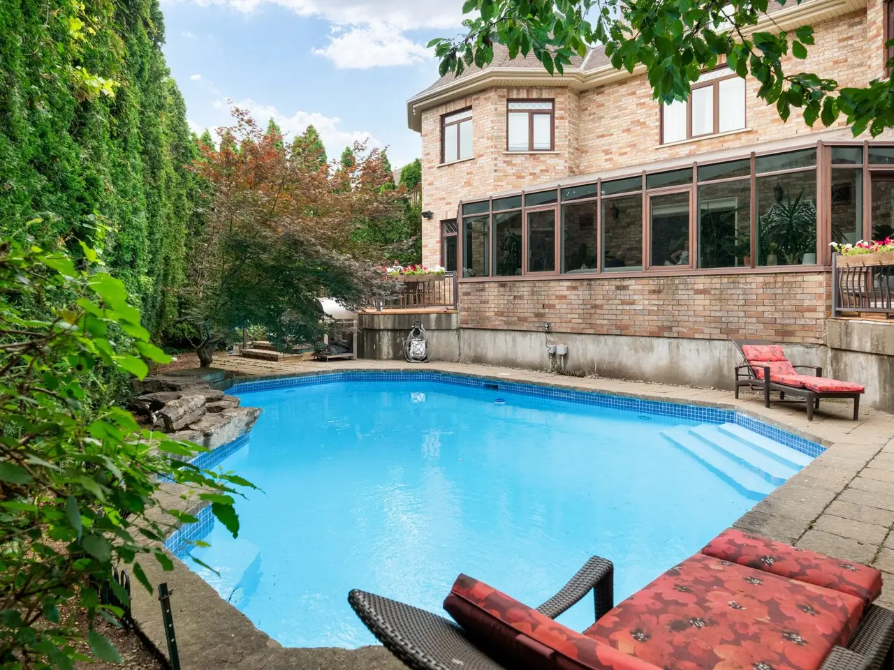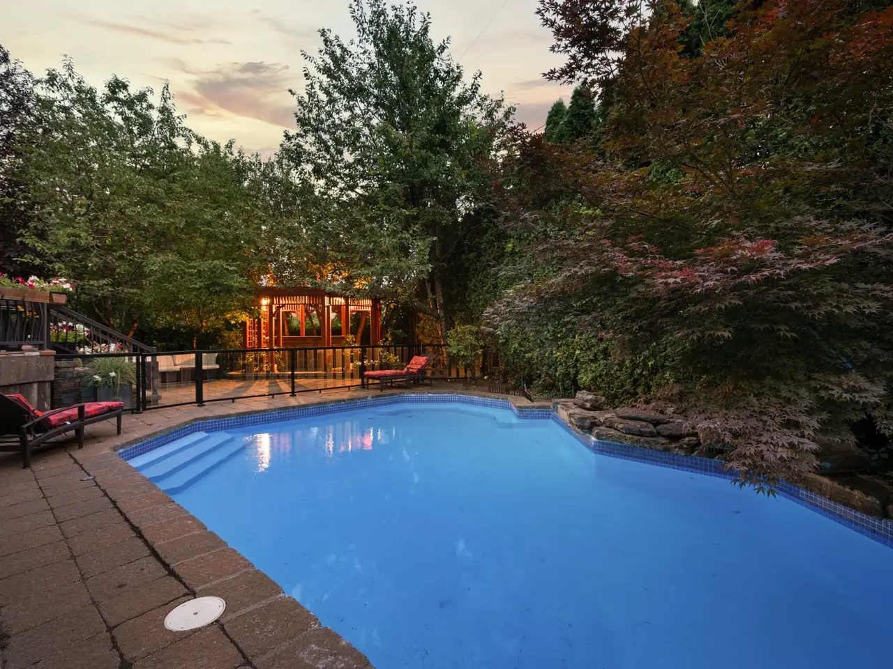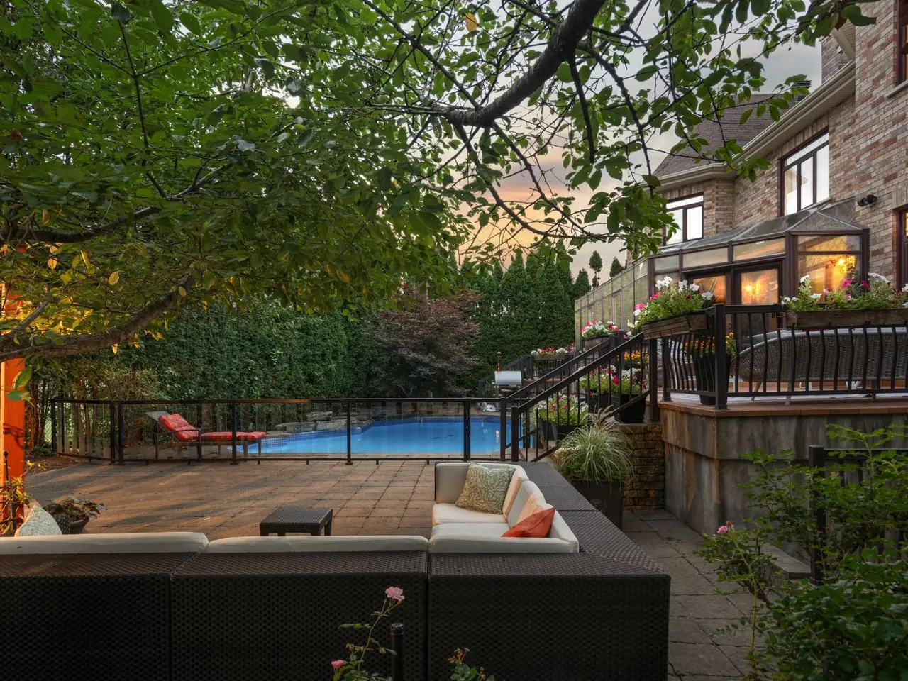 Located in prestigious Nouveau St-Laurent, this custom-built home offers 7 bedrooms, 7 bathrooms, and 2 powder rooms. A stunning stone facade, manicured lawn, private driveway for six cars, and a three-car garage with lift expansion. Grand entrance with marble floors, soaring ceilings, wrought-iron staircase, and elegant moldings. Gourmet kitchen with central island, Sub-Zero fridge, Miele appliances. Four-season solarium opens to a heated saltwater pool and BBQ. Master suite with gas fireplace, spa tub, steam sauna, Toto toilet, gym, and walk-in closet. High-end home theater, spa with massage room, sauna and exquisite cellar. A unique gem.