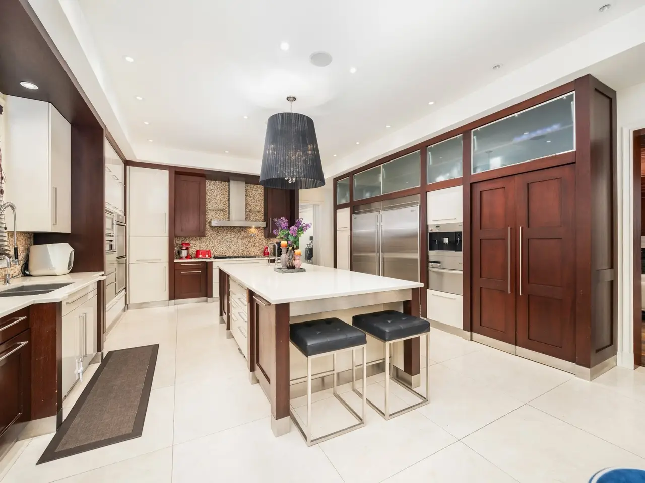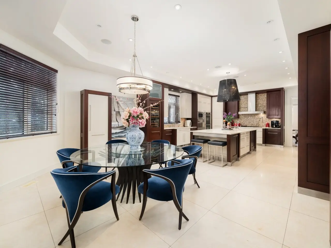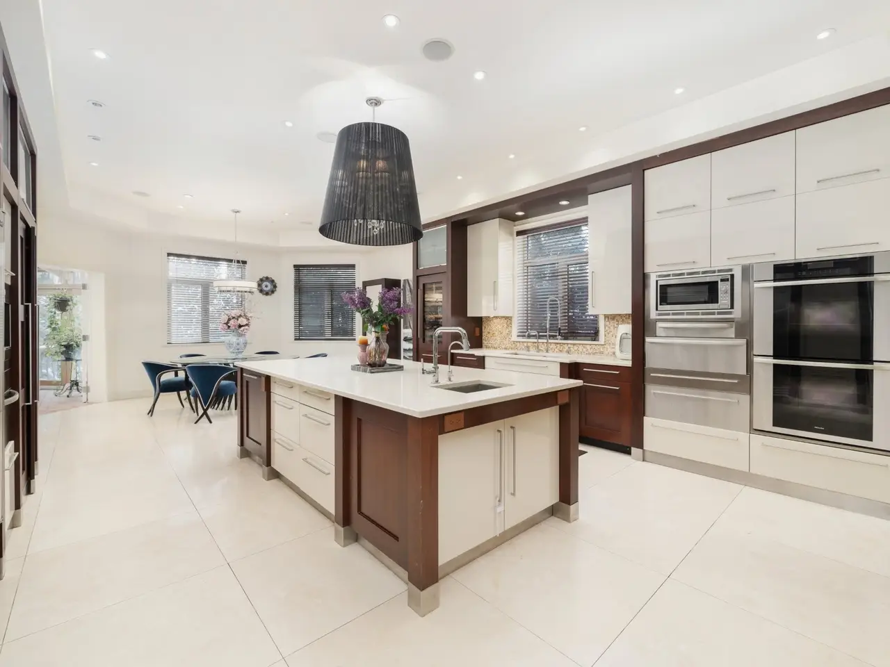 Located in prestigious Nouveau St-Laurent, this custom-built home offers 7 bedrooms, 7 bathrooms, and 2 powder rooms. A stunning stone facade, manicured lawn, private driveway for six cars, and a three-car garage with lift expansion. Grand entrance with marble floors, soaring ceilings, wrought-iron staircase, and elegant moldings. Gourmet kitchen with central island, Sub-Zero fridge, Miele appliances. Four-season solarium opens to a heated saltwater pool and BBQ. Master suite with gas fireplace, spa tub, steam sauna, Toto toilet, gym, and walk-in closet. High-end home theater, spa with massage room, sauna and exquisite cellar. A unique gem.