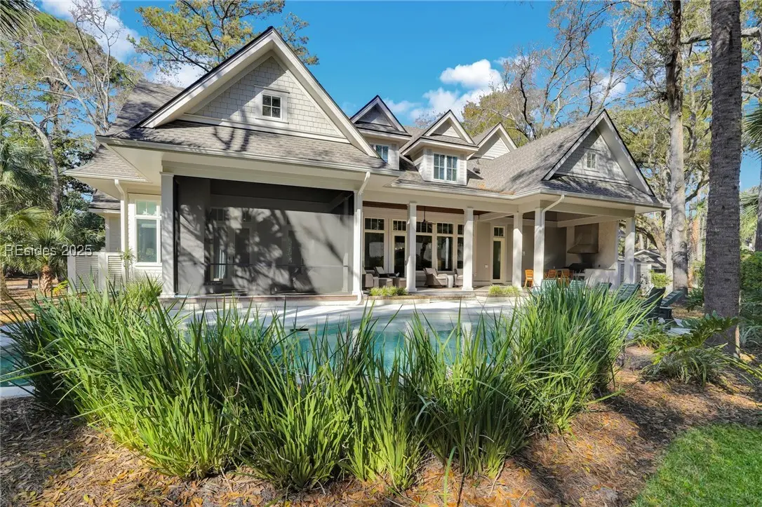 Not your typical beach house - this is the one you've been waiting for. Just 10 rows from the ocean in the heart of Sea Pines, 18 Baynard Cove Road was designed as a forever home. Built in 2018 on a prime corner lot, this custom Modern Farmhouse combines high-end comfort with a coastal vibe - vaulted ceilings, a chef's kitchen flooded with natural light, a serene and spacious primary suite, and multiple indoor and outdoor gathering spaces. Enjoy the peace of impact-rated windows and doors, a screened porch and covered patio with outdoor kitchen, and a private, heated pool tucked into a lush setting. Whether you're seeking a primary residence, a second home, or a proven rental (projected $146,000 in 2025 income), this home delivers it all - along with effortless access to Sea Pines beaches, golf, dining, and bike trails. Take advantage of this rare opportunity to own one of the finest properties in the neighborhood. This is more than a beach house it's a lifestyle. Come experience it for yourself.