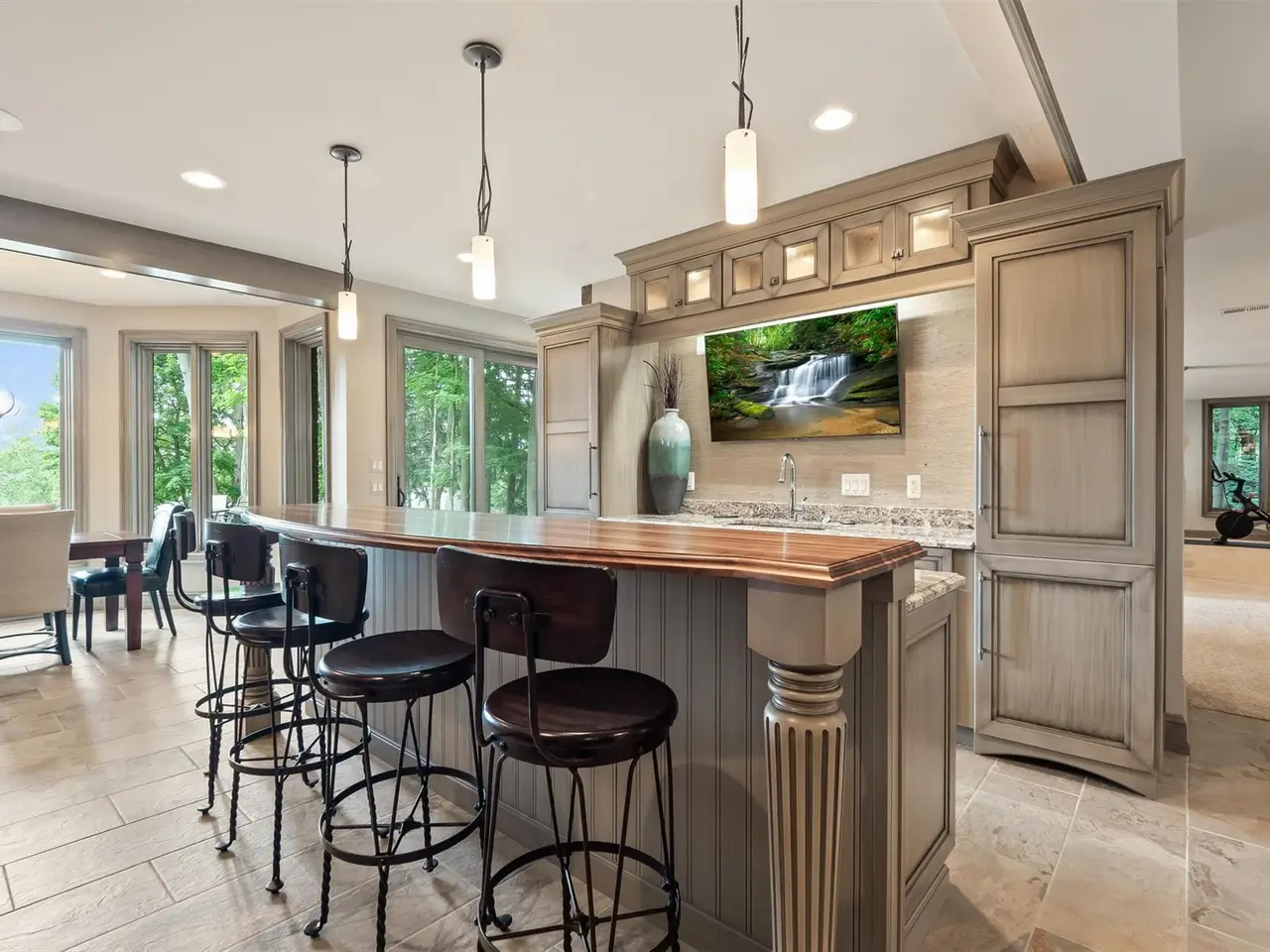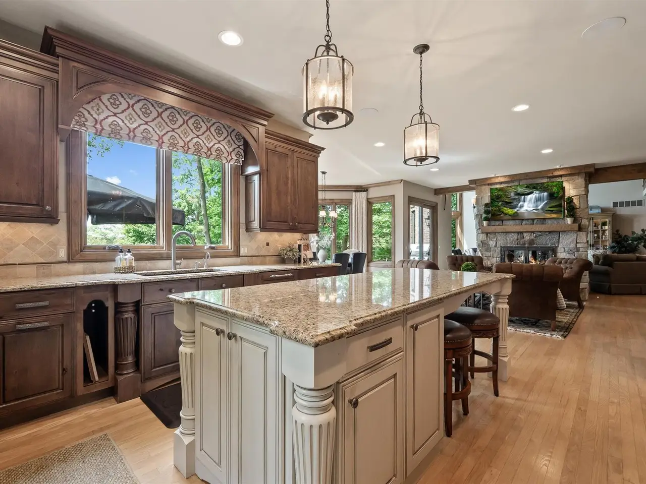 Rare opportunity to experience unmatched luxury and privacy on Clarkston’s prestigious Gold Coast of All-Sports Deer Lake. Set on 1.2 private acres, this nearly 7,000 sq ft residence combines timeless elegance with modern comfort and breathtaking west-facing lake views. Fully remodeled in 2013, every element was thoughtfully designed with meticulous attention to detail. The dramatic two-story great room features coffered ceilings, custom millwork, floor-to-ceiling windows and a showpiece two-sided stone fireplace designed by the creator of the Ritz-Carlton Bachelor Gulch. Additional highlights include custom gas lamps, bespoke millwork, crown molding, heated tile flooring throughout, and a full house generator, for more comprehensive specs SEE ATTACHED FEATURE LIST FOR FULL DETAILS! The chef’s kitchen includes premium integrated appliances, a large island, custom cabinetry, a walk-in pantry with an office nook, a Miele coffee system, beverage fridge, and a service bar with wine cooler, ice maker, and bar sink. The primary suite boasts panoramic lake views, a custom walk-in closet and a spa-inspired bath with a Jacuzzi tub and steam shower. Upper-level features en-suite bedrooms, a private guest suite and a bonus room with spectacular views. Walkout lower level offers a second full kitchen, media/family room, private den with hidden storage and safe, full bath, and expansive storage. Heated 3+ car garage with golf cart access, hot and cold water and storage systems, and attic with pull down access. This home provides an “up-north” feel while remaining just a short walk to the charming Village of Clarkston. Boutique shops, dining, and local amenities are moments away, making this an unparalleled opportunity to enjoy both serene waterfront living and effortless access to community life. This lakefront is an incredible value and a rare opportunity to live on one of Oakland County’s treasured lakefronts.