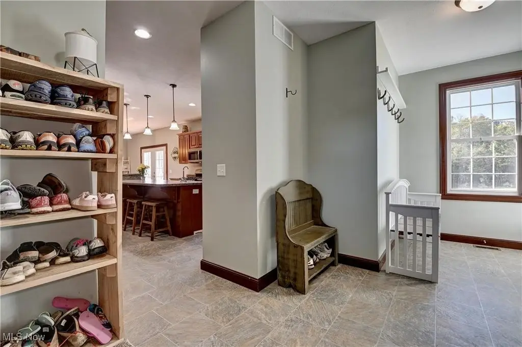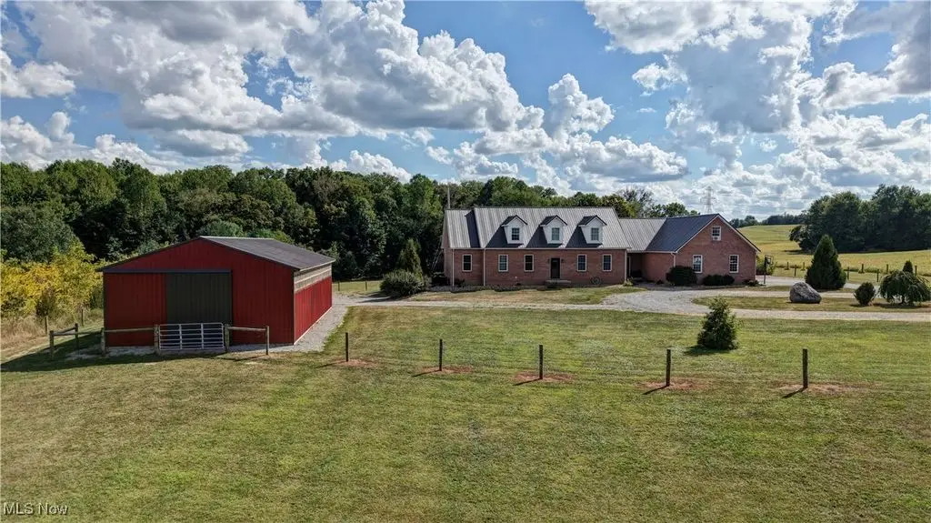 Don't miss this opportunity to come home to your dream retreat - a custom-built brick home (2013) nestled on over 10 peaceful acres, offering the perfect blend of country charm and modern comfort. Designed for horse lovers or anyone seeking the tranquility of farm life, this property delivers exceptional beauty, space, and functionality. Step inside to discover a spacious 7-bedroom, 3.5-bath residence with 9-foot ceilings, and rich cherry and hickory hardwood floors throughout. The open-concept kitchen is ideal for family gatherings and entertaining, leading out to a back deck with a sparkling pool - your private escape to unwind.The primary suite on the main floor boasts a massive walk-in closet and a luxurious en suite bath, offering true comfort and privacy. Also, on first floor is an additional bedroom/nursery and massive laundry room. A gas fireplace warms the living room, creating the perfect atmosphere for cozy evenings. Below, the partially finished 13 Coarse basement with a bar and entertainment area along with a full bath and walk-out featuring radiant floor heating, an 80-gallon hot water tank, and a fire-safe poured cement block-surrounded safe, adding both comfort and peace of mind. The radiant heat extends into the attached 3-car garage, which also includes 220-amp service - ideal for hobbyists or heavy equipment. Equestrians will love the steel barn with six stalls, complete with 220-amp service and water access, surrounded by multiple fenced pastures ready for your horses or livestock. The land offers ample room to roam, garden, wooded acres or simply enjoy the beauty of the countryside in total serenity.