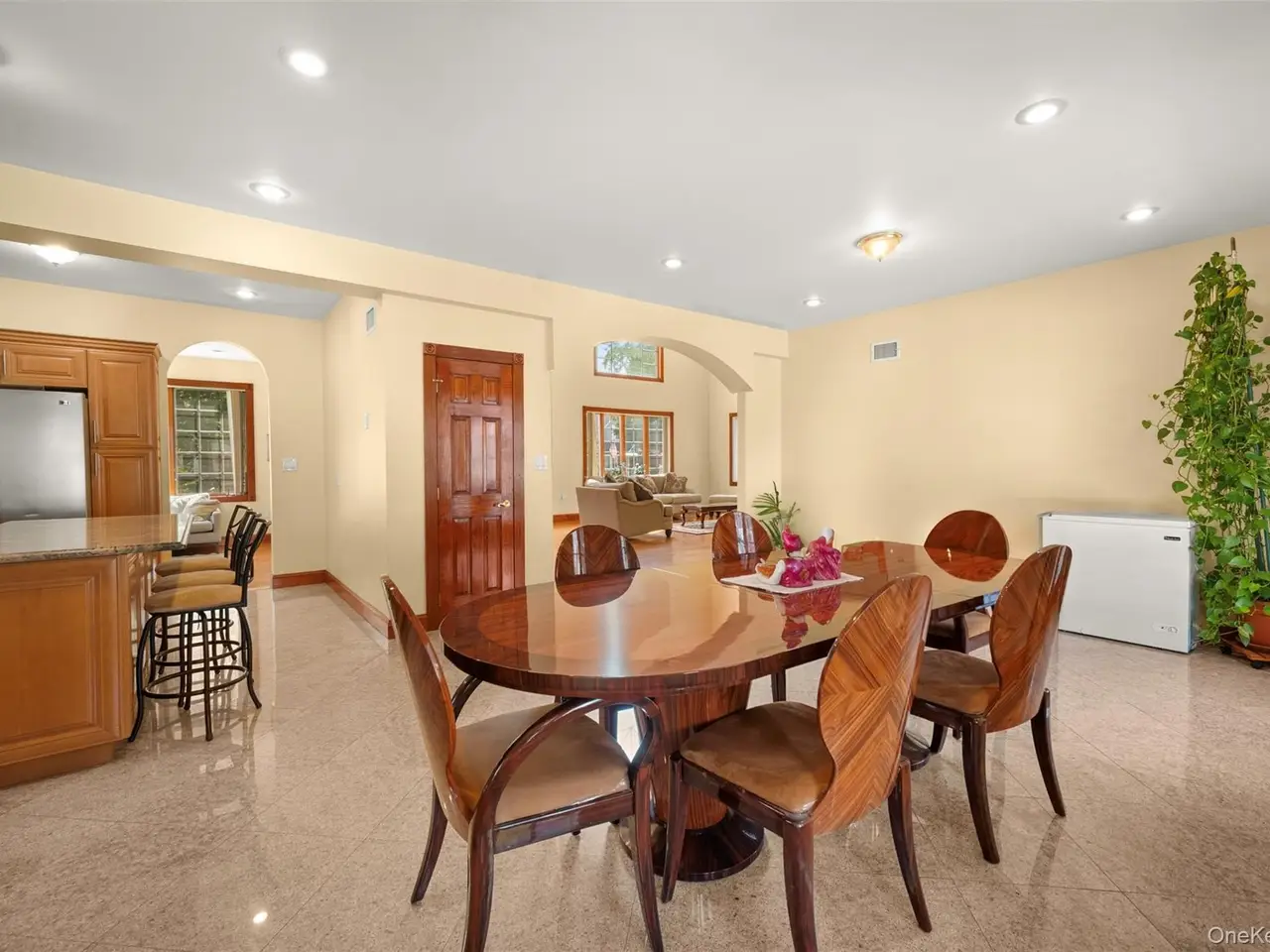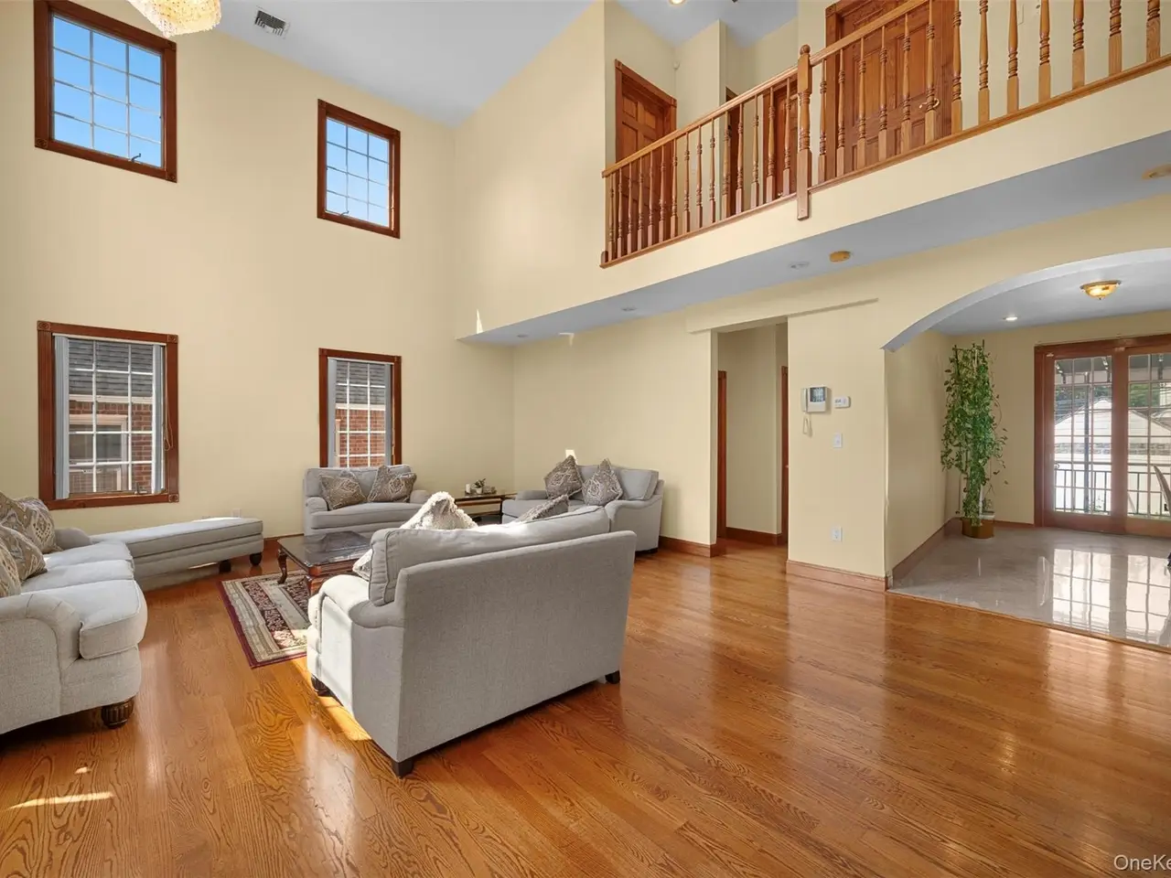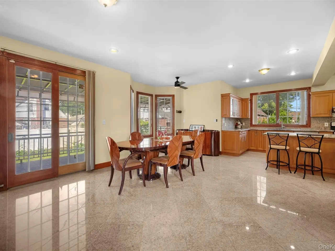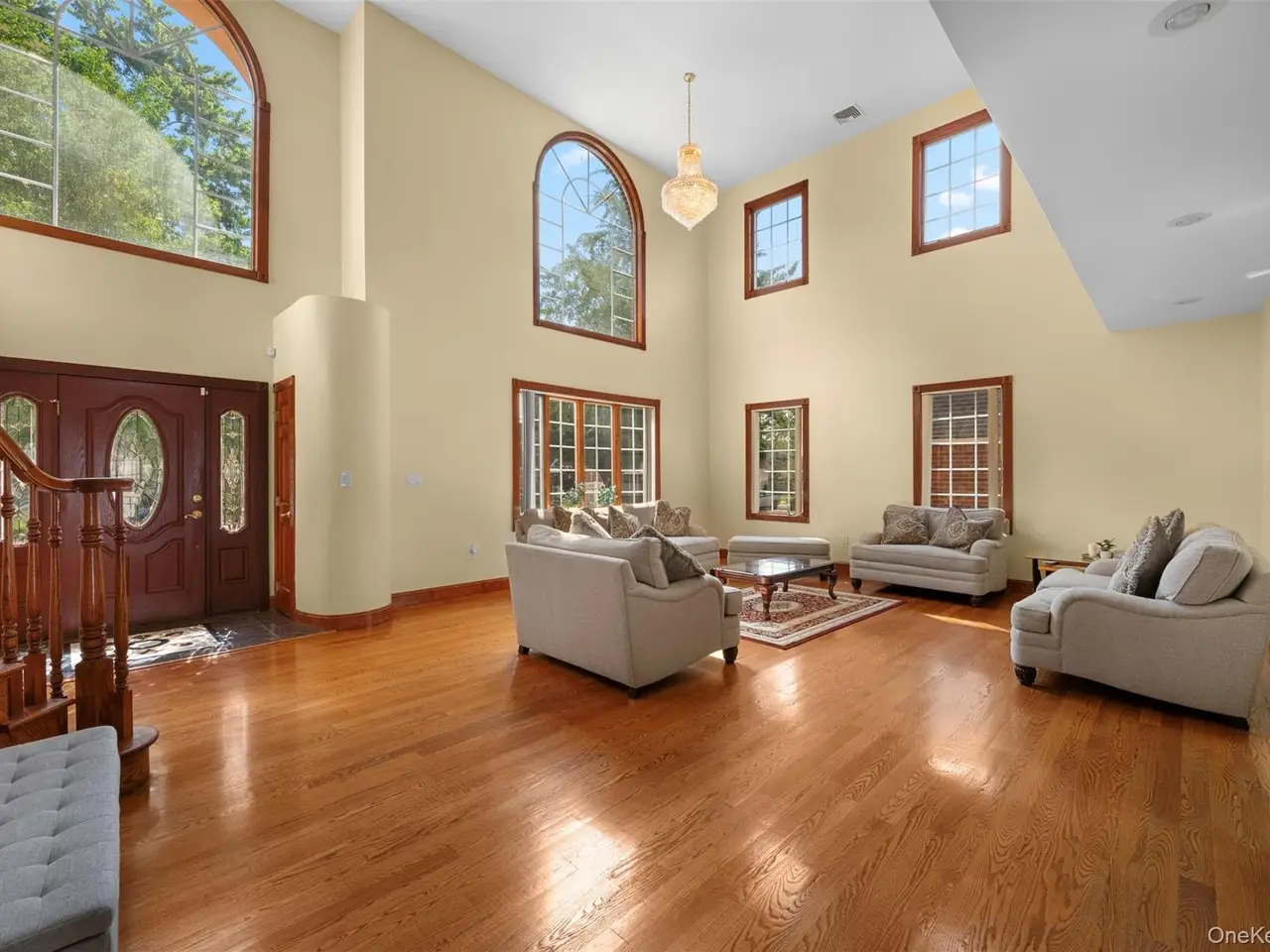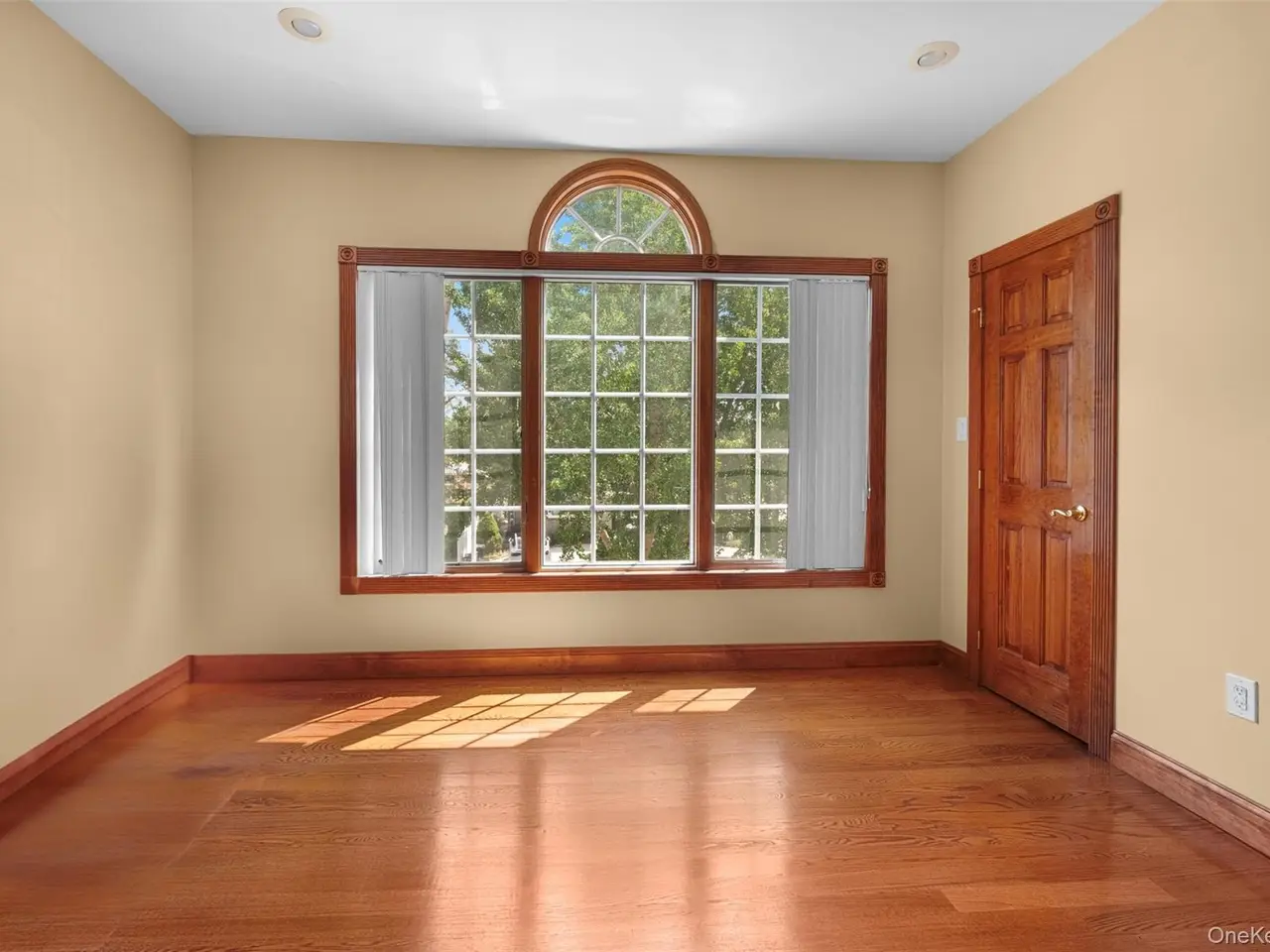 This beautifully reimagined custom brick home with soaring columns offers luxurious living with modern updates from the ground up, situated on a 60x100 lot. Boasting 3,105 sq ft of refined space, this residence features five spacious bedrooms and three and a half bathrooms, including a first-floor bedroom perfect for guests or generational living. Step into the formal living room adorned with oversized Anderson windows, two elegant chandeliers, and a grand circular staircase. Designed with ample natural light, the space is surrounded by large windows that let sunlight pour in throughout the day. The open layout and bright ambiance make this living room an ideal setting for relaxing, entertaining, or spending quality time with loved ones. Custom-made doors throughout the home add unique charm and craftsmanship. Step into a beautifully lit family room that radiates warmth and comfort. Elegant arched walkways lead in and out of the room, adding architectural character and a soft flow between living spaces. The chef's kitchen is a dream, featuring custom cabinetry, granite countertops, stainless steel appliances, and a sunny eat-in area. The formal dining room is ideal for entertaining with French doors opens to a rear deck with awning, leading to a private backyard. Upstairs, find four generously sized bedrooms. The primary suite offers a spa-like retreat with a soaking tub, walk-in closets, and ample natural light. The fully finished tiled basement adds valuable space with a rec room, surround sound, half bath, laundry room, utility room, and private access to the backyard. Additional features include hardwood floors and recessed lighting throughout, two-zone central heating system, an elegant design with modern conveniences, an ADT security system, and close proximity to schools, parks, shopping, transportation, and houses of worship. This is more than a house - it's a place to call home.