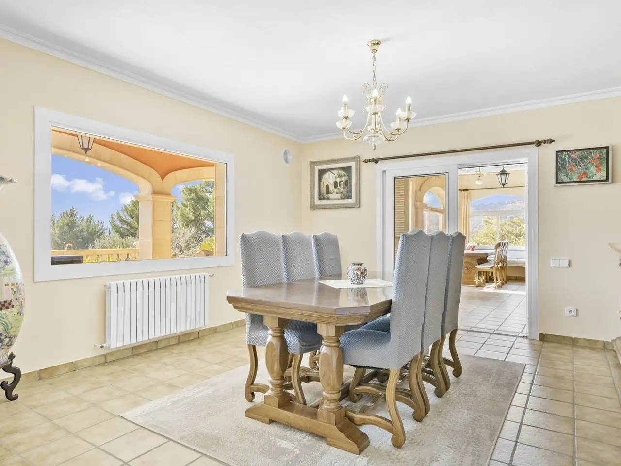 This well-kept detached house is located in the quiet settlement of Sa Coma in the municipality of Bunyola. With a living area of approx. 517 m² on a generous plot of approx. 3,241 m², the property offers plenty of space for individual living requirements. The house was built in 1989 and has been regularly maintained. The first floor welcomes residents with a spacious entrance hall that provides access to the main living areas. Here there is a spacious living/dining room, an additional separate dining room and a cozy parlor. The adjoining kitchen offers ample space and has direct access to the outside area. There are also four bedrooms on this floor, each with its own en suite bathroom. There are four further bedrooms and two additional bathrooms on the upper floor. A balcony on this floor offers sweeping views of the surrounding mountains. The outdoor area of the property invites you to spend relaxing hours in the garden with vegetable patches and fruit trees, a pool provides cooling on warm days and the terrace is the perfect place to enjoy convivial moments. Features include split air conditioning, gas central heating and a fireplace to create a pleasant atmosphere on cooler days. Solar panels for hot water contribute to a sustainable energy supply. A garage offers space for two vehicles. The property is connected to mains water and electricity. A cellar offers additional storage space and a security system provides an increased level of protection. The location is characterized by its tranquillity and natural surroundings. From here, a view of the mountains opens up, while the sea can be seen in the distance. Despite the private residential location, there are good connections to the surrounding villages and schools.