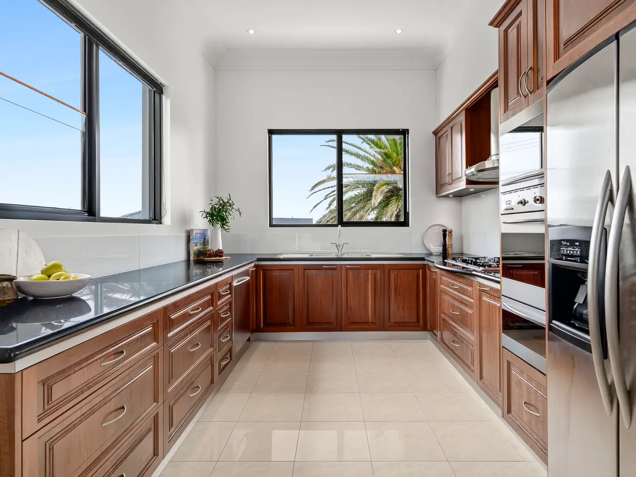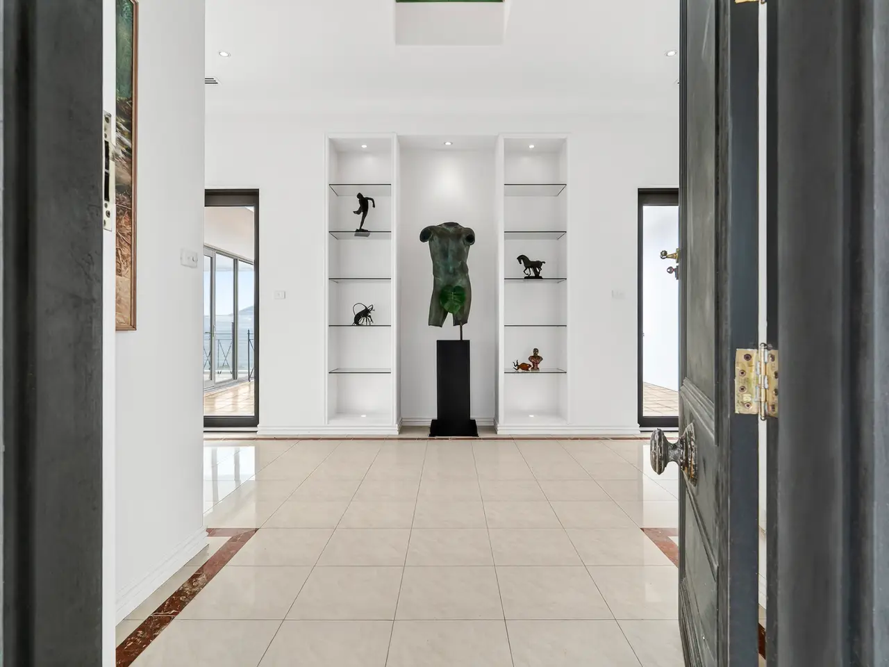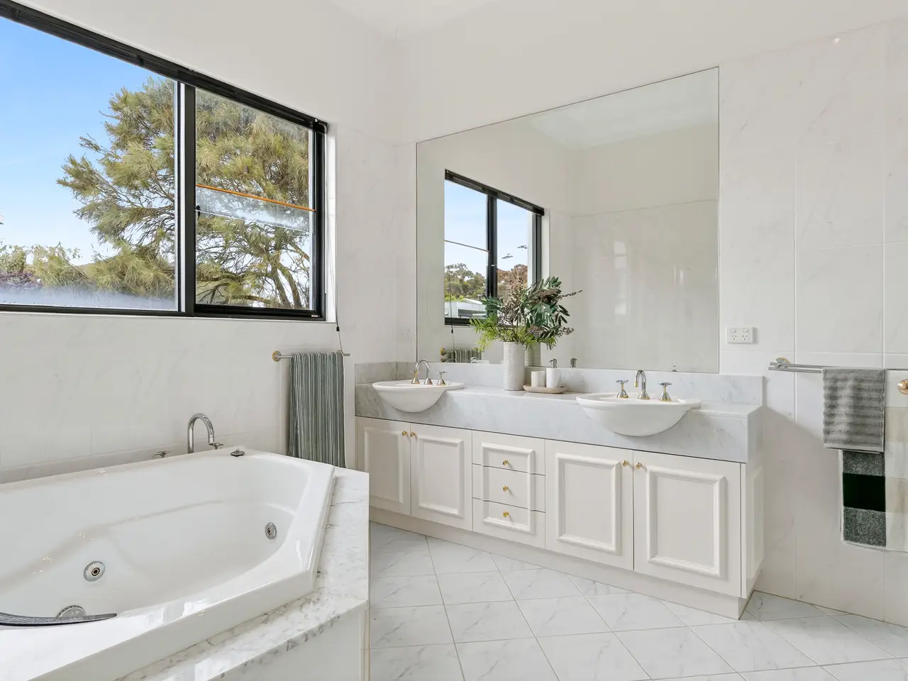 Sophisticated elegance awaits in this superb home that's set just 550m to the stunning coastline and a short drive to Mount Martha village and beaches. Expansive throughout, this quality residence features light-filled rooms that revel in the sensational bay vistas, with grand interiors that open to multiple terraces to provide exceptional entertaining and relaxation options. In addition to a generous front garden with potential for a new pool (STCA), there's abundant rear parking and workshop space that's perfect for the avid car collector. - Main lounge has fireplace and superb views, leading out to BBQ alfresco - Quality kitchen with dishwasher, new oven/grill and 5-burner cooktop - Large adjacent dining room, plus powder room and ample storage - Lavish main suite with private balcony, multiple robes, spa bath ensuite - Lower floor family room with built-in storage, opens to private terrace - 2 huge bedrooms with ample storage and entry to the garden - Sauna, plus ensuite and family bathroom, both with shower, vanity, WC - Sunroom/office, laundry, multipurpose storage/cellar, entry to garages - Garaging for 4 cars, driveway parking, workshop plus WC, sink, shower - 3.4m ceilings, ducted heating/cooling, plus hydronic heating