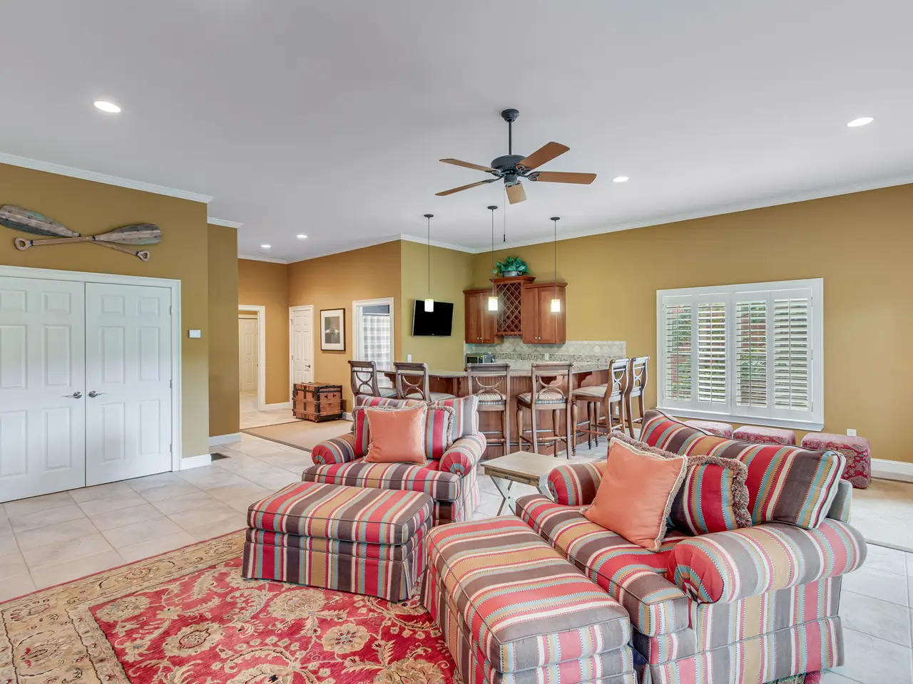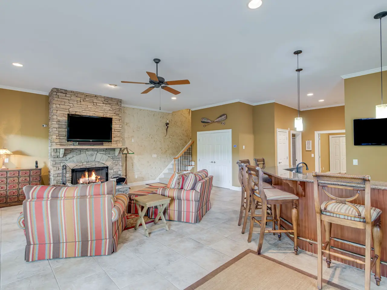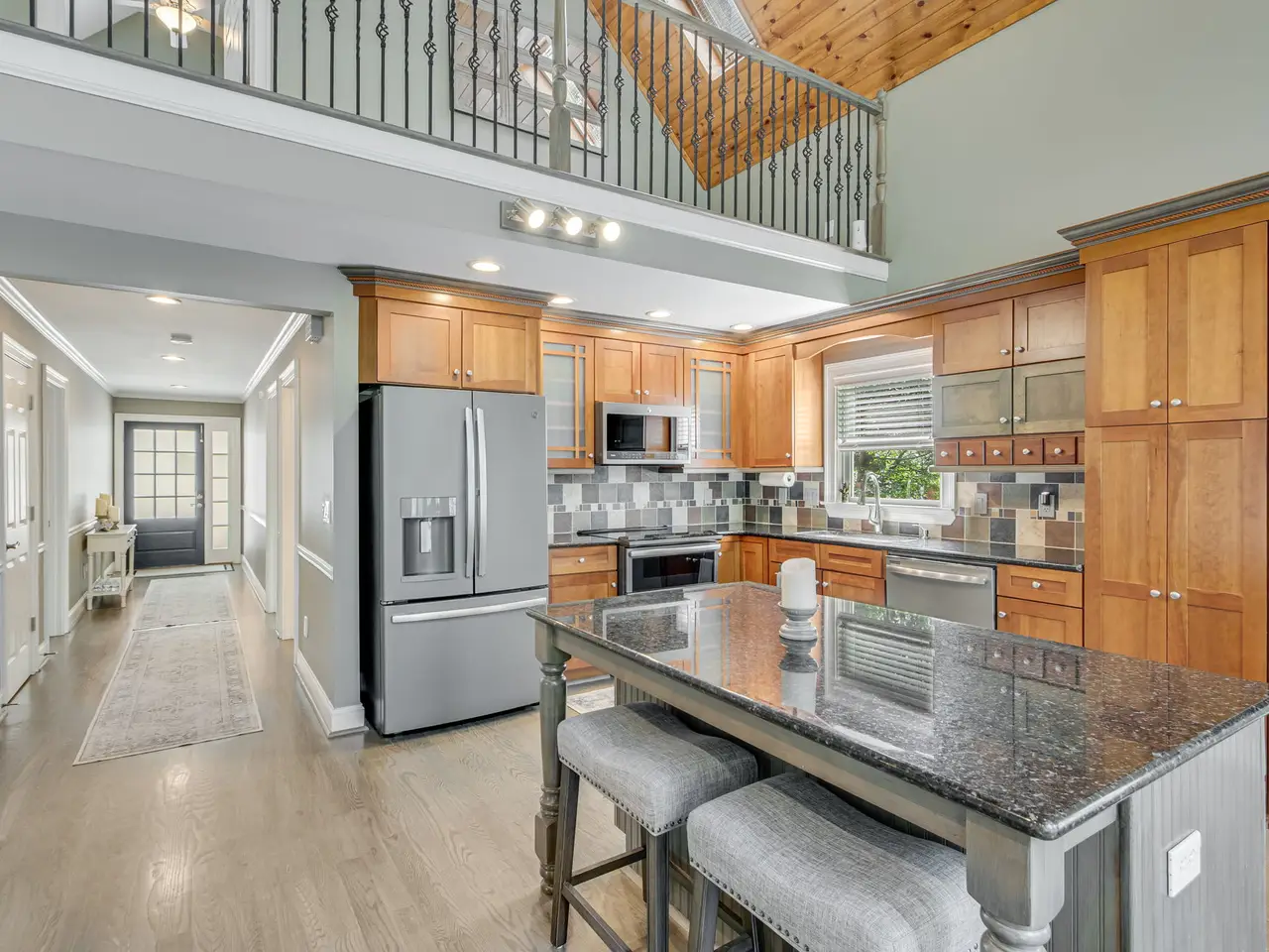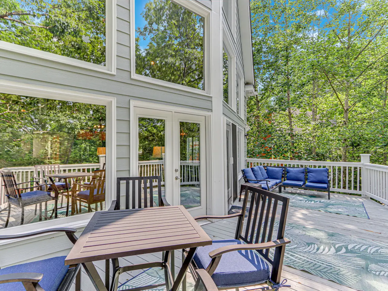 Discover the perfect blend of charm and functionality in this spacious craftsman home on Lake Lanier, offering plenty of room for family and friends! Thoughtfully designed with a resort-style feel, this property features two great rooms with stone fireplaces, two kitchens, and four covered porches ideal for entertaining in every season. Located in a prime Dawsonville spot just 30 minutes north of Atlanta and 15 minutes south of the Dahlonega wineries and fall festivals, this home is nestled in a secluded Lake Lanier neighborhood. Tucked away behind gates in a private three-home enclave, it sits just steps from the water on a protected deep-water cove. Enjoy easy lake access from your private twin-slip dock with a party deck perfect for sunbathing and gatherings, with calm waters ideal for swimming and floating. Inside, the main level features an open floor plan with a two-story vaulted ceiling and stone fireplace, hardwood floors, a spacious kitchen with an island, two bedrooms, and a full bath. The upstairs owner's suite includes a loft sitting area, ideal for a reading nook or office space, and offers serene views. The finished terrace level mirrors the main level layout, complete with a second kitchen, two bedrooms, and a full bath perfect for guests or multi-generational living. The unfinished daylight basement offers even more potential for game rooms, storage, or lake toys. A detached two-car garage with an upstairs storage room adds extra flexibility. With ample parking for trailers and visitors, the shared gated driveway serves just three homes. No HOA, but residents share annual maintenance costs (approximately $600-700 per year) for the gate and common landscaping. Ideal for full-time living or Airbnb potential, this home offers a unique opportunity to enjoy the best of lake life!