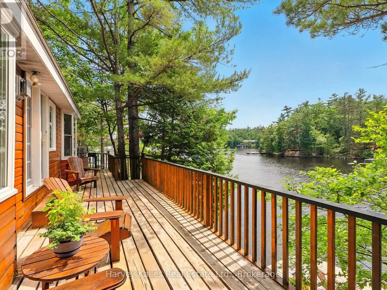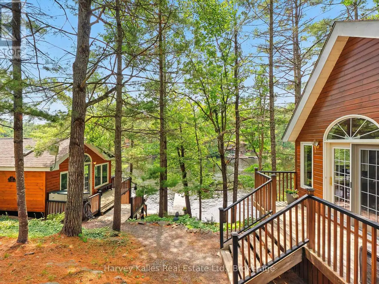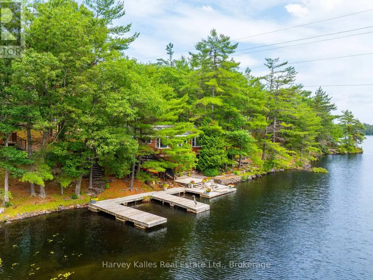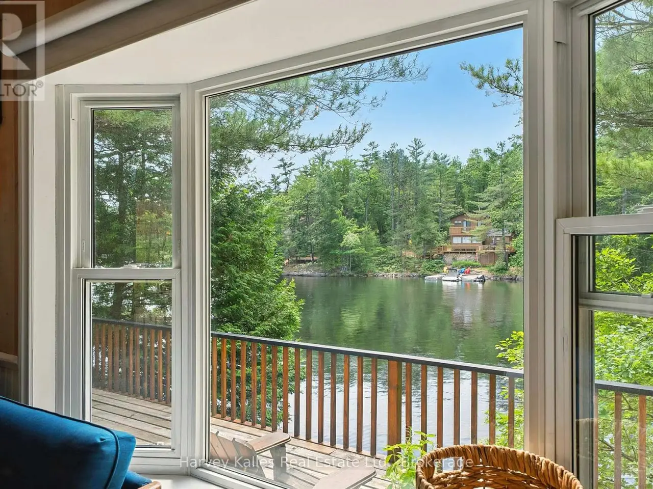 Captivating south-western exposure in a quiet bay with a diligently cared for, year-round dwelling with an additional guest cabin on the picturesque waters of Lake Muskoka. Step into this delightful home or cottage that features convenient one-floor living with a welcoming front entrance that includes an inviting sitting area. The spacious family room opens directly to the deck that is steps from the waters edge, and wrapping around the entire front of the cottage, perfect for soaking up the sun and breathtaking views. The newly updated galley-style kitchen, features stunning lake vistas that inspires culinary creativity, leading into a generous dining area ideal for family gatherings. Enjoy three beautifully appointed bedrooms and an open-concept living area featuring newly updated flooring, light-coloured wood accents, and abundant windows that showcase impressive lake views from all ends of the home. The property also boasts a charming winterized guest cabin, featuring a cozy bedroom with an additional loft space, as well as a main floor living area with a fireplace and a convenient 2-piece bathroom. An inviting screened-in gazebo adds a touch of magic, offering a perfect spot for outdoor dining, entertaining, or simply unwinding in nature, sheltered from the elements. Completing the package is the gently sloping terrain and the cottages close proximity to the waters edge, allowing for easy access to the shimmering waterfront, providing ample opportunities for deep-water swimming and endless sunshine on the docks throughout the day. Located just 1.5 hours from Toronto, 10 minutes from Gravenhurst, where you'll find all your essential amenities, and mere minutes from ideal boating destinations, local marinas, restaurants, and hiking trails, this cottage offers the perfect blend of relaxation and convenient adventure. Experience the beauty of year-round lakeside living in this charming Muskoka escape! (id:16999)