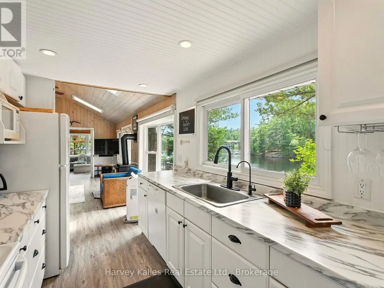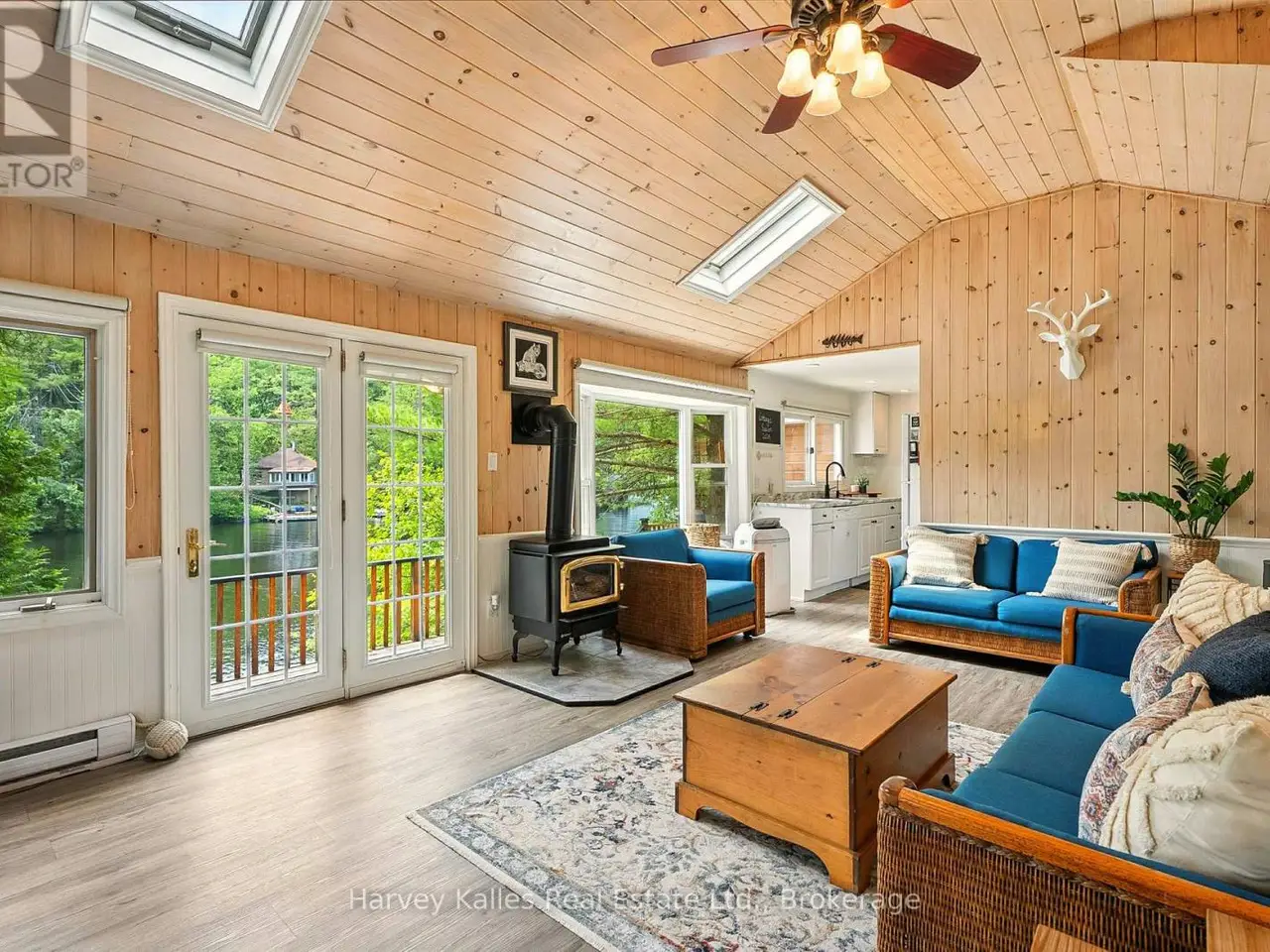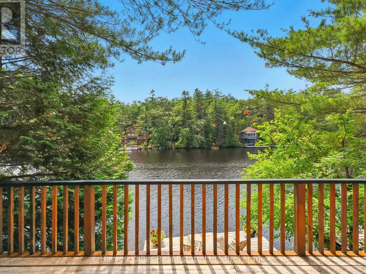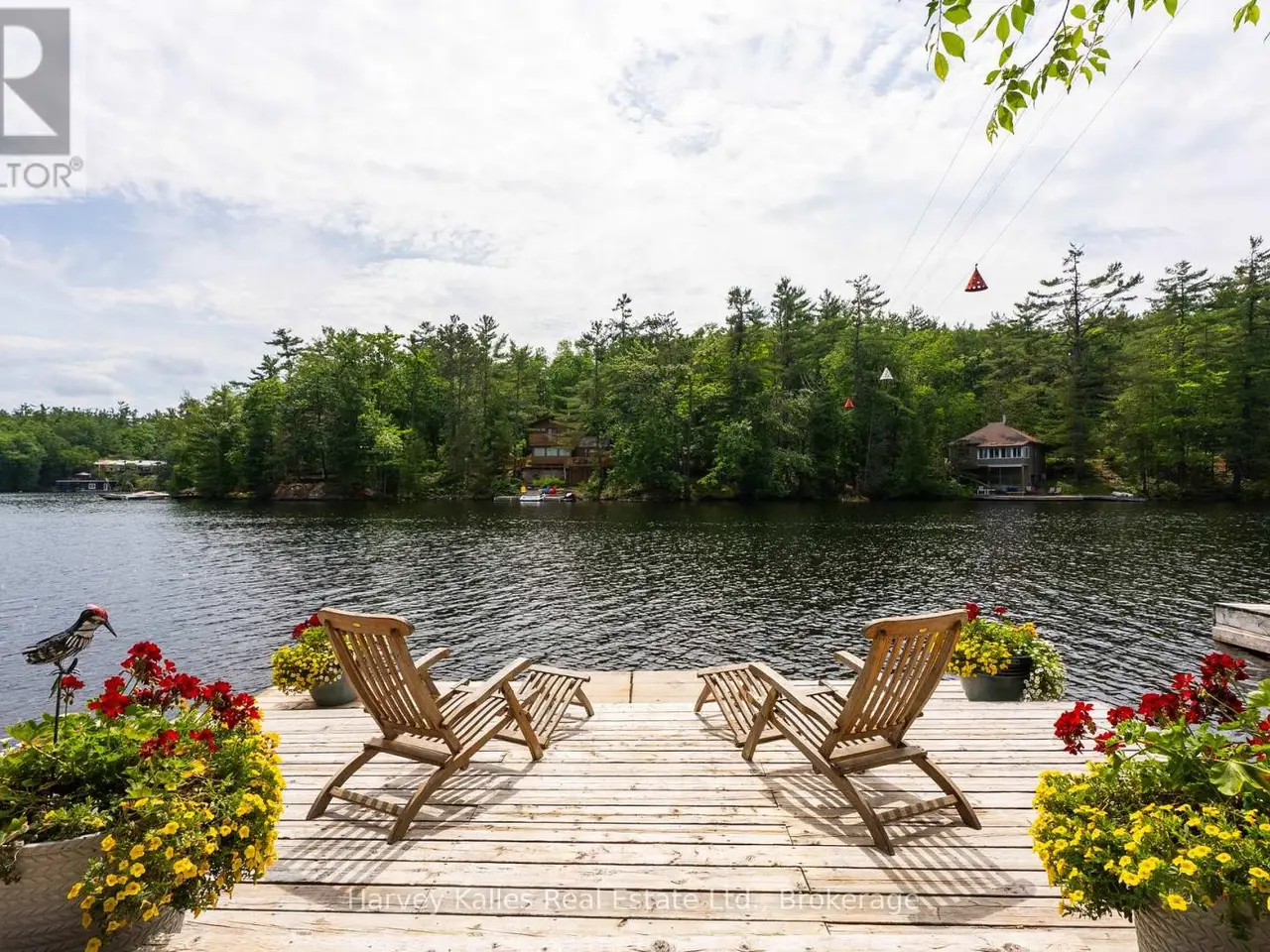 Captivating south-western exposure in a quiet bay with a diligently cared for, year-round dwelling with an additional guest cabin on the picturesque waters of Lake Muskoka. Step into this delightful home or cottage that features convenient one-floor living with a welcoming front entrance that includes an inviting sitting area. The spacious family room opens directly to the deck that is steps from the waters edge, and wrapping around the entire front of the cottage, perfect for soaking up the sun and breathtaking views. The newly updated galley-style kitchen, features stunning lake vistas that inspires culinary creativity, leading into a generous dining area ideal for family gatherings. Enjoy three beautifully appointed bedrooms and an open-concept living area featuring newly updated flooring, light-coloured wood accents, and abundant windows that showcase impressive lake views from all ends of the home. The property also boasts a charming winterized guest cabin, featuring a cozy bedroom with an additional loft space, as well as a main floor living area with a fireplace and a convenient 2-piece bathroom. An inviting screened-in gazebo adds a touch of magic, offering a perfect spot for outdoor dining, entertaining, or simply unwinding in nature, sheltered from the elements. Completing the package is the gently sloping terrain and the cottages close proximity to the waters edge, allowing for easy access to the shimmering waterfront, providing ample opportunities for deep-water swimming and endless sunshine on the docks throughout the day. Located just 1.5 hours from Toronto, 10 minutes from Gravenhurst, where you'll find all your essential amenities, and mere minutes from ideal boating destinations, local marinas, restaurants, and hiking trails, this cottage offers the perfect blend of relaxation and convenient adventure. Experience the beauty of year-round lakeside living in this charming Muskoka escape! (id:16999)