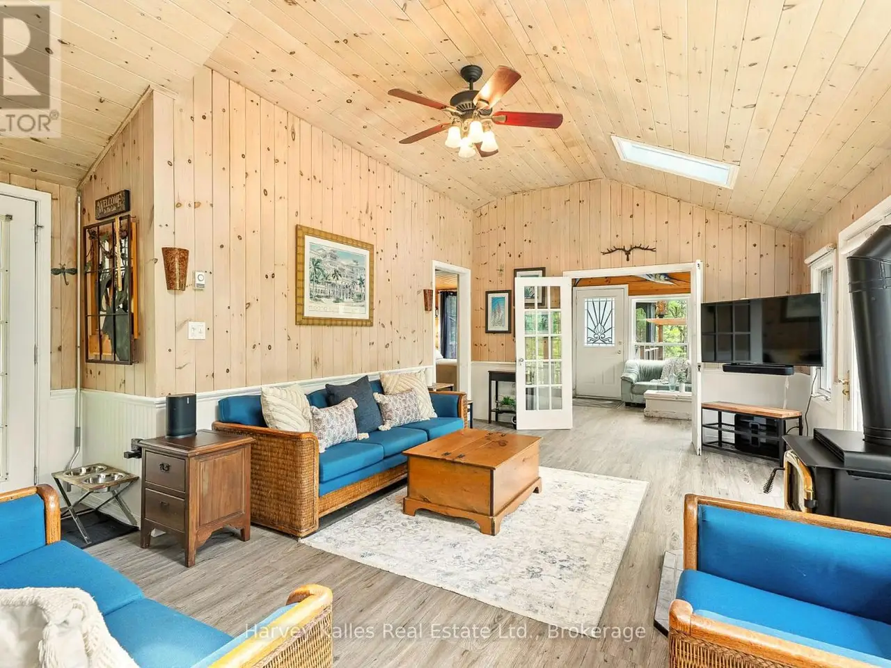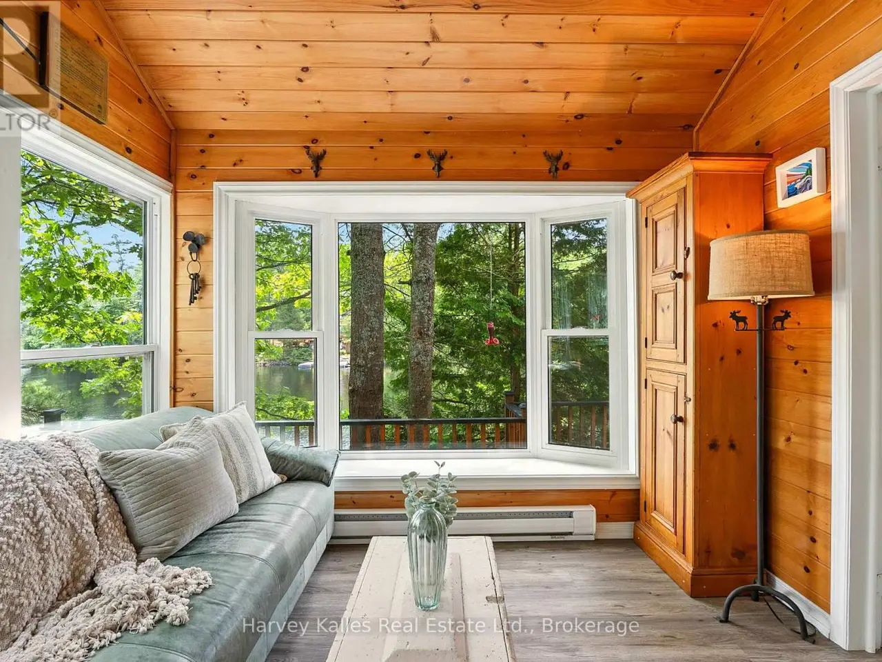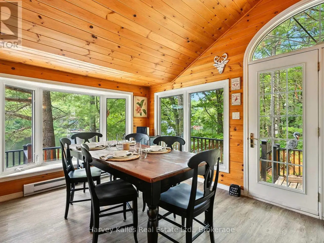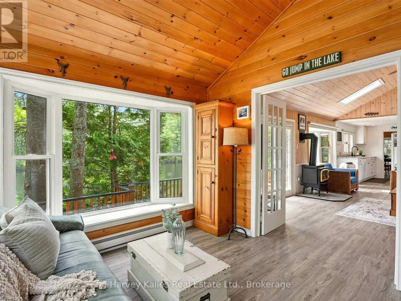 Captivating south-western exposure in a quiet bay with a diligently cared for, year-round dwelling with an additional guest cabin on the picturesque waters of Lake Muskoka. Step into this delightful home or cottage that features convenient one-floor living with a welcoming front entrance that includes an inviting sitting area. The spacious family room opens directly to the deck that is steps from the waters edge, and wrapping around the entire front of the cottage, perfect for soaking up the sun and breathtaking views. The newly updated galley-style kitchen, features stunning lake vistas that inspires culinary creativity, leading into a generous dining area ideal for family gatherings. Enjoy three beautifully appointed bedrooms and an open-concept living area featuring newly updated flooring, light-coloured wood accents, and abundant windows that showcase impressive lake views from all ends of the home. The property also boasts a charming winterized guest cabin, featuring a cozy bedroom with an additional loft space, as well as a main floor living area with a fireplace and a convenient 2-piece bathroom. An inviting screened-in gazebo adds a touch of magic, offering a perfect spot for outdoor dining, entertaining, or simply unwinding in nature, sheltered from the elements. Completing the package is the gently sloping terrain and the cottages close proximity to the waters edge, allowing for easy access to the shimmering waterfront, providing ample opportunities for deep-water swimming and endless sunshine on the docks throughout the day. Located just 1.5 hours from Toronto, 10 minutes from Gravenhurst, where you'll find all your essential amenities, and mere minutes from ideal boating destinations, local marinas, restaurants, and hiking trails, this cottage offers the perfect blend of relaxation and convenient adventure. Experience the beauty of year-round lakeside living in this charming Muskoka escape! (id:16999)