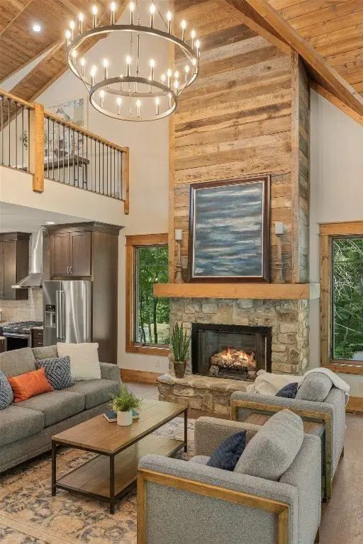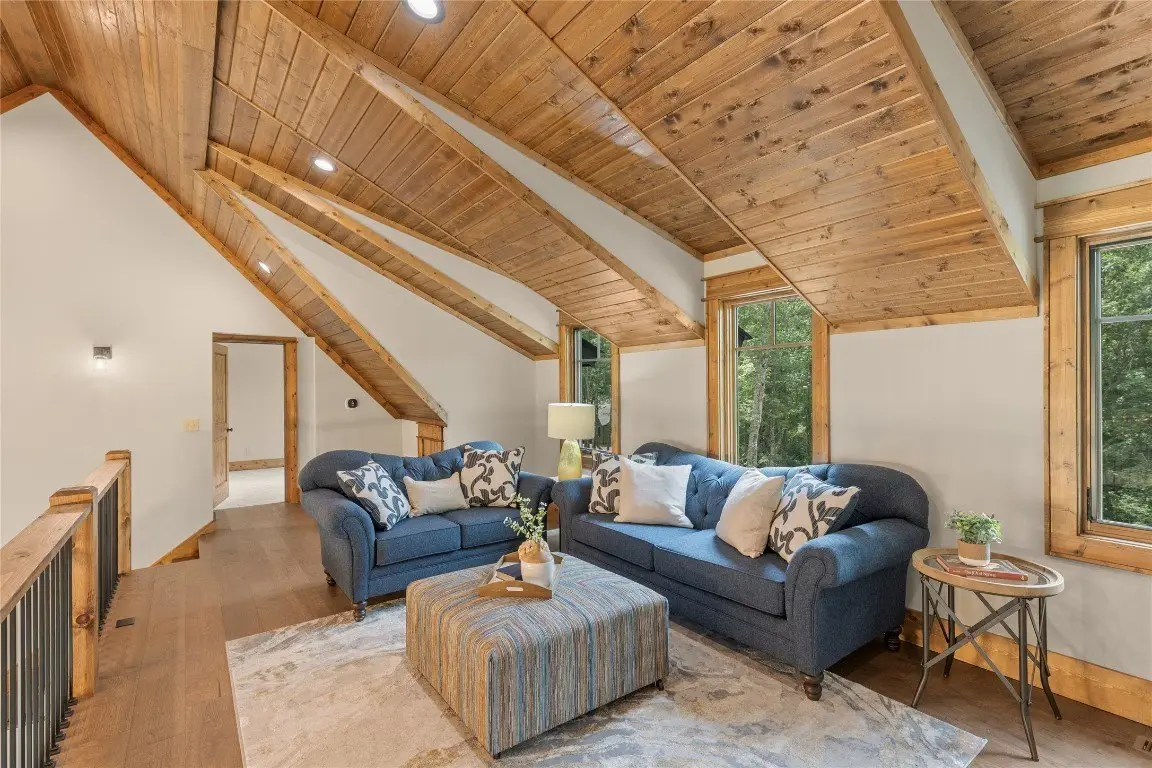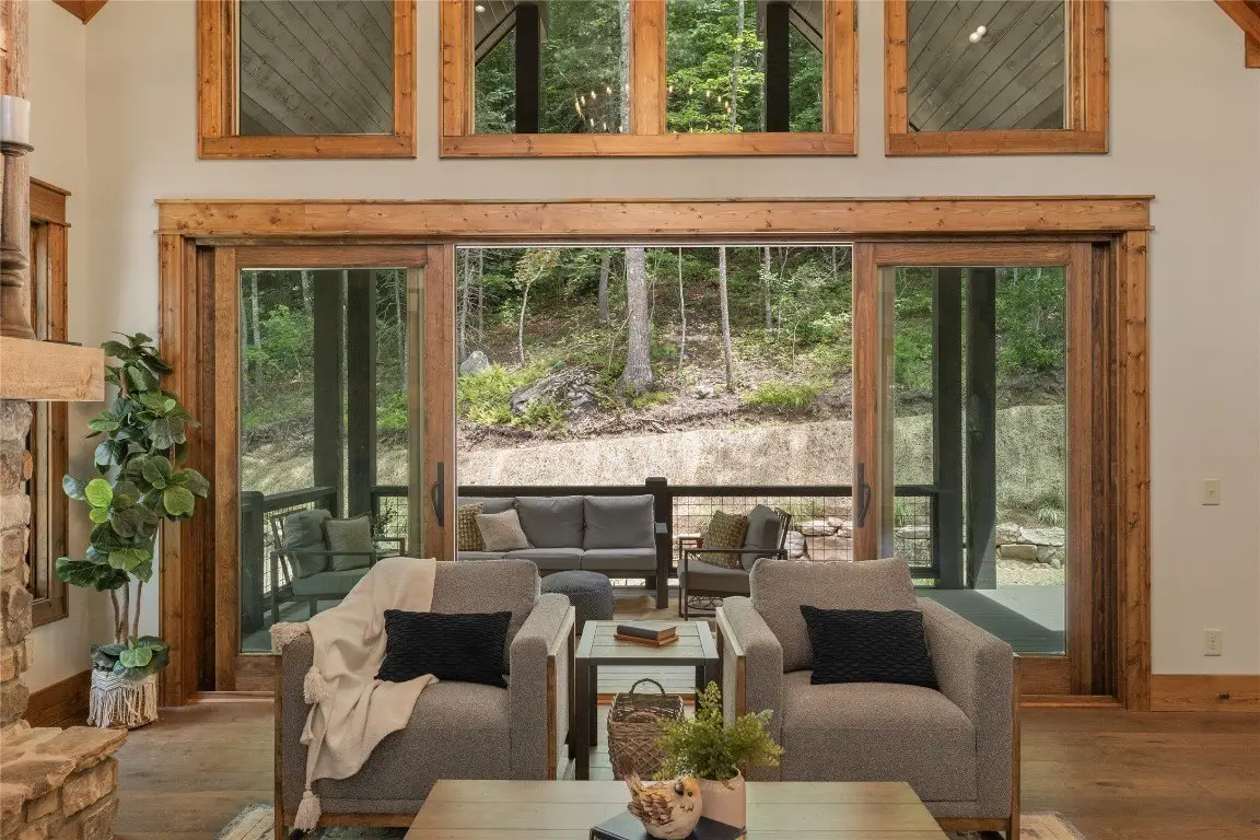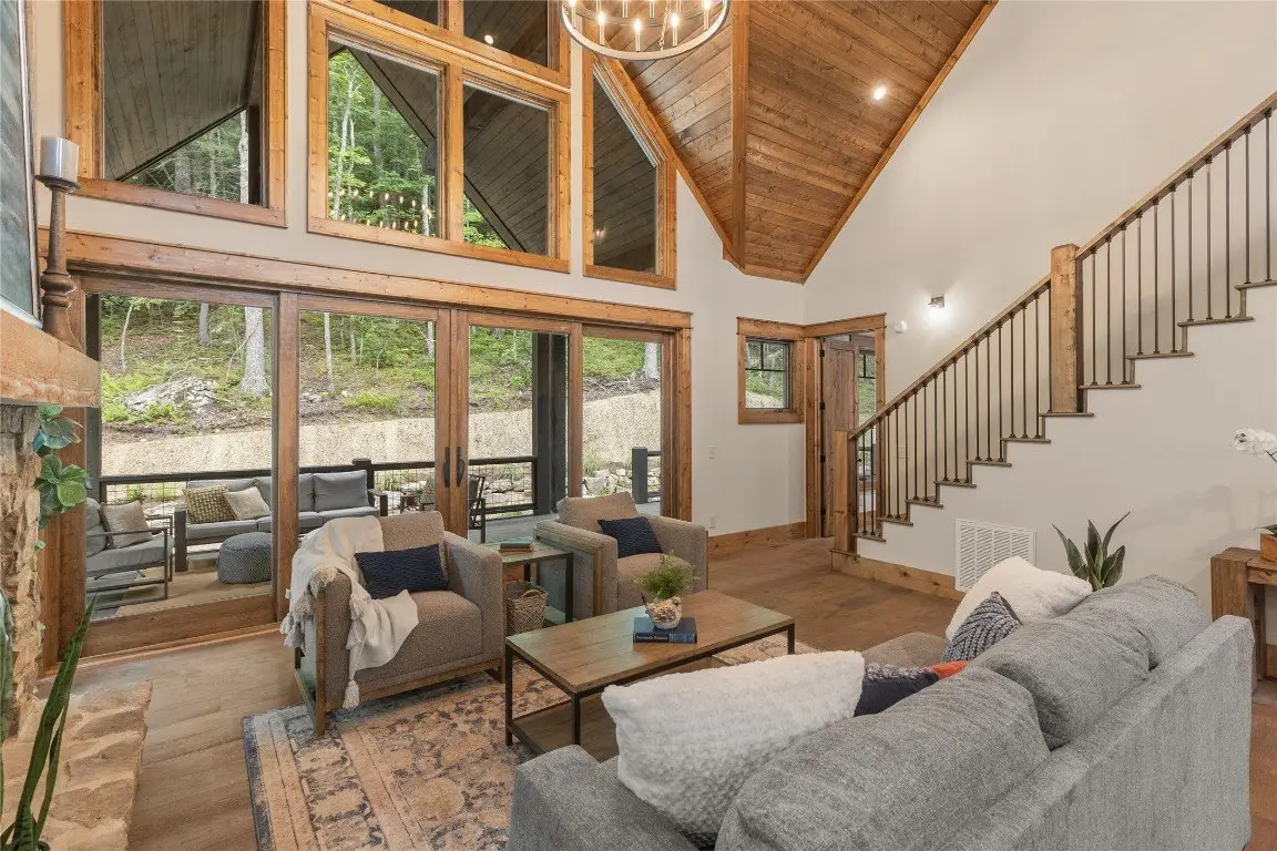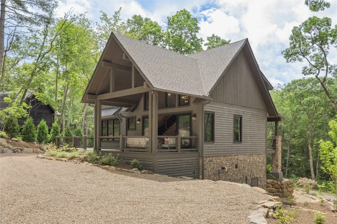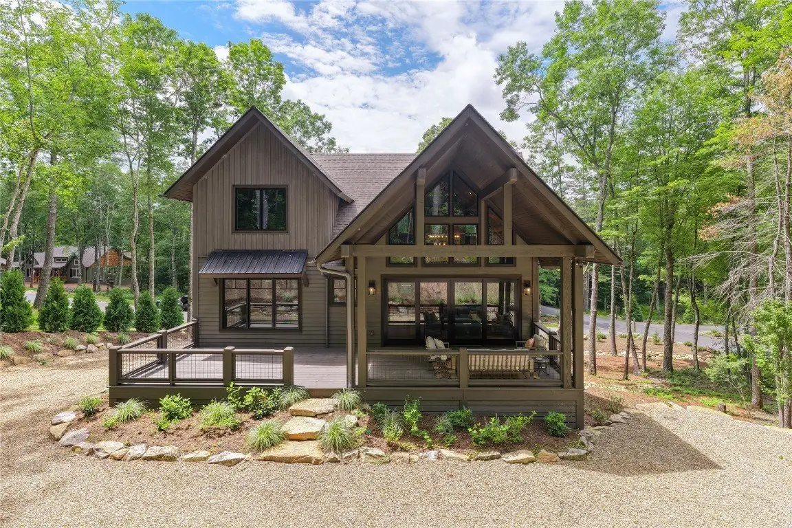 Discover the ultimate mountain living experience with this newly built home in the prestigious Chinquapin community. Ideally located near the main gate, this residence offers unmatched convenience and peace just steps from the tranquil Wolf Lake amenity area. Here, you can enjoy fishing, canoeing, or simply taking the dog for a swim from the community dock. Inside, you'll find an inviting, open-concept design where the kitchen seamlessly flows into the living space, making it perfect for both relaxing and entertaining. The living room features soaring ceilings and large windows that lead into the covered back porch. Each morning, enjoy your coffee on the spacious, covered rear deck, surrounded by native rhododendrons and lush landscaping, a perfect way to start your day. The primary bedroom is thoughtfully situated on the main floor for easy access and comfort. Chinquapin covers 2,000 acres of private, gated beauty, offering a park-like setting filled with adventure. Take advantage of activities like lake and stream fishing, canoeing, or a friendly game of disc golf. For golf enthusiasts, the driving range offers an ideal spot for practice. Explore miles of hiking and biking trails and immerse yourself in community life at the Outpost Clubhouse, which features a fitness room and hosts seasonal live music. The community pickleball courts provide sports enthusiasts with a great venue to play. This home isn't just a place to live-it's a gateway to a lifestyle immersed in natural beauty and endless outdoor adventures. The house is professionally staged, and furniture is available for purchase. Bring your dreams and let them come true now in this stunning mountain retreat!