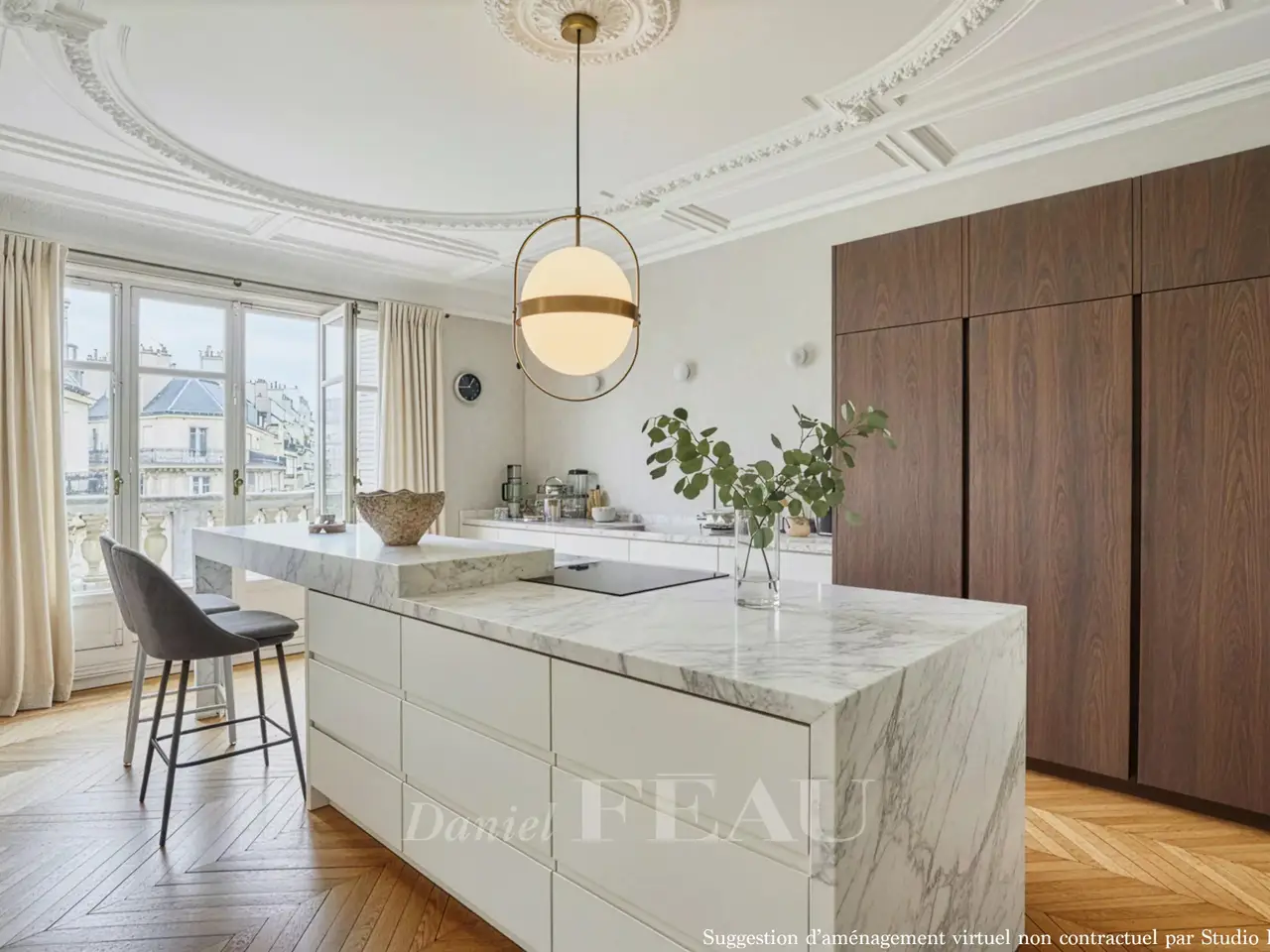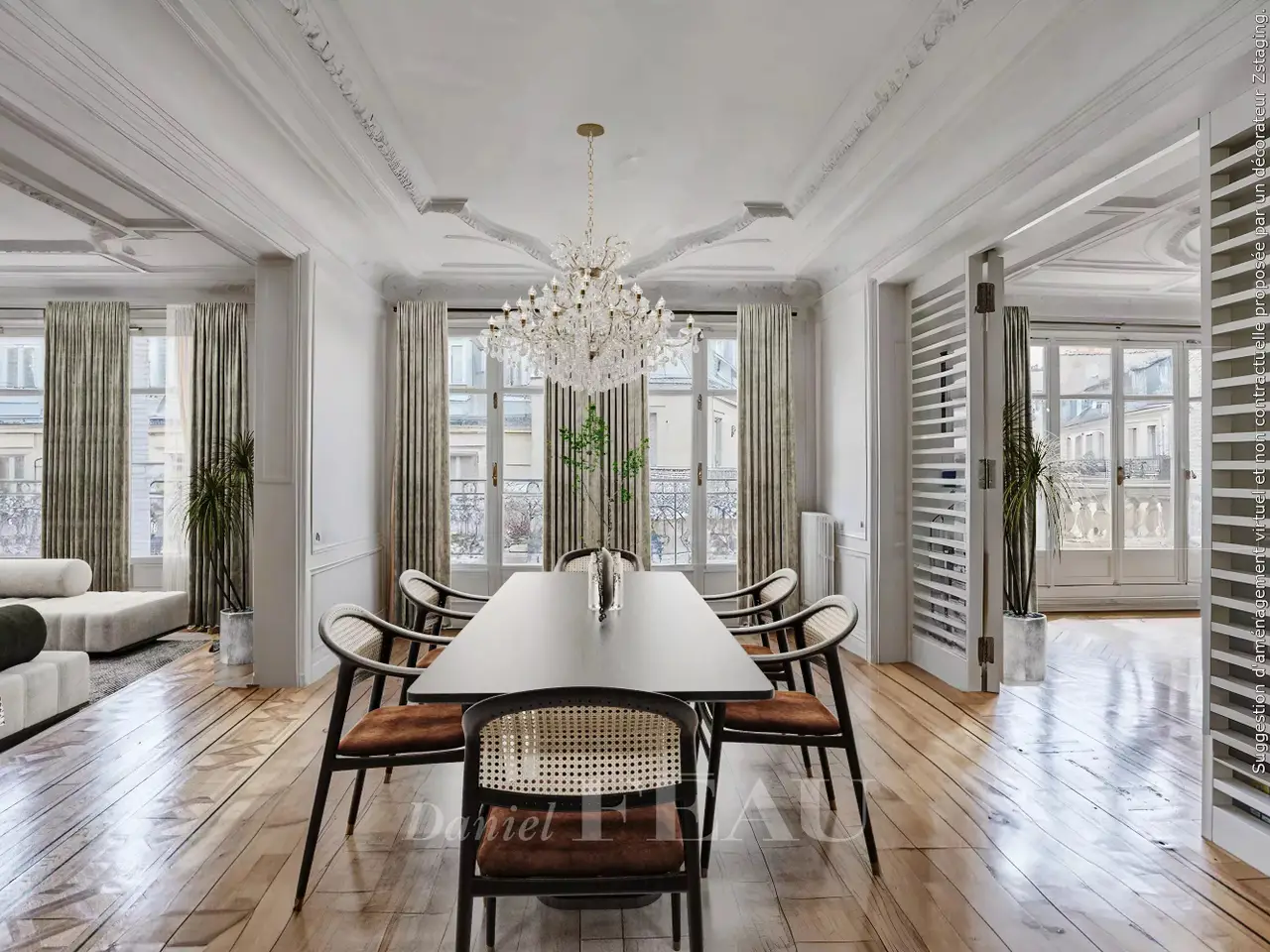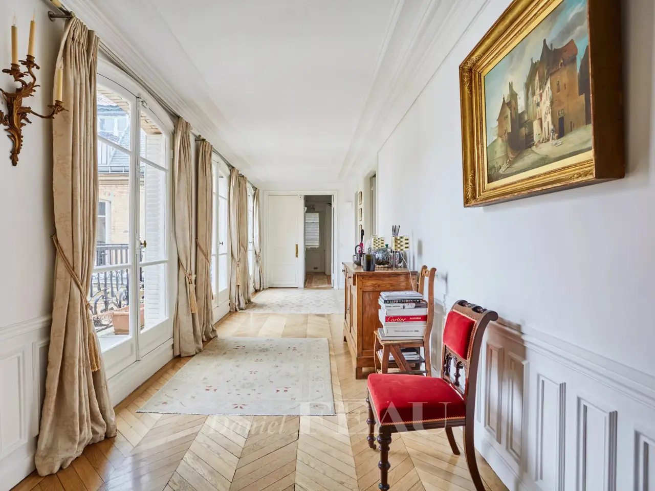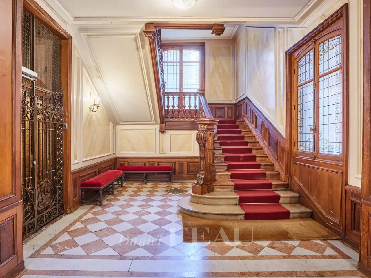 This elegant apartment on the 5th floor of a fine Haussmannian building with luxurious common areas benefits from wide balconies. It includes an entrance hall, a triple living/reception room bathed in sunshine and enjoying a panoramic view of Place Victor Hugo, a spacious kitchen with dining facilities, a study, a master suite with a bathroom and two dressing rooms, three bedrooms, a shower room, a bathroom and a utility room. The study could create a 4th bedroom if required. With two cellars. Two lock-up garages at extra cost are part of the sale. In a convenient location near the shops, the schools and the metro station.