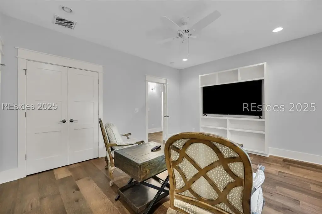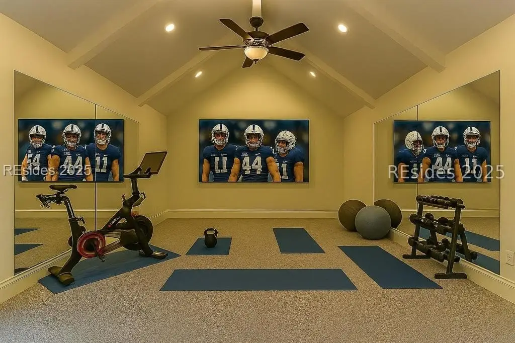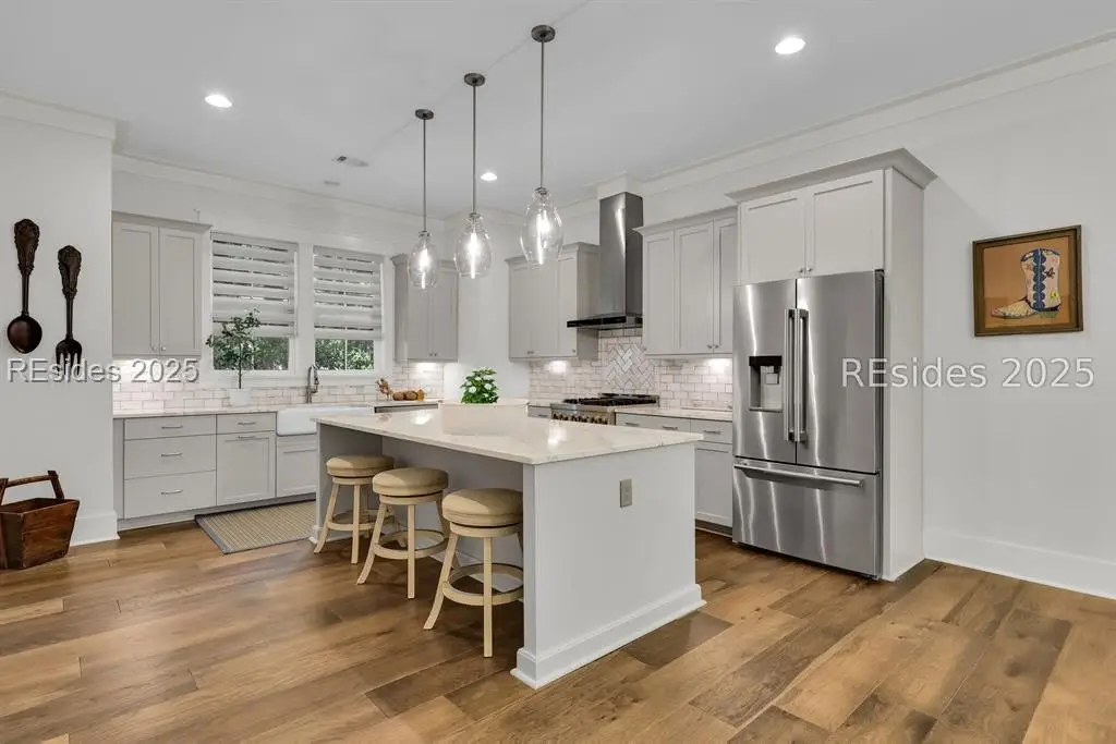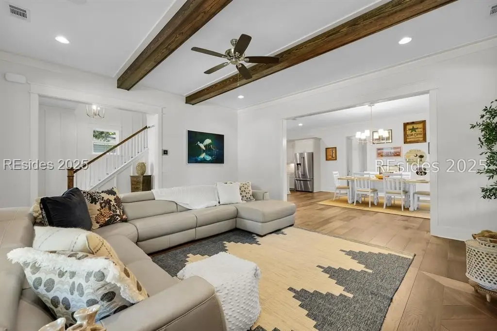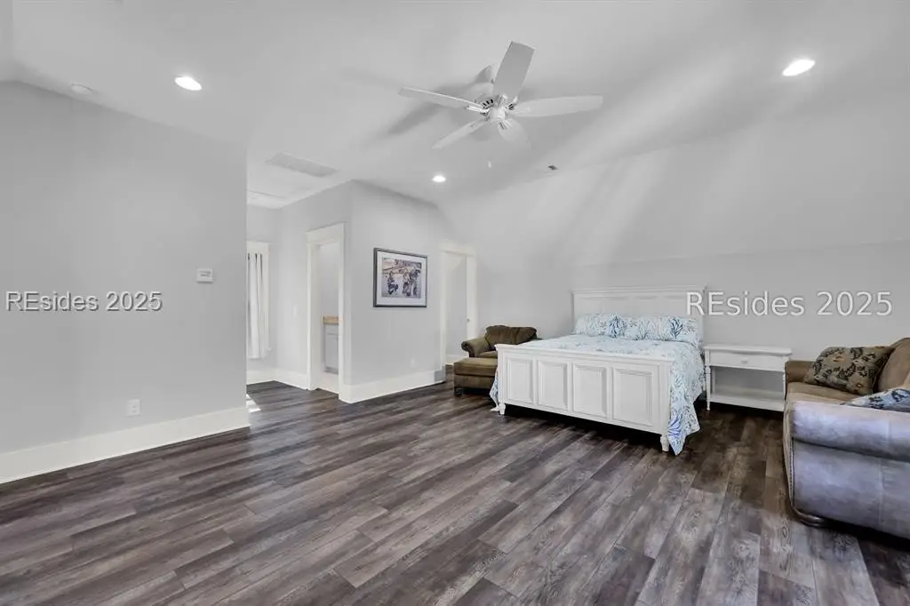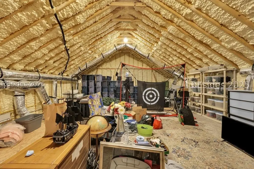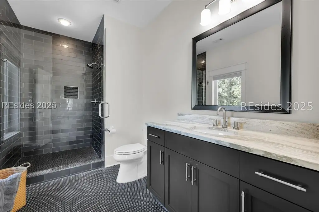Welcome to 2 Oldfield Village Road - Your New Lowcountry Home. Built by Frontlight Building Co. as a model home in Oldfield and designed by Pearce Scott, this distinctive property offers over 4,100 sq ft of living space plus 700+ sq ft of unfinished area ready for customization. Set back from the road, the home greets you with a wraparound porch extending from the west to the south side, transitioning into a screened-in area with a spacious outdoor dining space ideal for embracing the Lowcountry lifestyle. The first floor features a 350 sq ft living room anchored by a tabby-covered gas fireplace. At the heart of the home is a 520 sq ft kitchen and dining area that stretches from the north wall to the screened porch. Ten-foot ceilings and expansive windows flood the space with natural light, creating a warm, inviting atmosphere for gatherings and daily living. Located at the rear for privacy, the primary bedroom includes dual walk-in closets and a luxurious bath with dual vanities, a soaking tub, and a walk-in shower. A well-appointed laundry room with extra cabinetry and a work sink sits conveniently between the kitchen and primary suite. Upstairs, three additional bedrooms offer flexible living. The second bedroom, nearly 240 sq ft, could serve as a second primary suite with its en suite bath. Bedrooms three and four share a third full bath, and bedroom four connects to the unfinished space over 700 sq ft of potential for a golf simulator, fitness room, office, or craft studio. The adjacent 2.5-car garage includes a full guest suite with kitchenette, bath, and generous sleeping and sitting areas perfect for visitors or multi-generational living. Looking for outdoor living & privacy? Set on a private 0.53-acre lot, the property features raised planting beds, a firepit, and ample space for outdoor games. The backyard borders Oldfield Club Association land, ensuring lasting privacy and protected views.