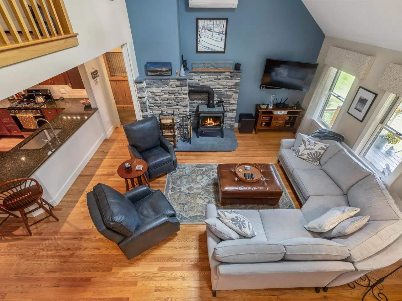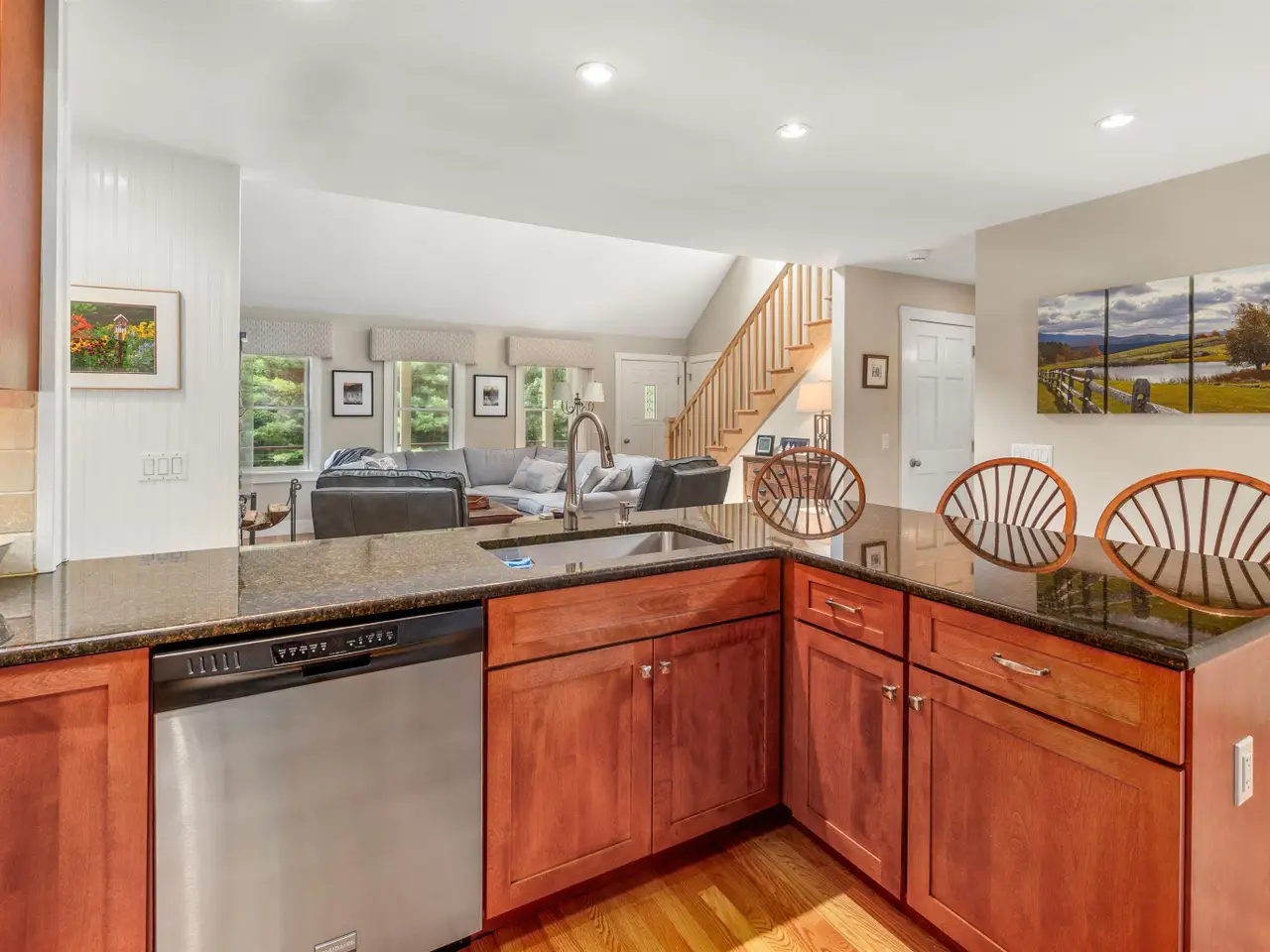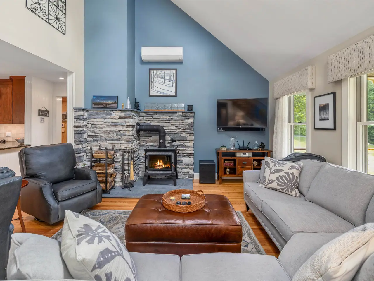 Hidden gems around every corner! Tucked away at the end of the road in the sought-after Black Bear Run neighborhood, this immaculately maintained 3-bedroom, 4-bath home offers the perfect blend of privacy, comfort, and style. From the beautifully finished garage you will walk into a brand new mudroom before entering into the heart of the home. Here you will find the chef’s kitchen, where friends and family can gather around the counter to keep the cook company as meals come together. The kitchen opens to the living room with a wood burning stove that creates a warm and welcoming space for entertaining. And the dining room has added ambiance with a propane fireplace. Also on the main level is the convenience of a primary ensuite with a renovated 3/4 bath and custom crafted walk-in closet. Upstairs, you’ll find two bright bedrooms, a full bath, and a dedicated home office, ideal for remote work. The lower level offers incredible flexibility with a full bath, kitchenette, exercise room, and an additional room perfect for overnight guests. Step outside and enjoy impeccably landscaped grounds, a covered porch for watching wildlife and soaking in sunsets, and a firepit for evenings under the stars. Miles of trails are accessible right from your front door. Situated between Stowe and Waterbury Center, with easy access to I-89, Montpelier, and the Mad River Valley, this location is unbeatable for both convenience and tranquility. This is Vermont living at its finest—inside and out.
